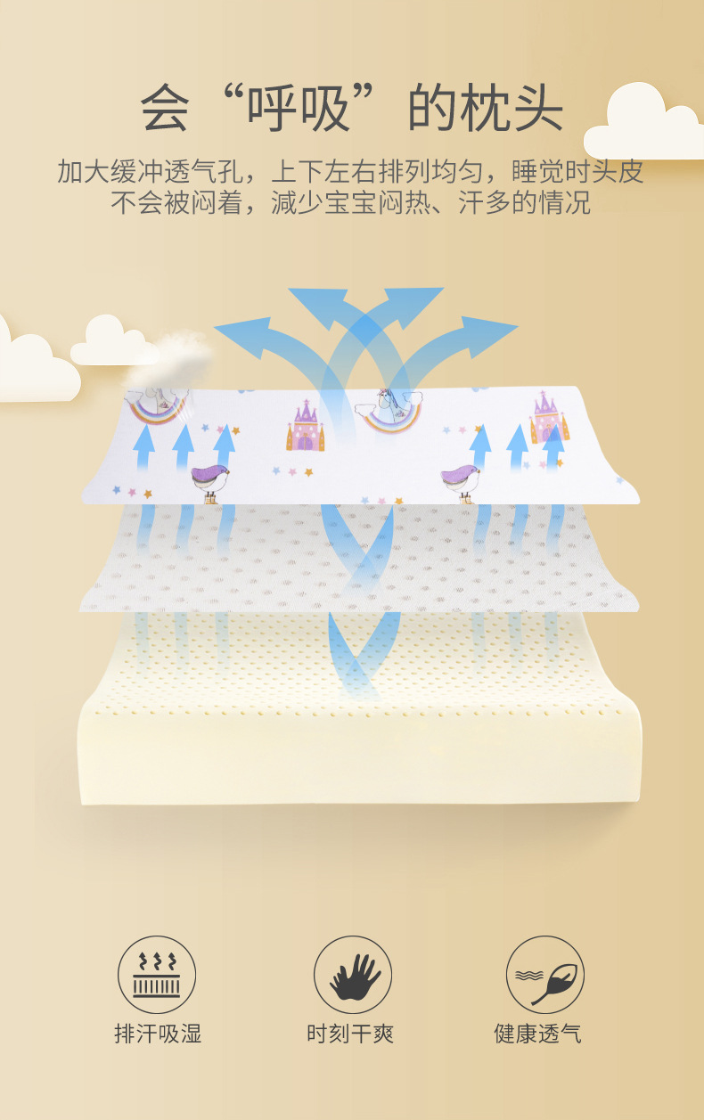 천연 라텍스 94% + 클래스 A 모자 및 유아용 순면 베갯잇