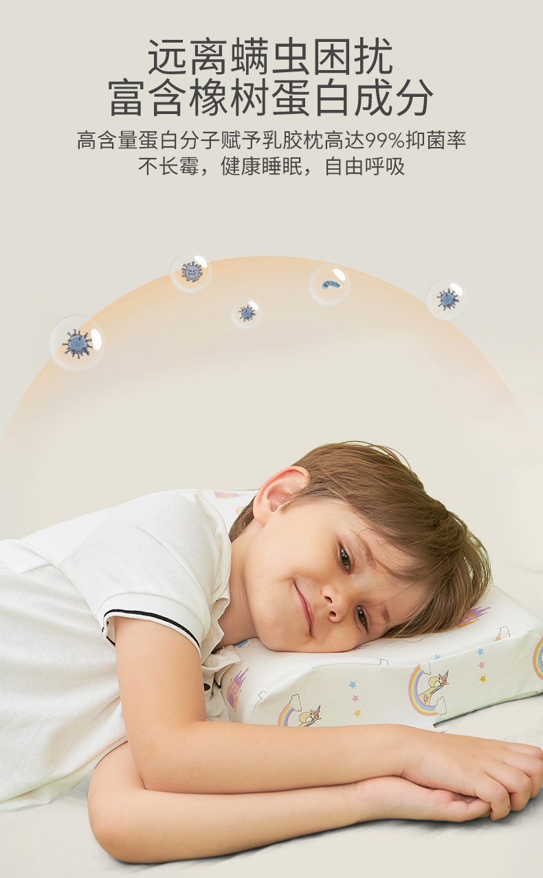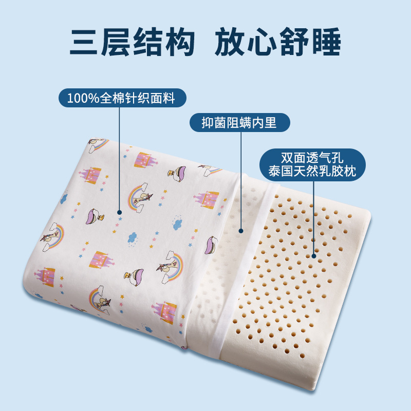태국 천연 라텍스 베개, 초등학생 베개, 라텍스 베개, A급 엄마와 아기 순면 베개 커버, 0-12세 유아 베개