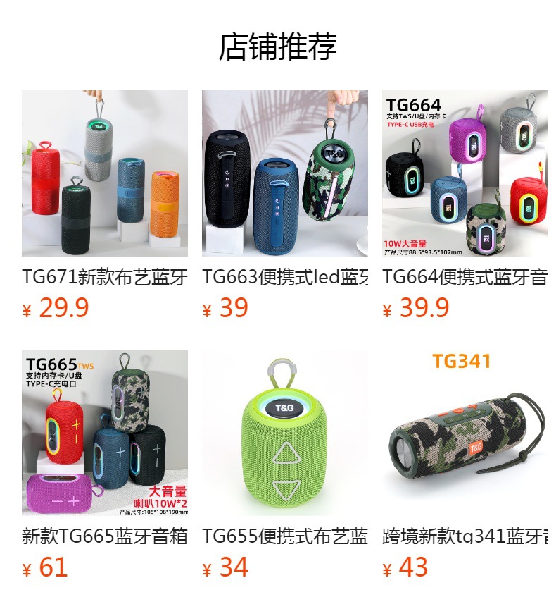 TG656 블루투스 스피커 휴대용 카드 무선 야외 오디오 휴대용 서브 우퍼 패브릭 선물 소형 스피커