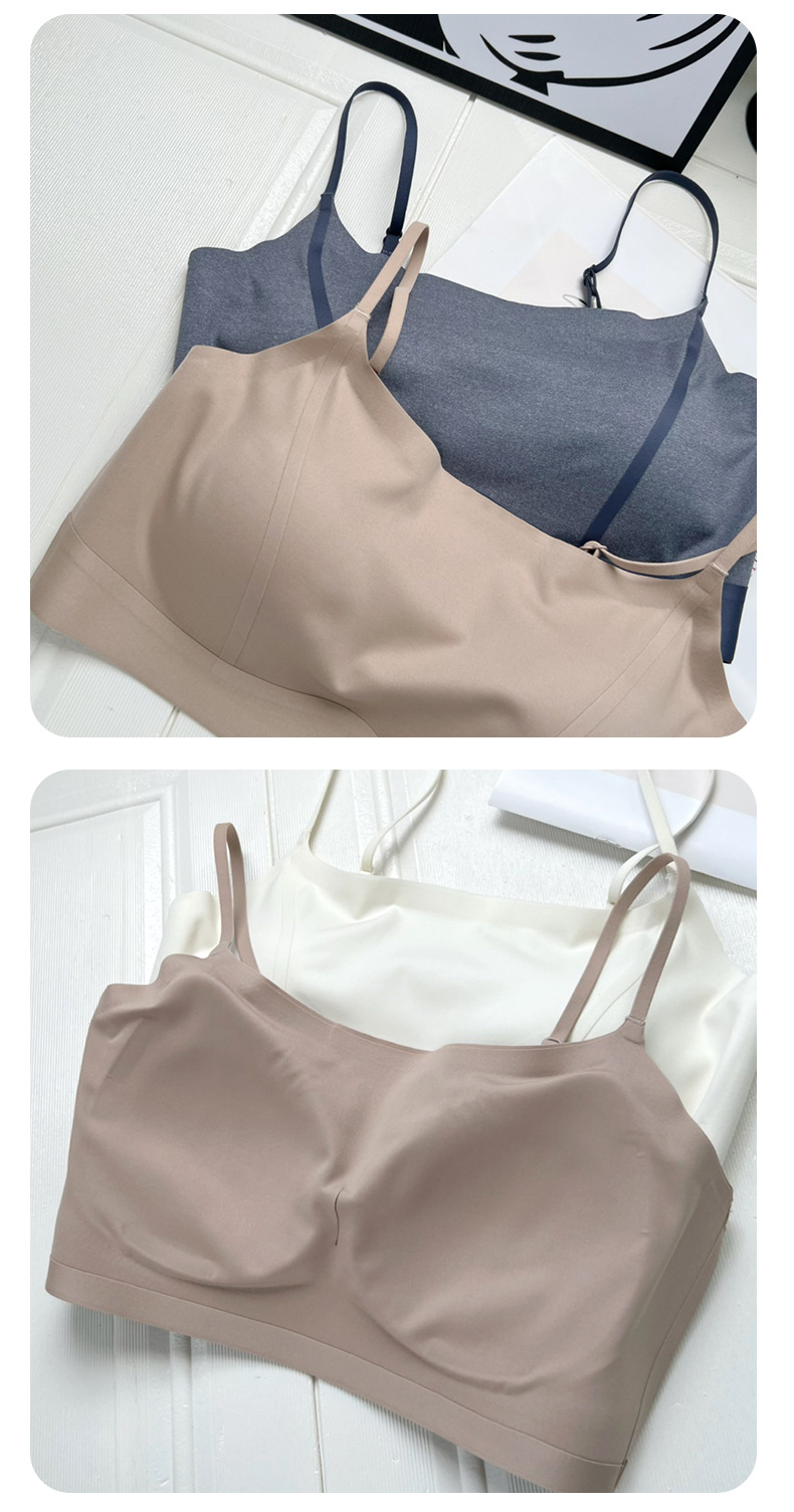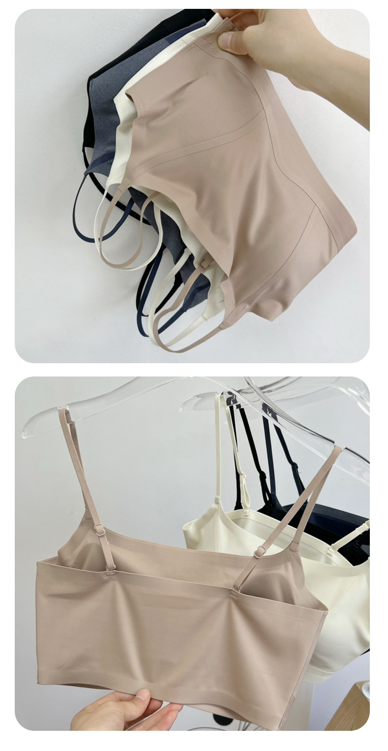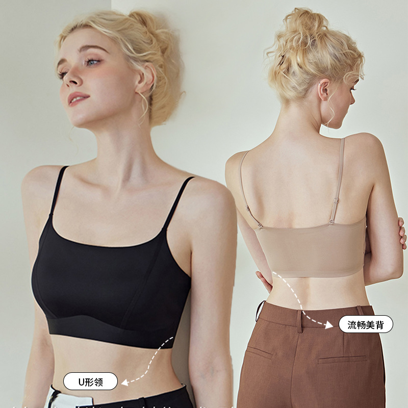 누드톤 무봉제 가슴패드 일체형 노출방지 끈나시 여성용 노와이어 섹시하고 다용도로 활용 가능한 슬림 브라 아름다운 등라인