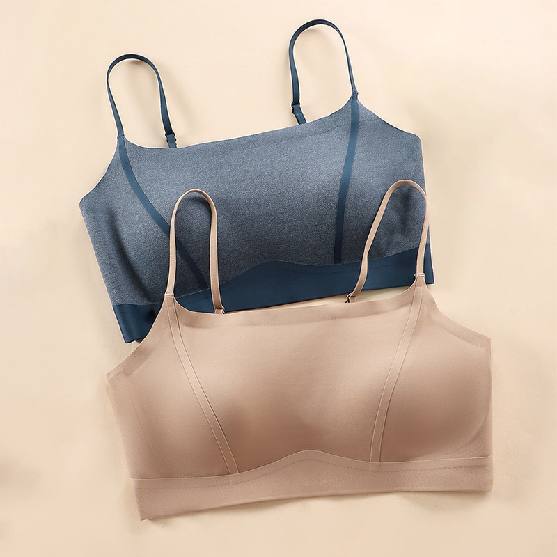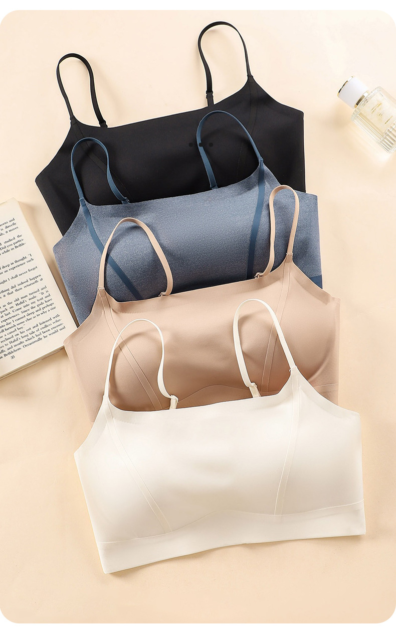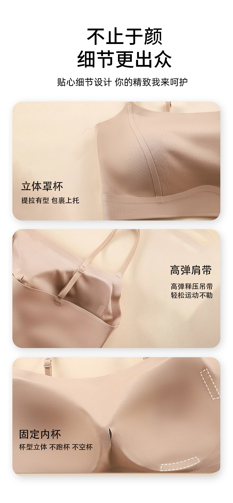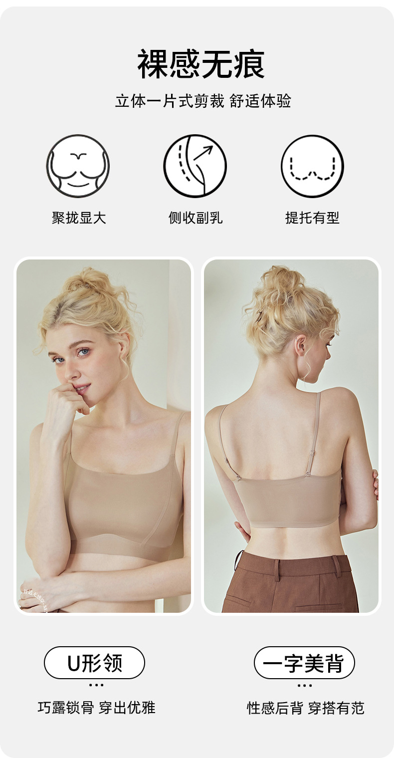 누드톤 무봉제 가슴패드 일체형 노출방지 끈나시 여성용 노와이어 섹시하고 다용도로 활용 가능한 슬림 브라 아름다운 등라인
