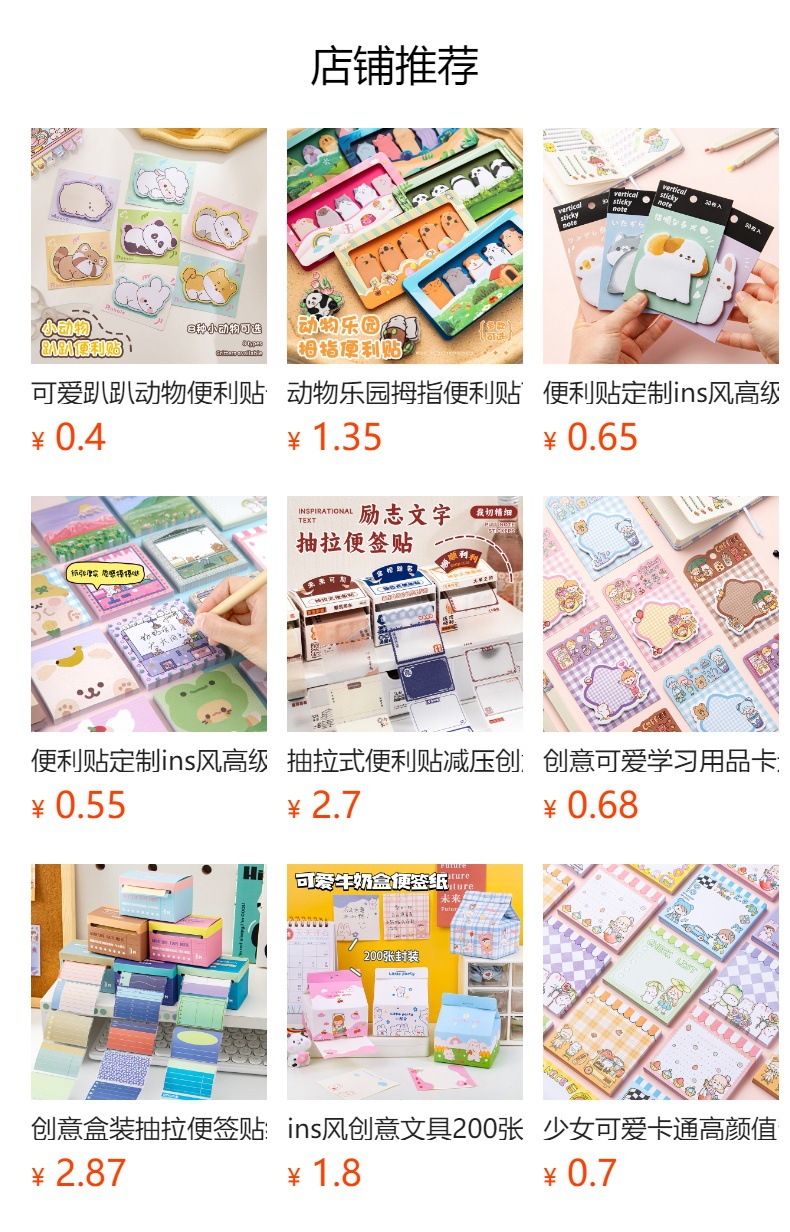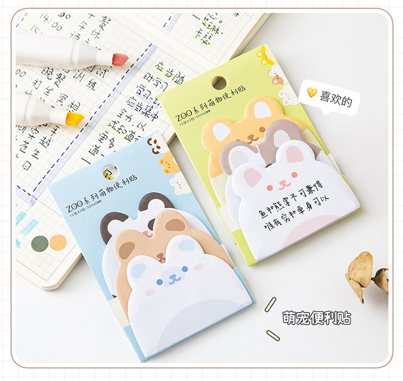 귀여운 만화 캐릭터가 있는 사무용 포스트잇, 3단 메모지, 학생용 반복 사용 가능 메모지, 메시지 인덱스 스티커 도매