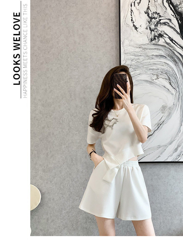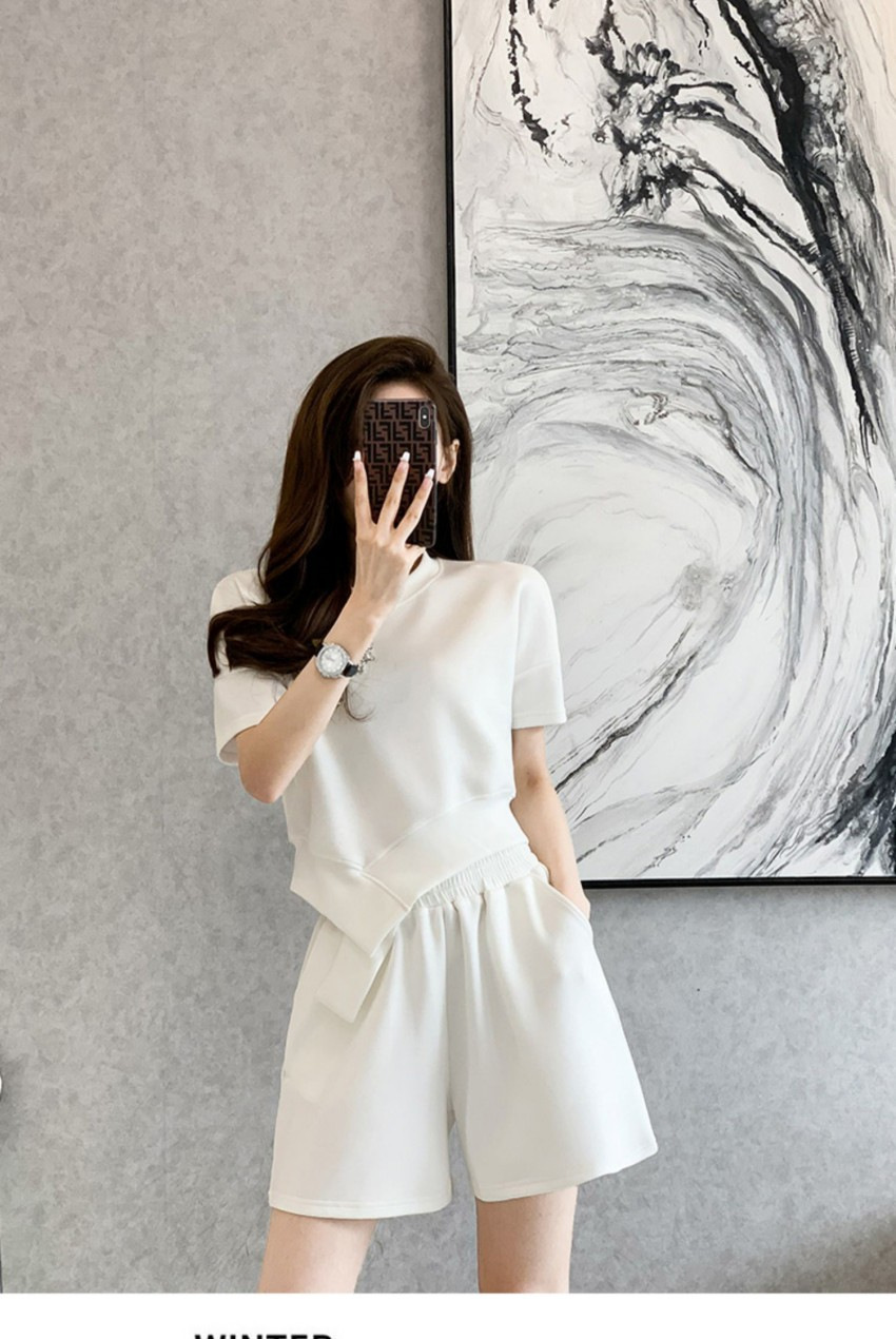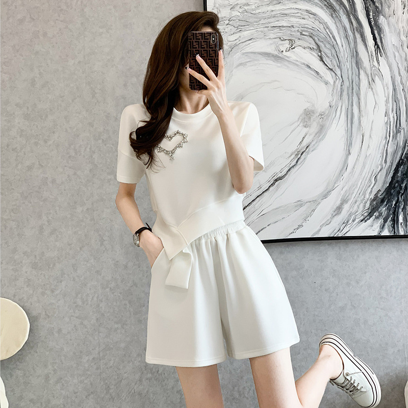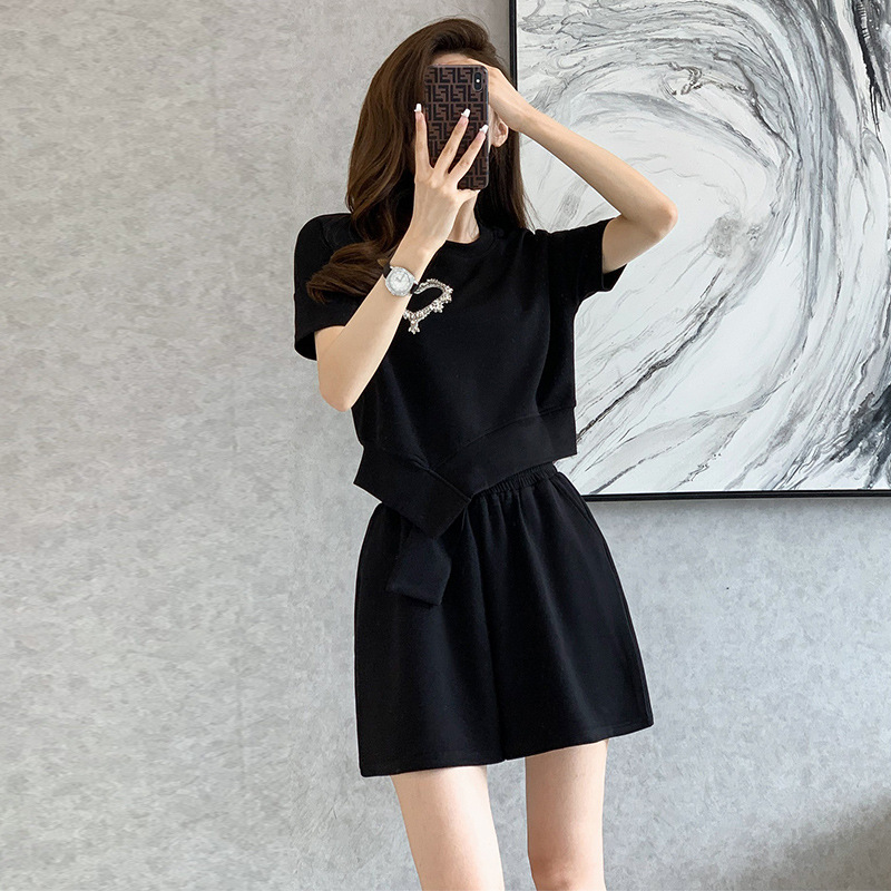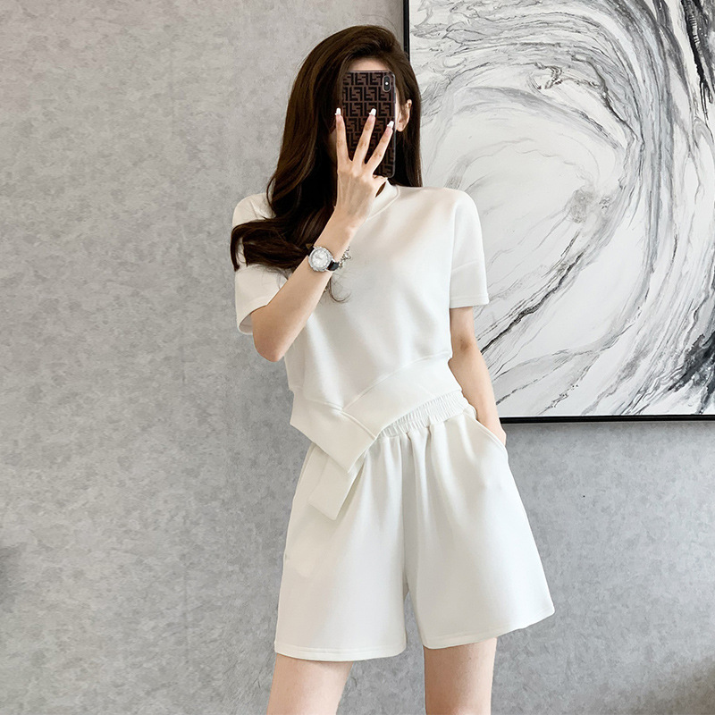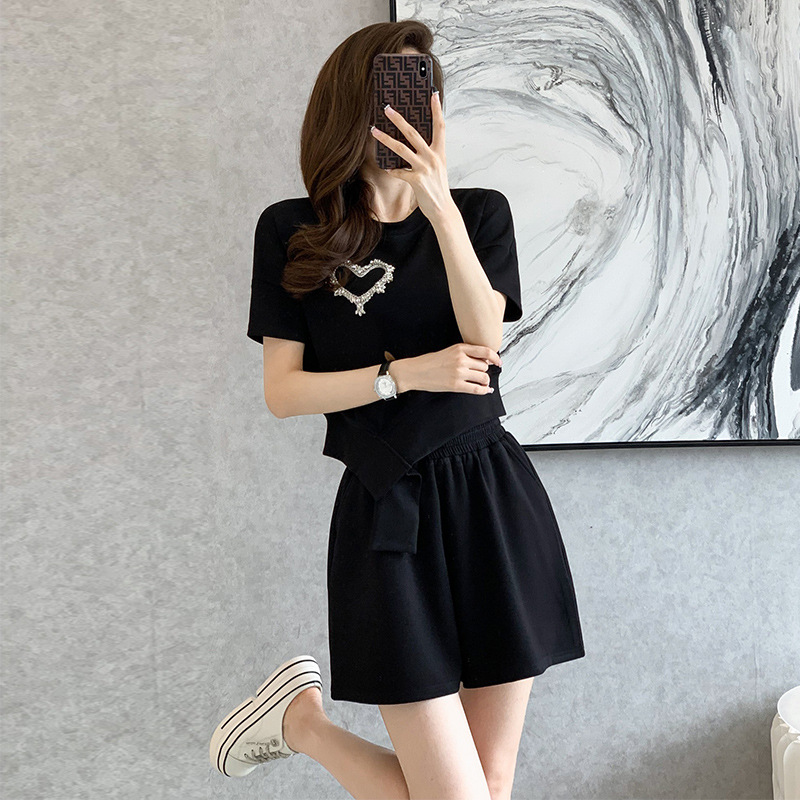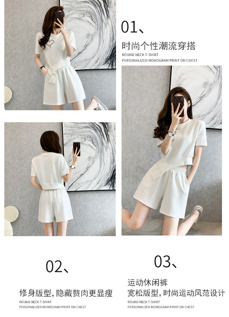 캐주얼 스포츠웨어 세트 여성 2023 여름 새로운 패션 나이 감소 서양 스타일 짧은 소매 반바지 2 종 유행 세트