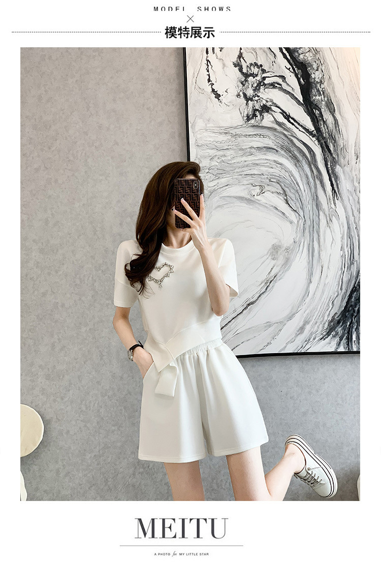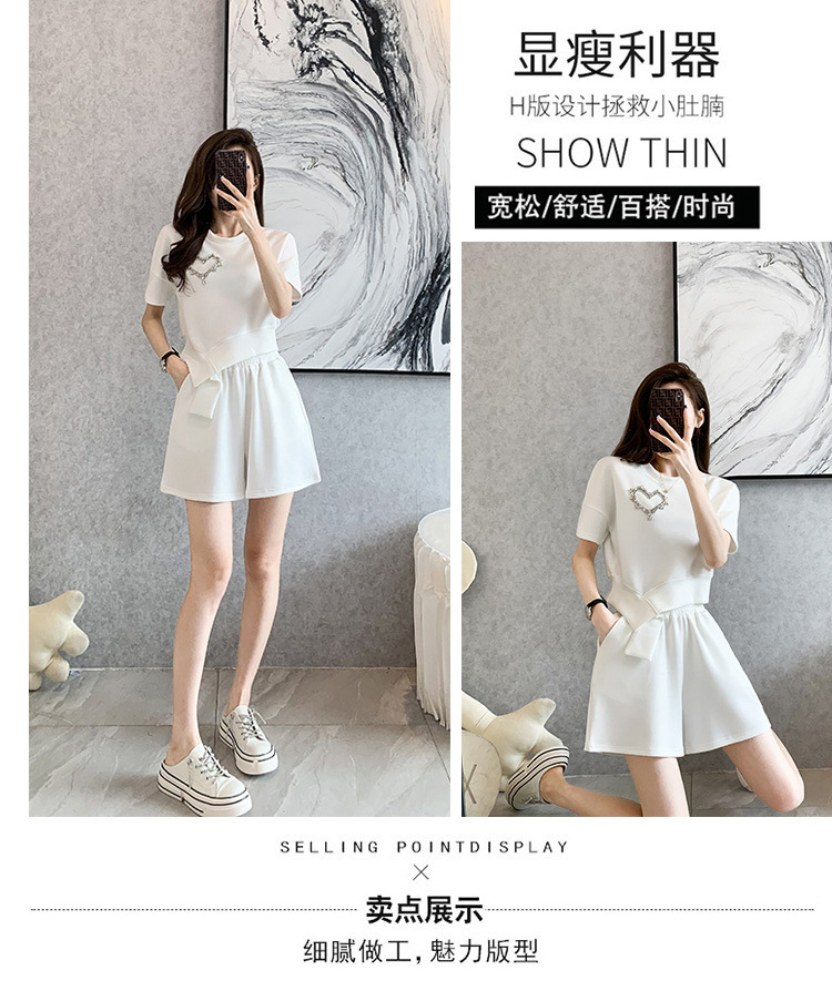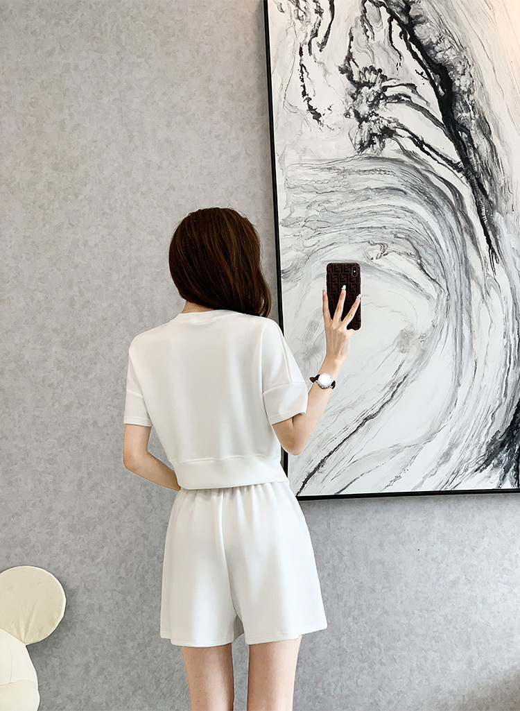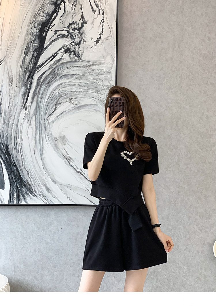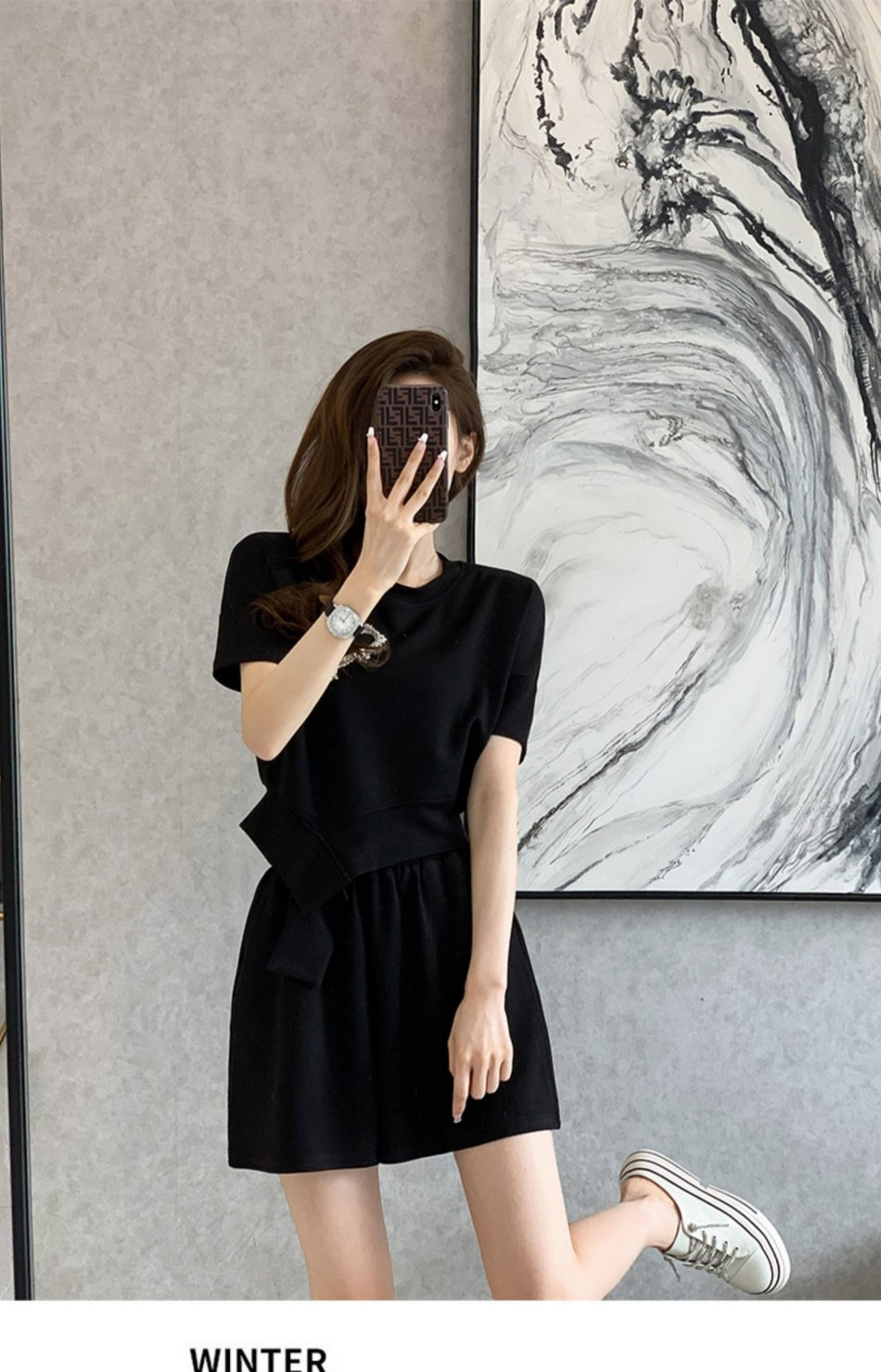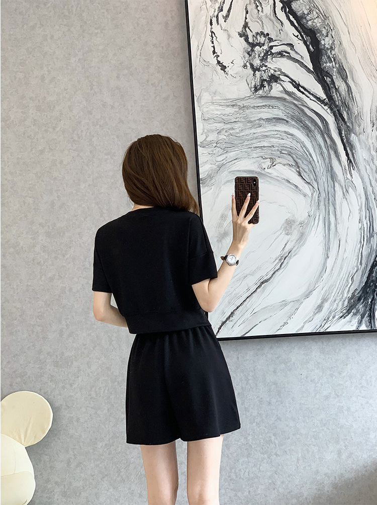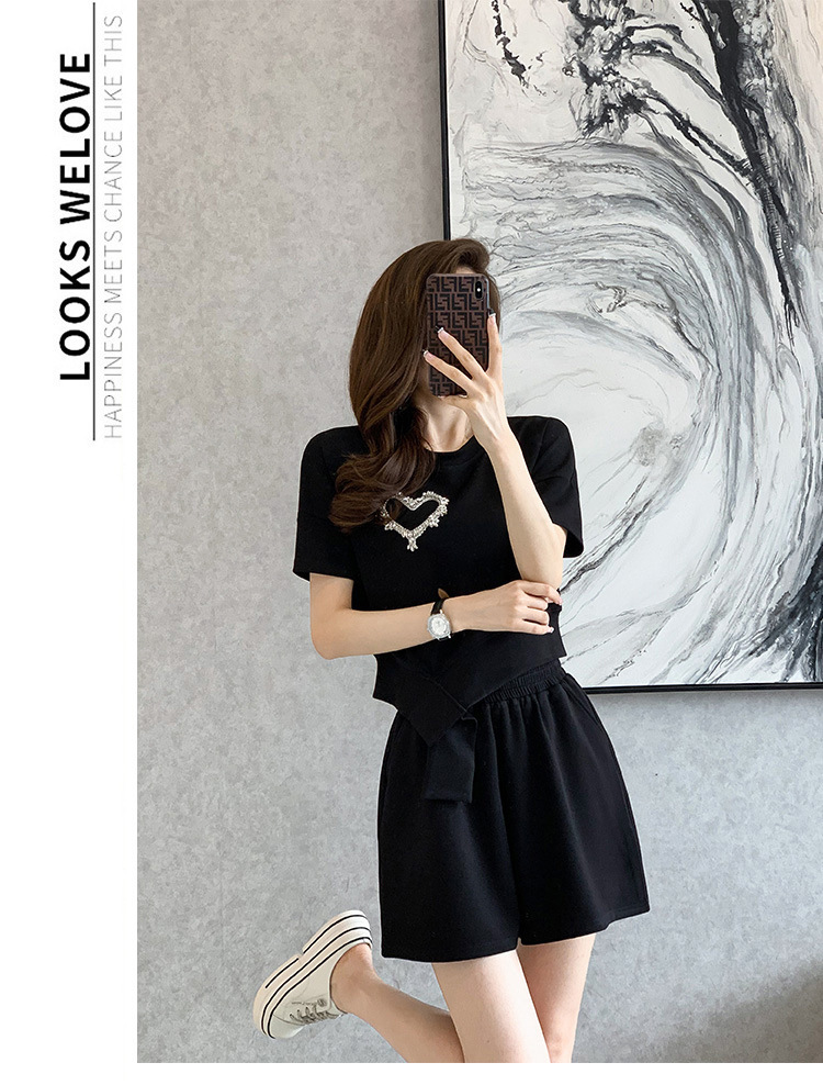캐주얼 스포츠웨어 세트 여성 2023 여름 새로운 패션 나이 감소 서양 스타일 짧은 소매 반바지 2 종 유행 세트