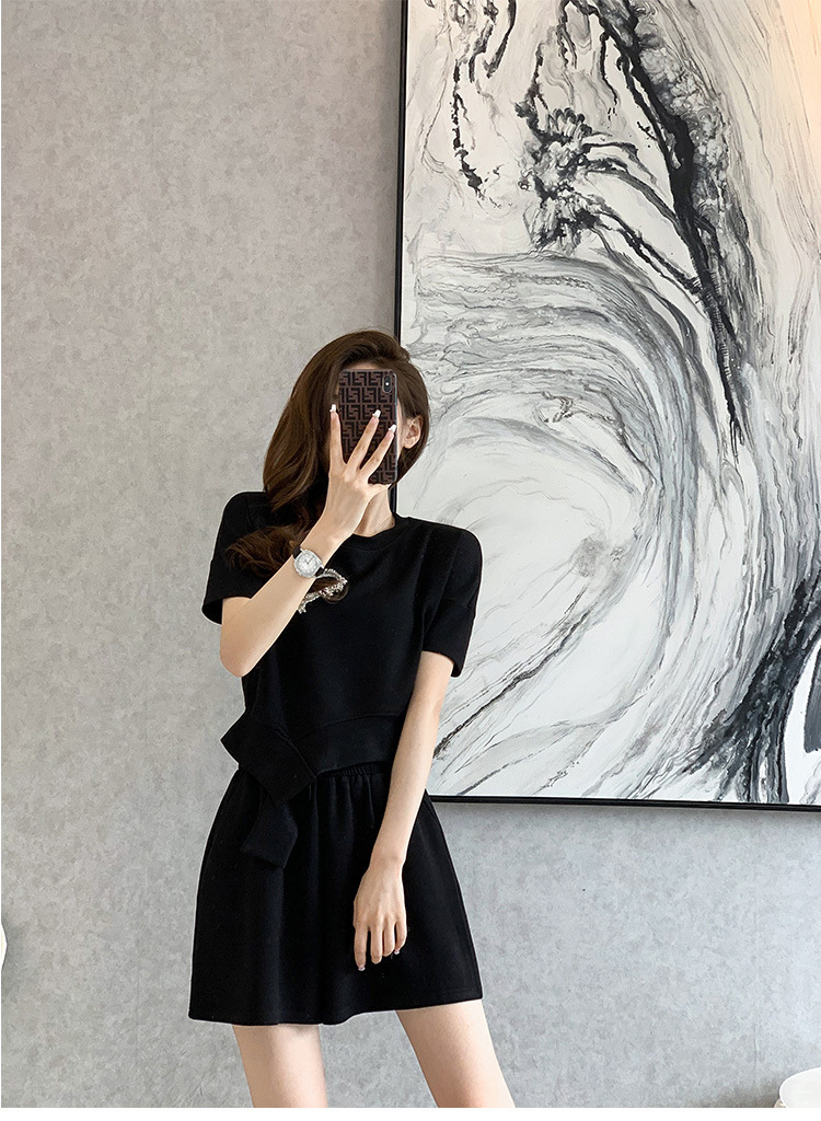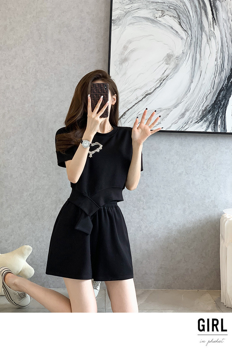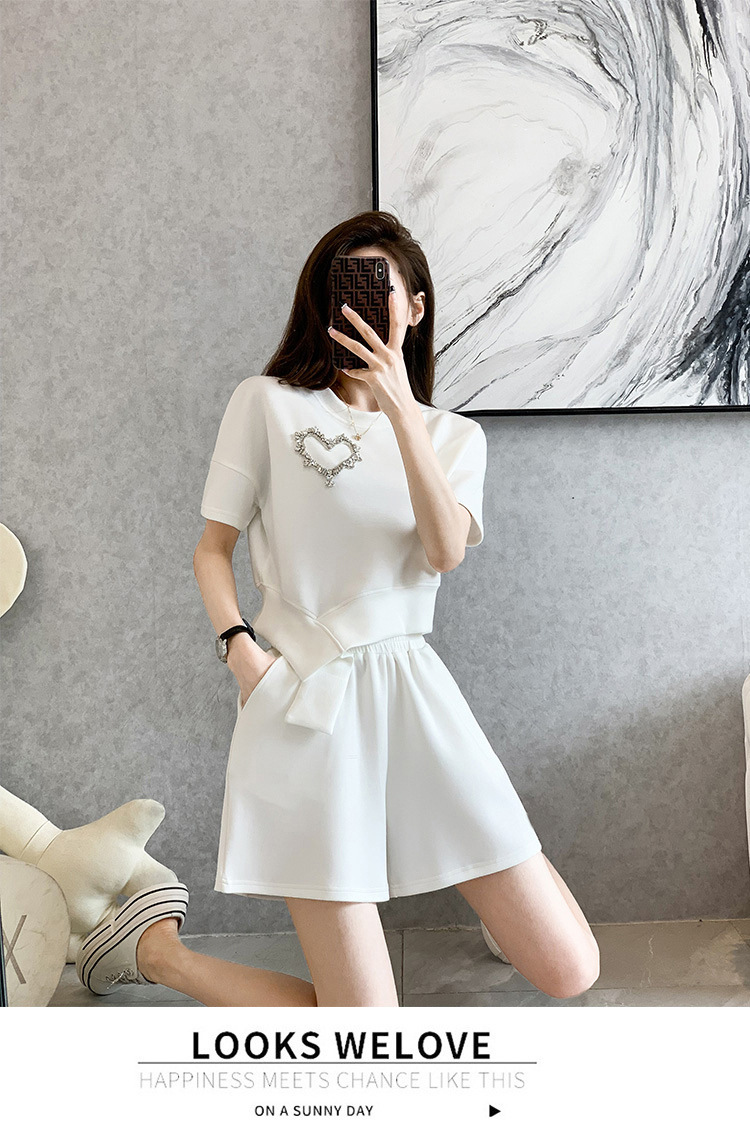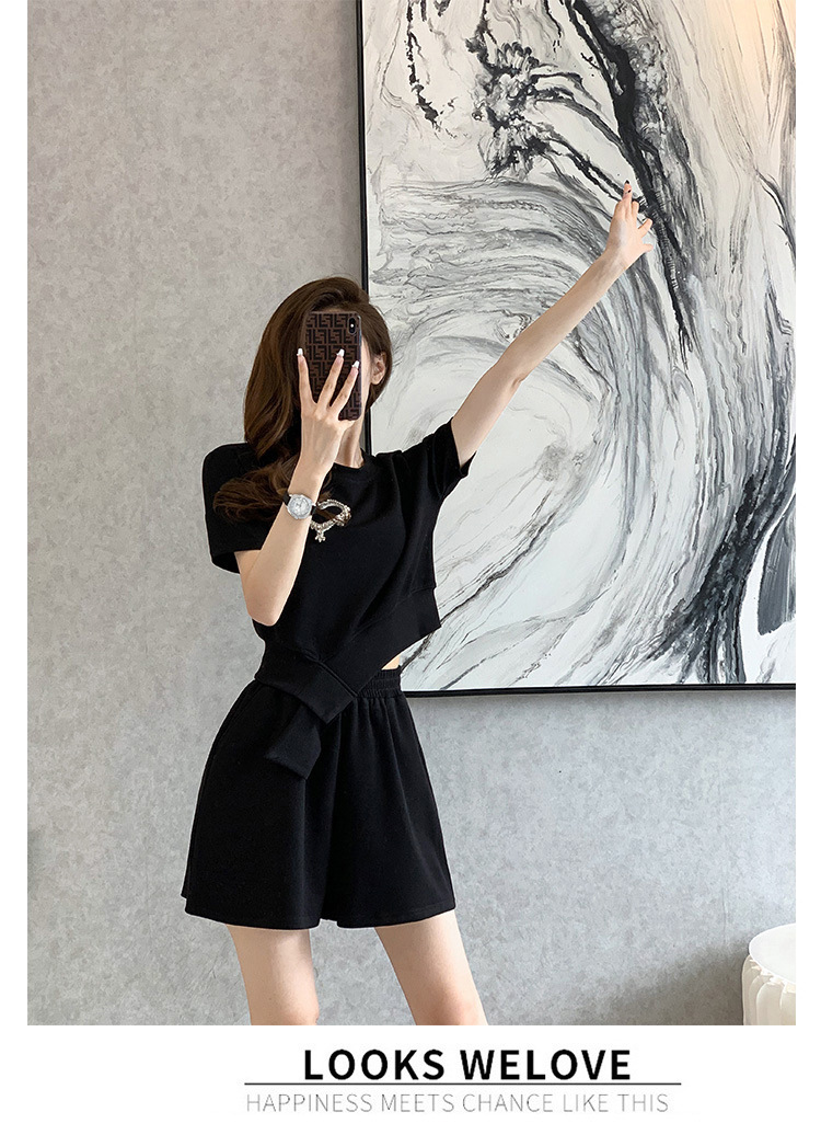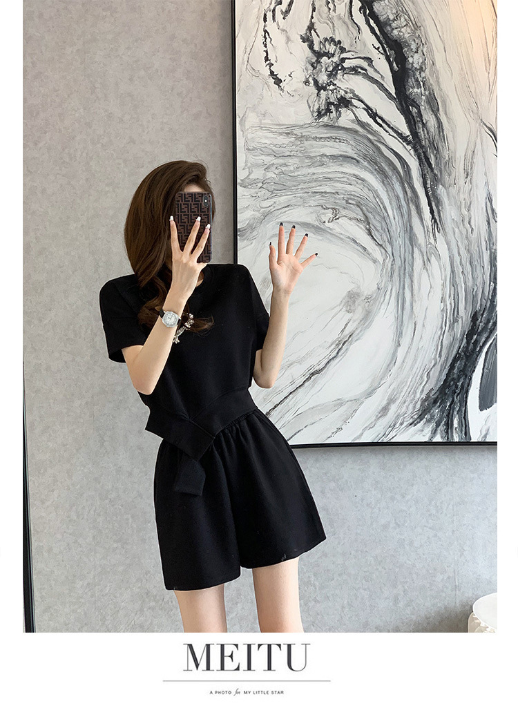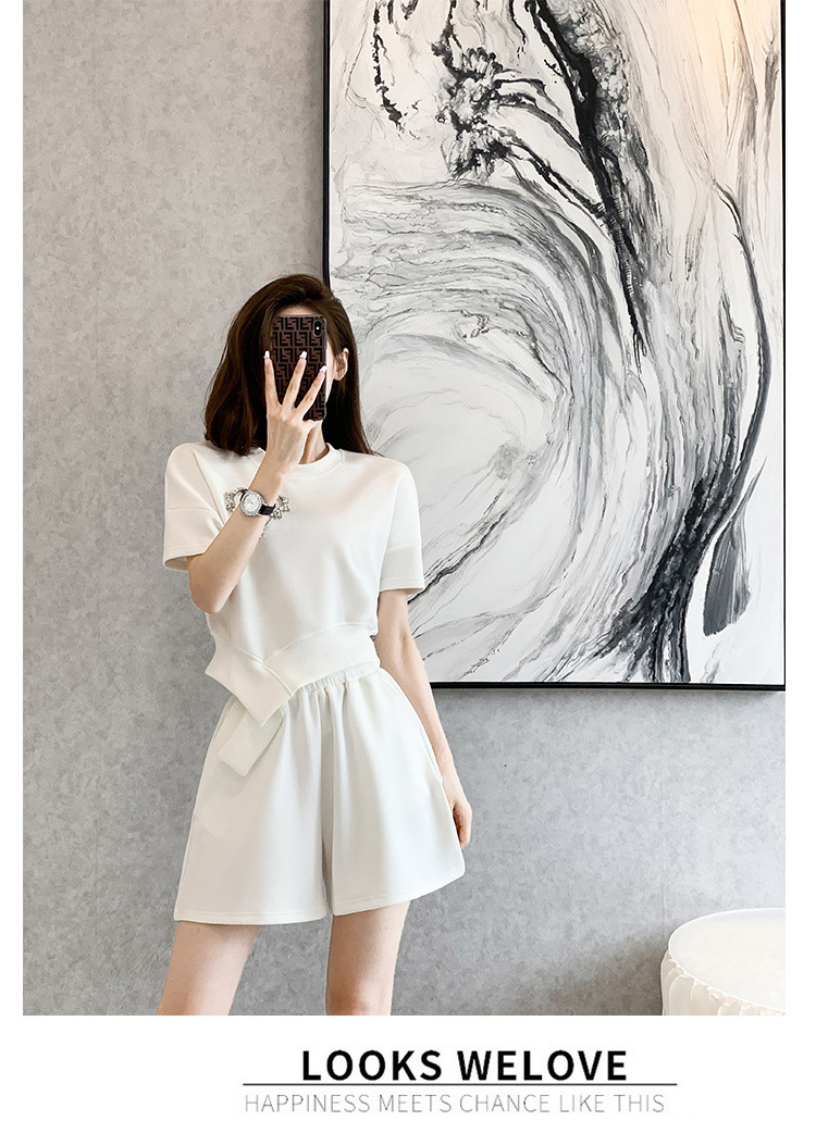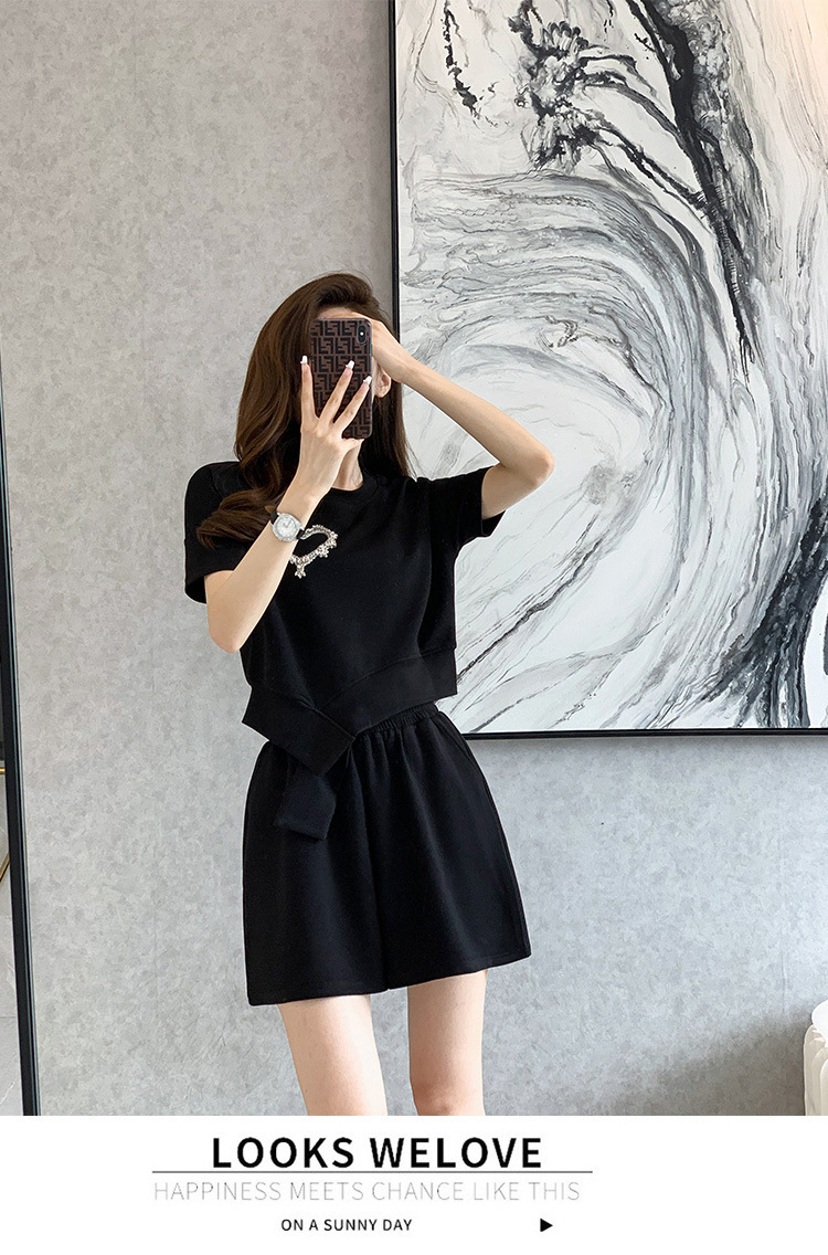 캐주얼 스포츠웨어 세트 여성 2023 여름 새로운 패션 나이 감소 서양 스타일 짧은 소매 반바지 2 종 유행 세트