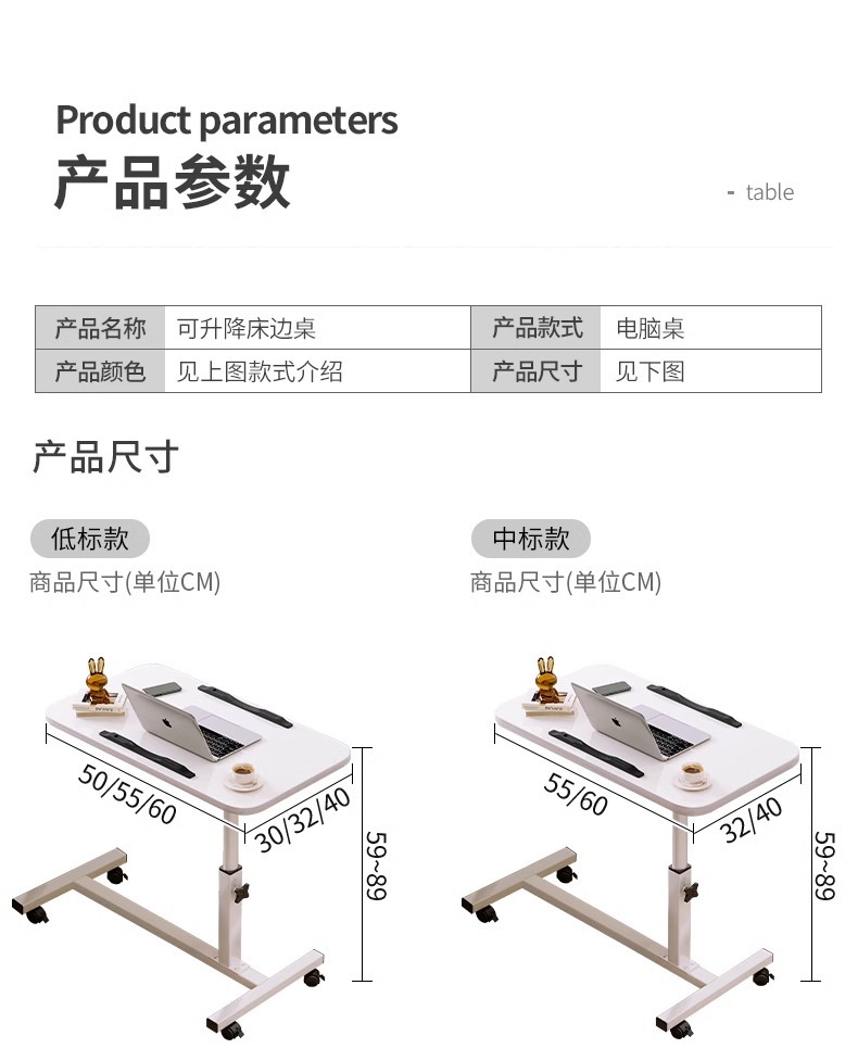 침대 옆 테이블, 이동식 침대 컴퓨터 테이블, 게으른 테이블, 리프팅 테이블, 가정용 노트북 책상, 접이식 테이블