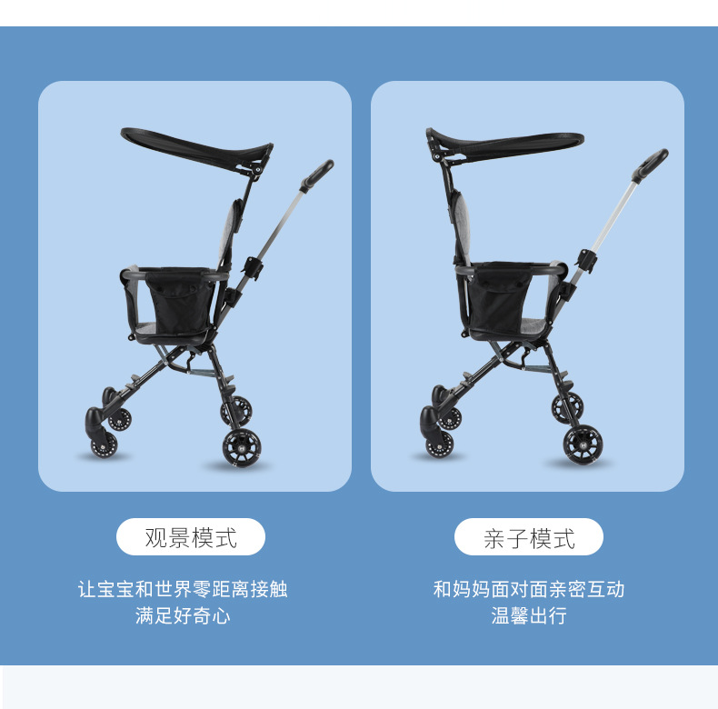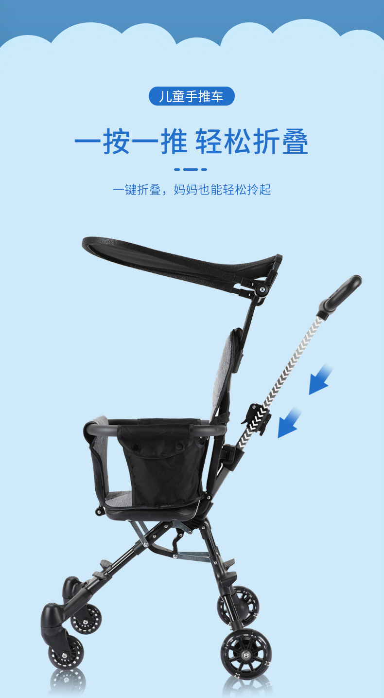 아기 유모차, 경량 접이식 유모차, 알루미늄 합금 핸들바 유모차, 원클릭 접이식 양방향 유모차
