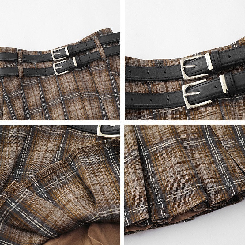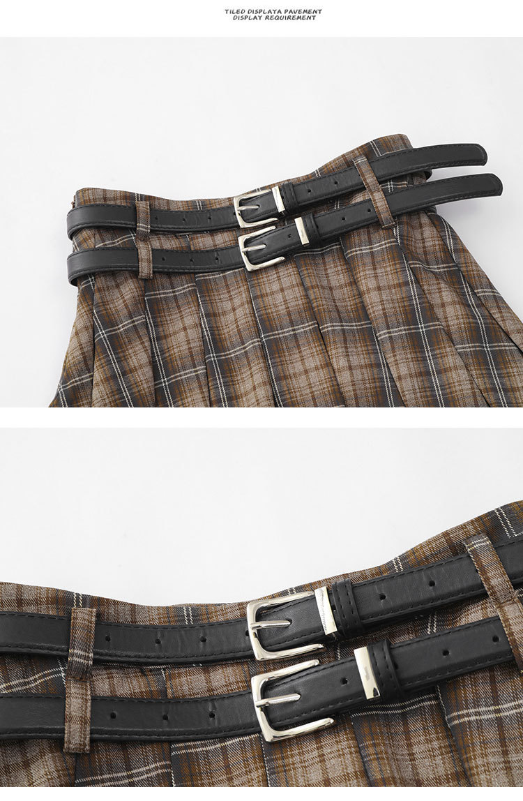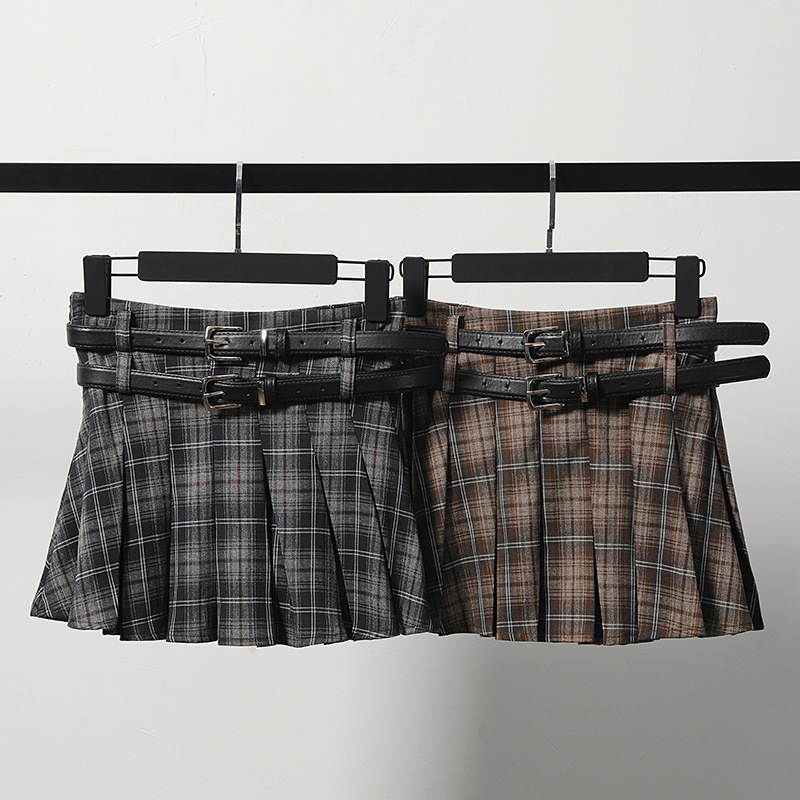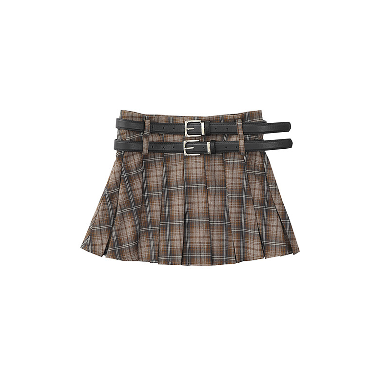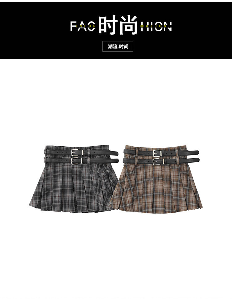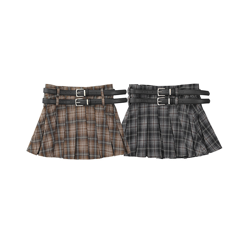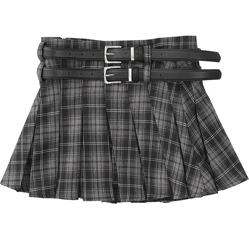 YPRS 남성용 오리지널 패션 브랜드 더블 벨트 격자 무늬 디자인 틈새 하이 웨이스트 슬리밍 여성용 핫 걸 반바지 A 라인 스커트