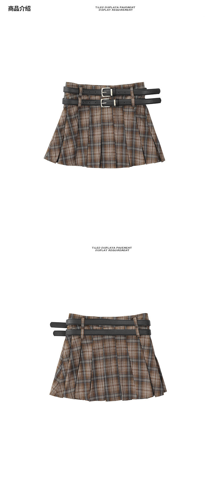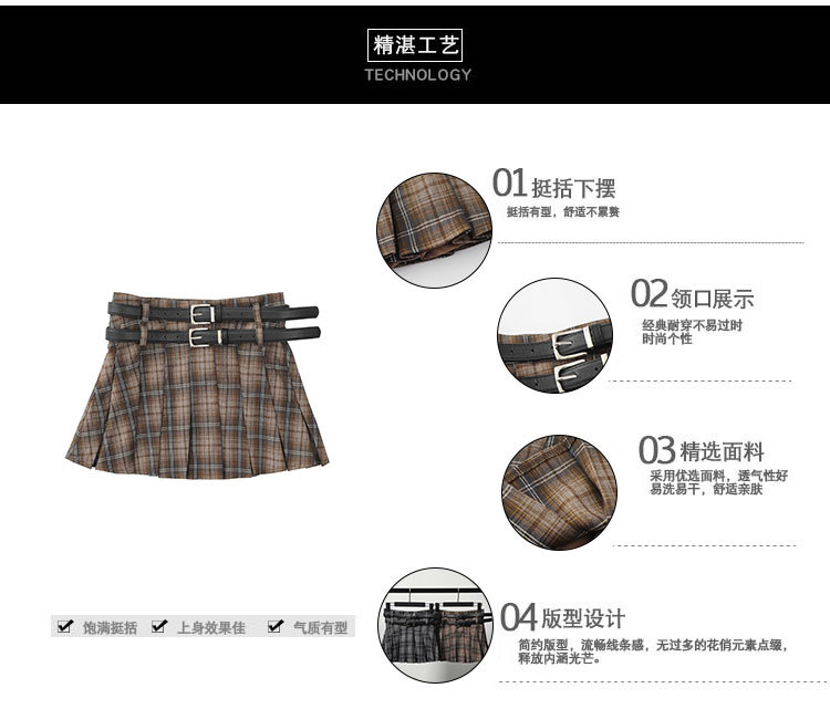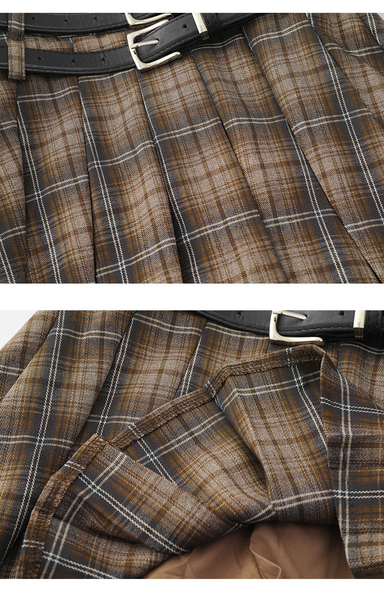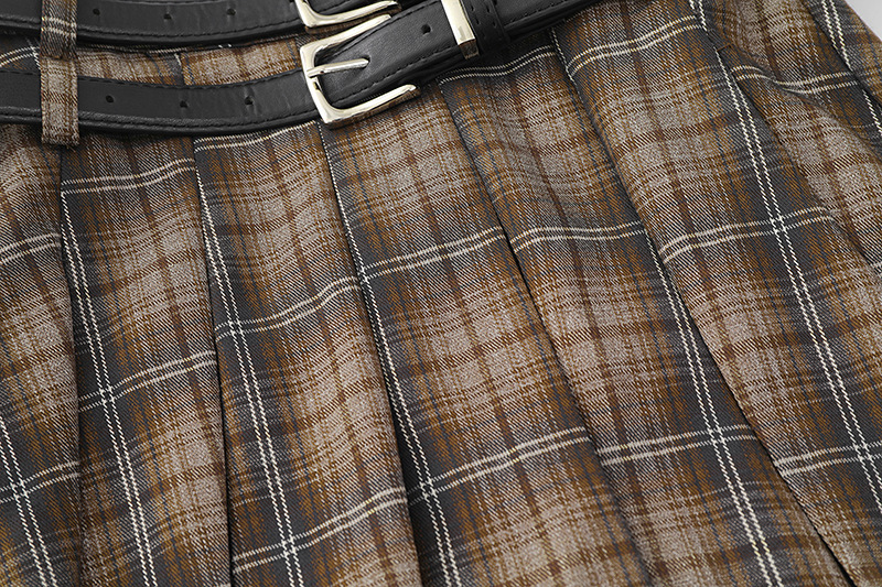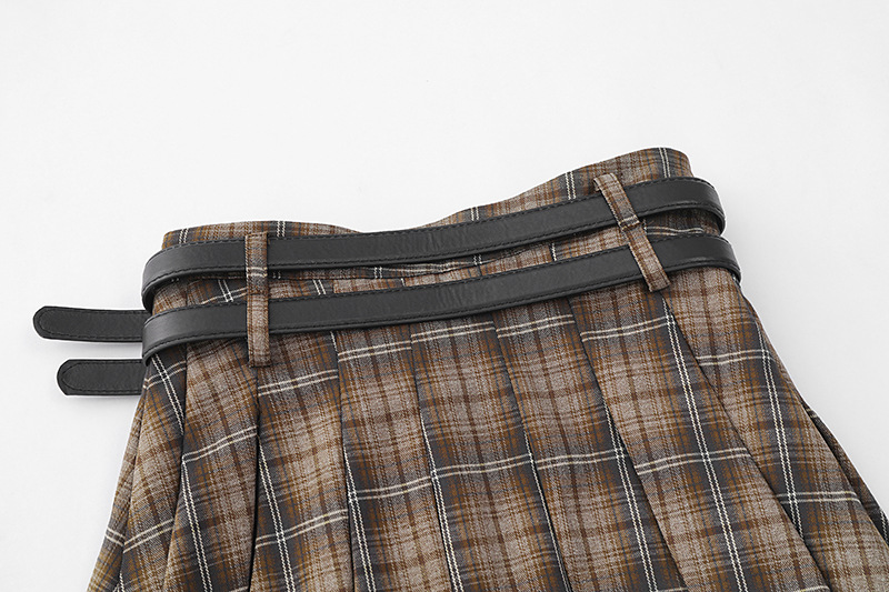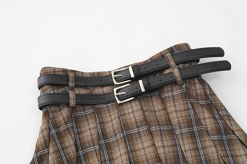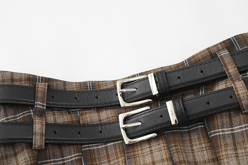 YPRS 남성용 오리지널 패션 브랜드 더블 벨트 격자 무늬 디자인 틈새 하이 웨이스트 슬리밍 여성용 핫 걸 반바지 A 라인 스커트