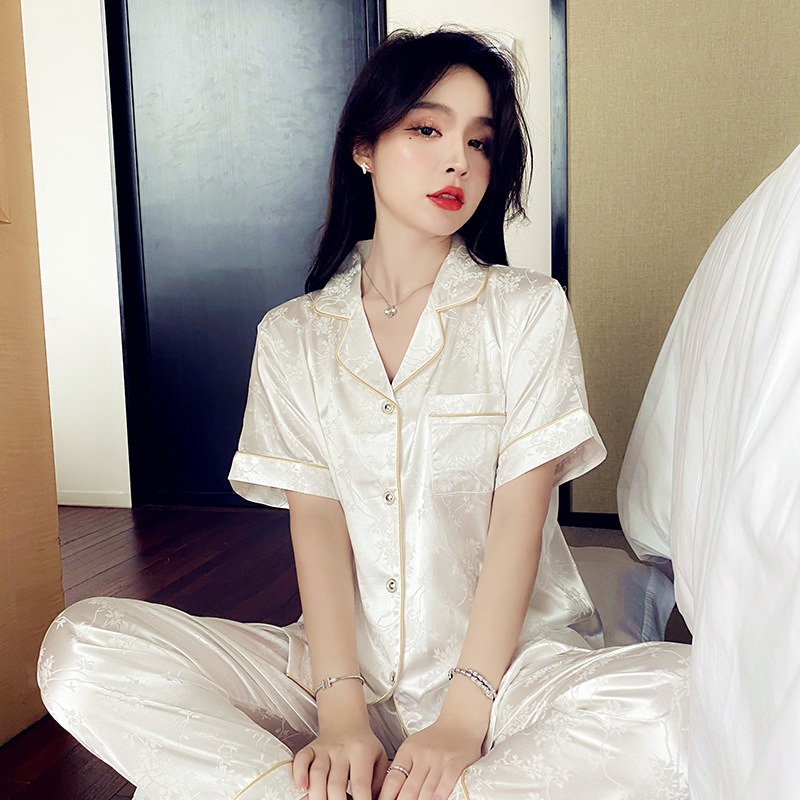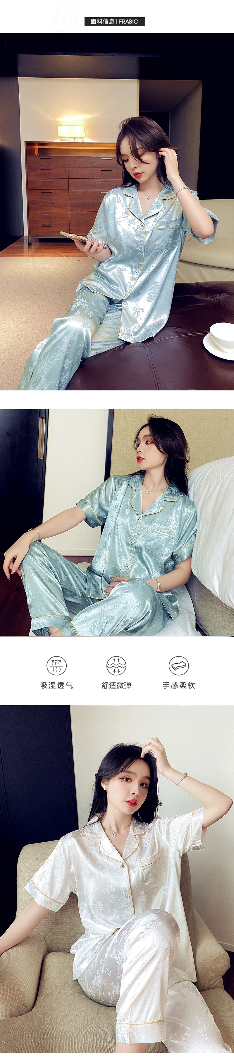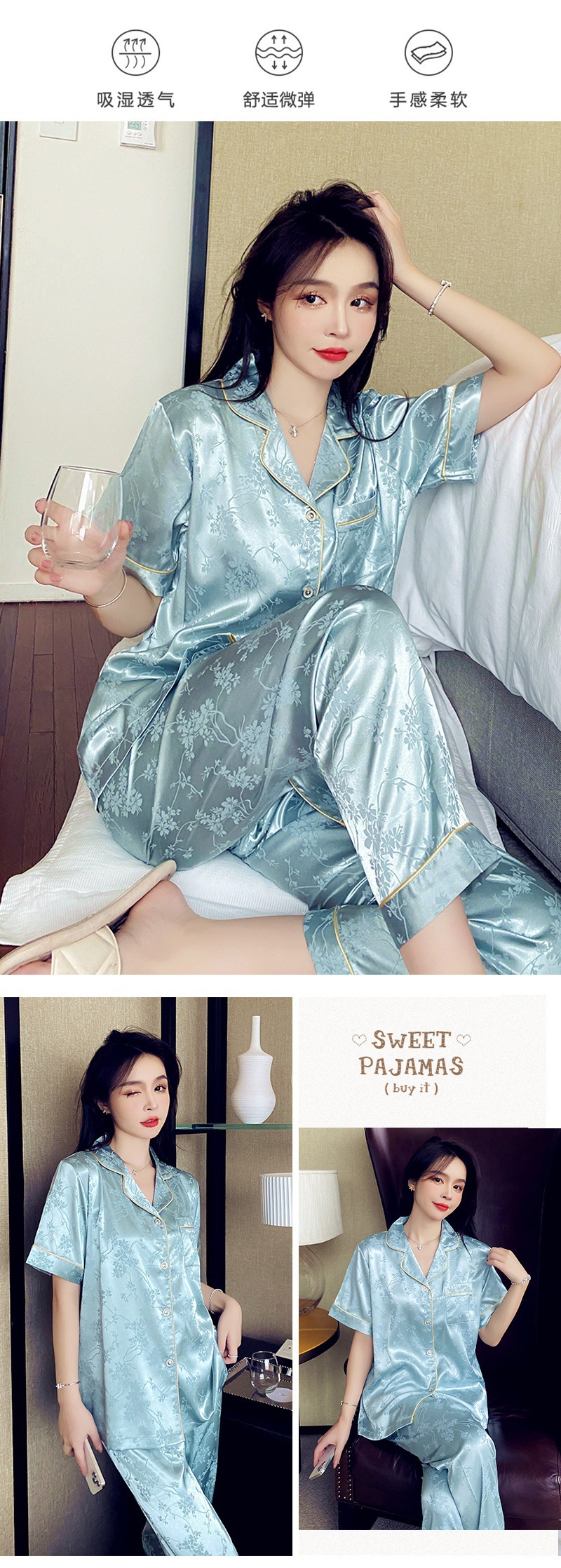 2026 여성용 여름 잠옷, 아이스 실크 여성용 가디건, 반팔 긴바지, 블루 캐주얼 여성용, 라이브 방송용 고급 아이스 실크