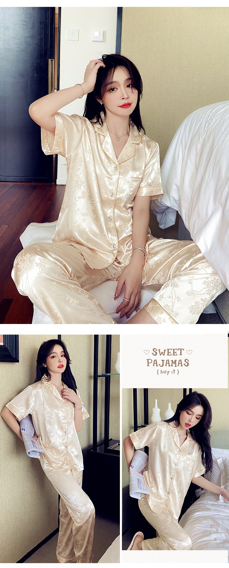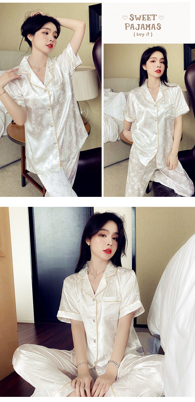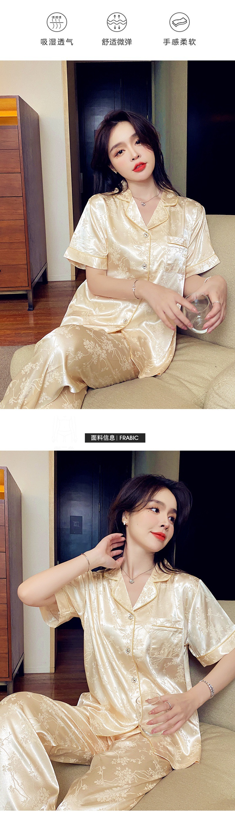 2026 여성용 여름 잠옷, 아이스 실크 여성용 가디건, 반팔 긴바지, 블루 캐주얼 여성용, 라이브 방송용 고급 아이스 실크