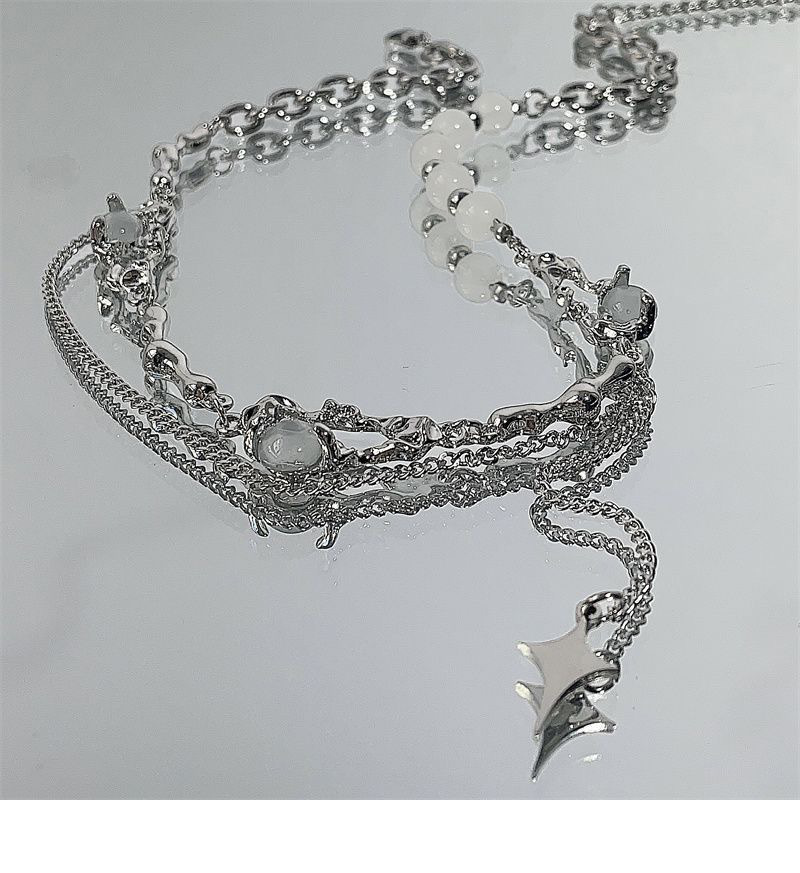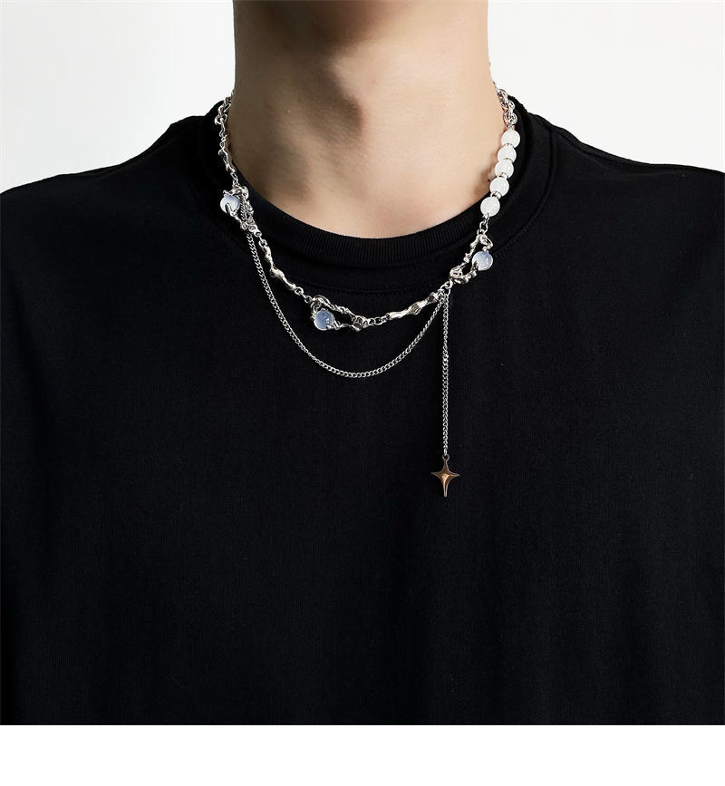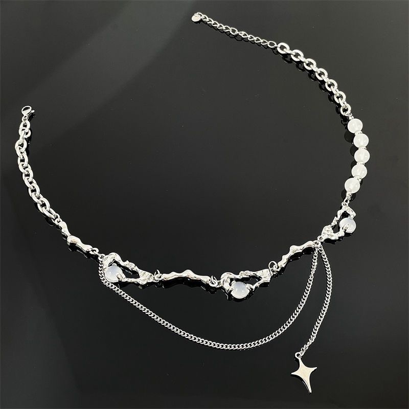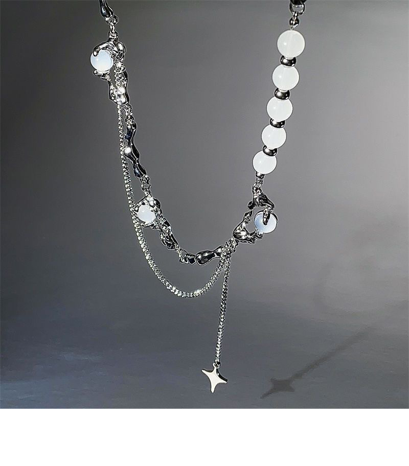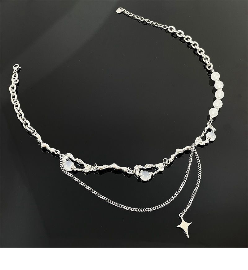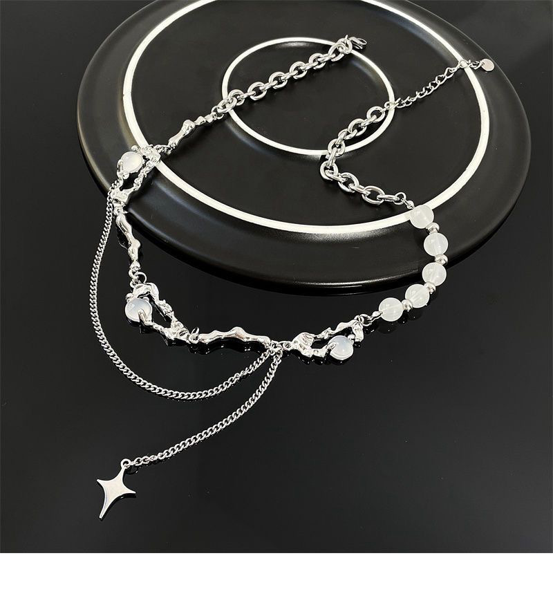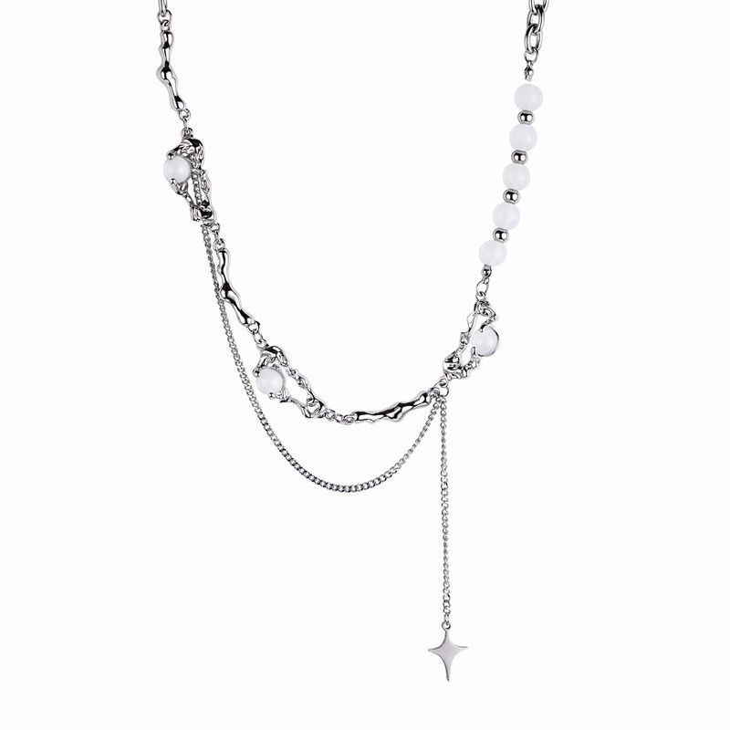니치 디자인 고급 오팔 비즈 스티치 술 4 코너 스타 목걸이 여성 라이트 럭셔리 스타일 남성 쇄골 체인