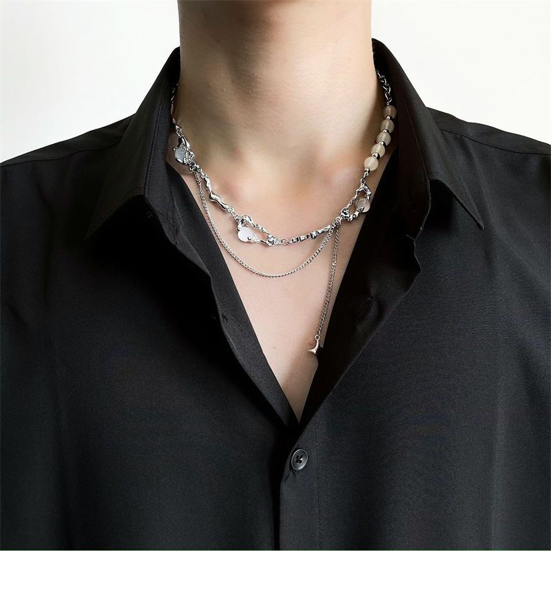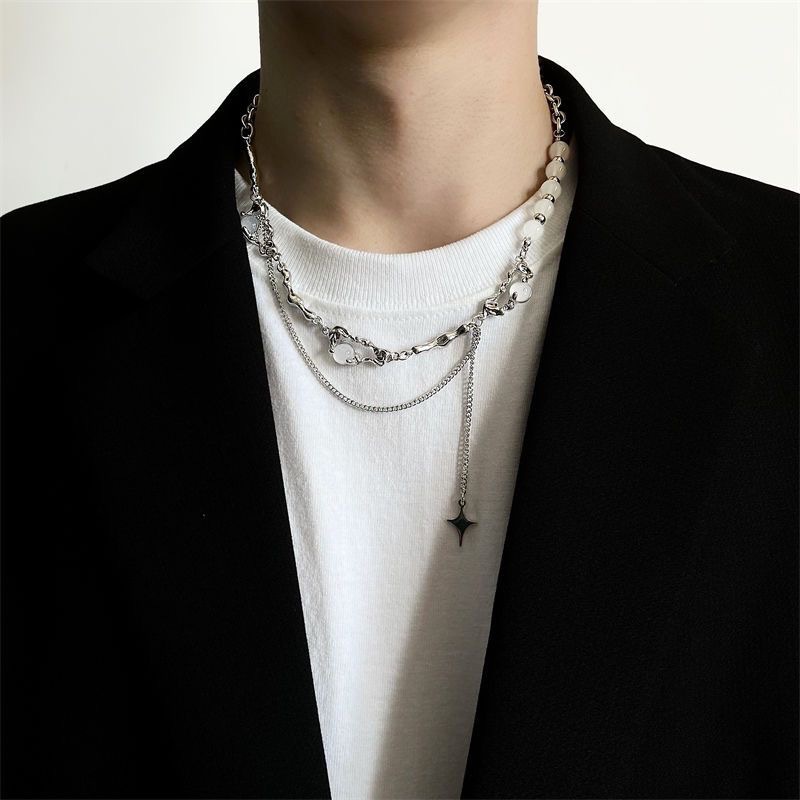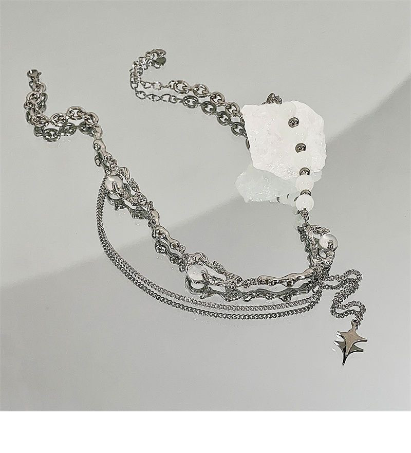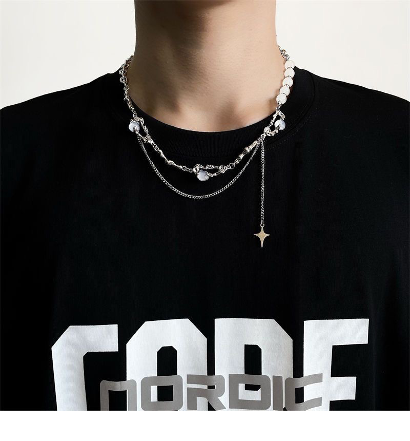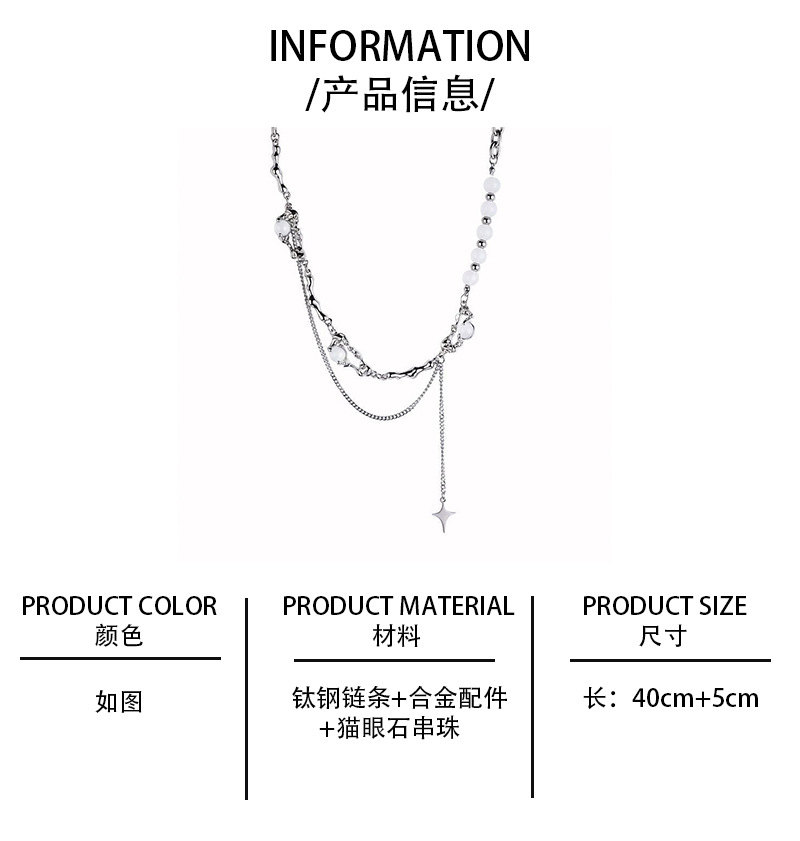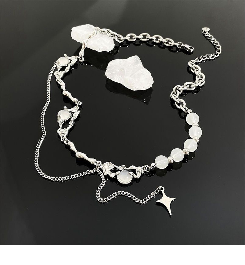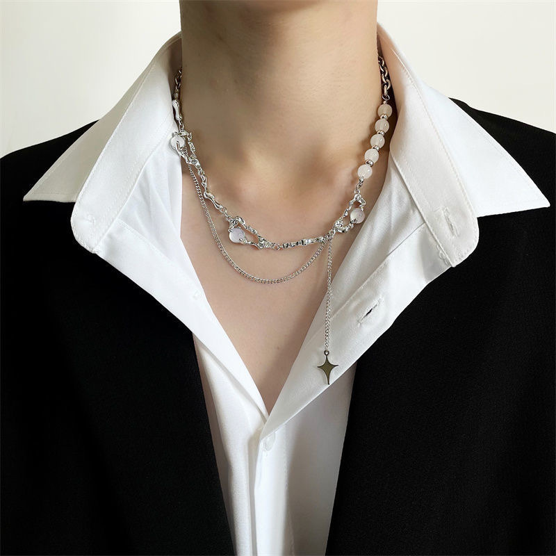 니치 디자인 고급 오팔 비즈 스티치 술 4 코너 스타 목걸이 여성 라이트 럭셔리 스타일 남성 쇄골 체인