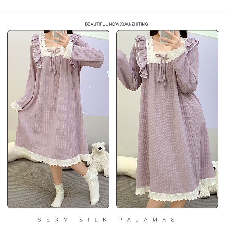 잠옷 여자의 봄과 가을 6535 면 공주 스타일 긴 소매 중간 길이 잠옷 플러스 뚱뚱한 플러스 사이즈 뚱뚱한 mm220 가정 옷