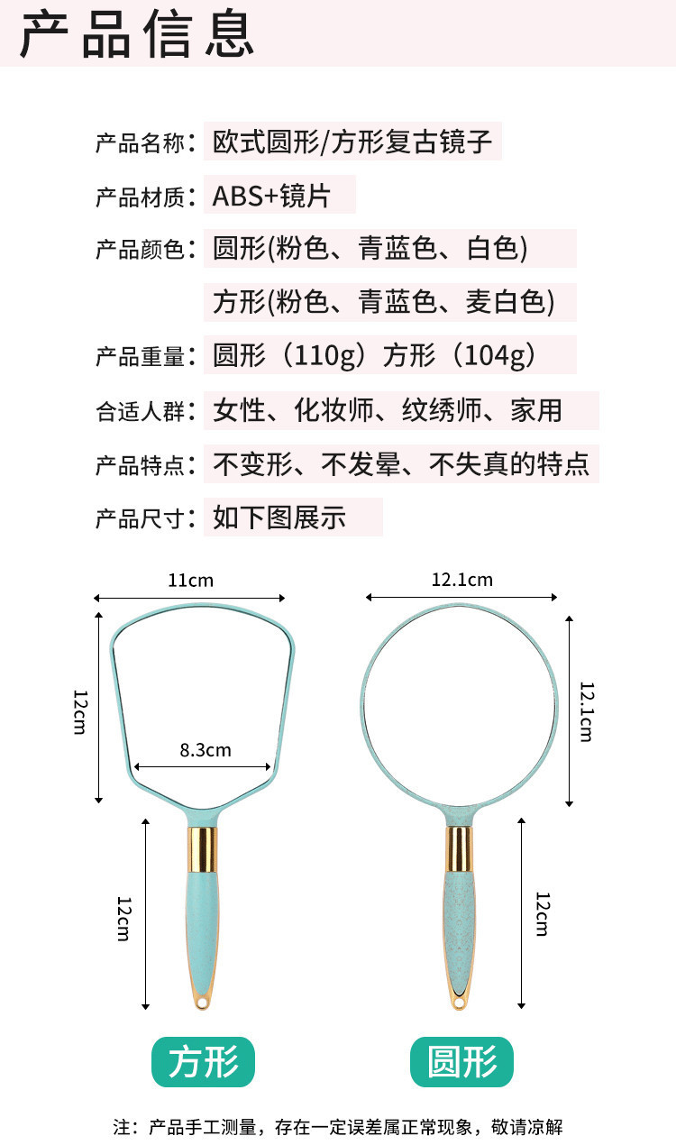 메이크업 거울 문신 특수 휴대용 손잡이 거울 손 드레싱 휴대용 작은 거울 미용실 용품