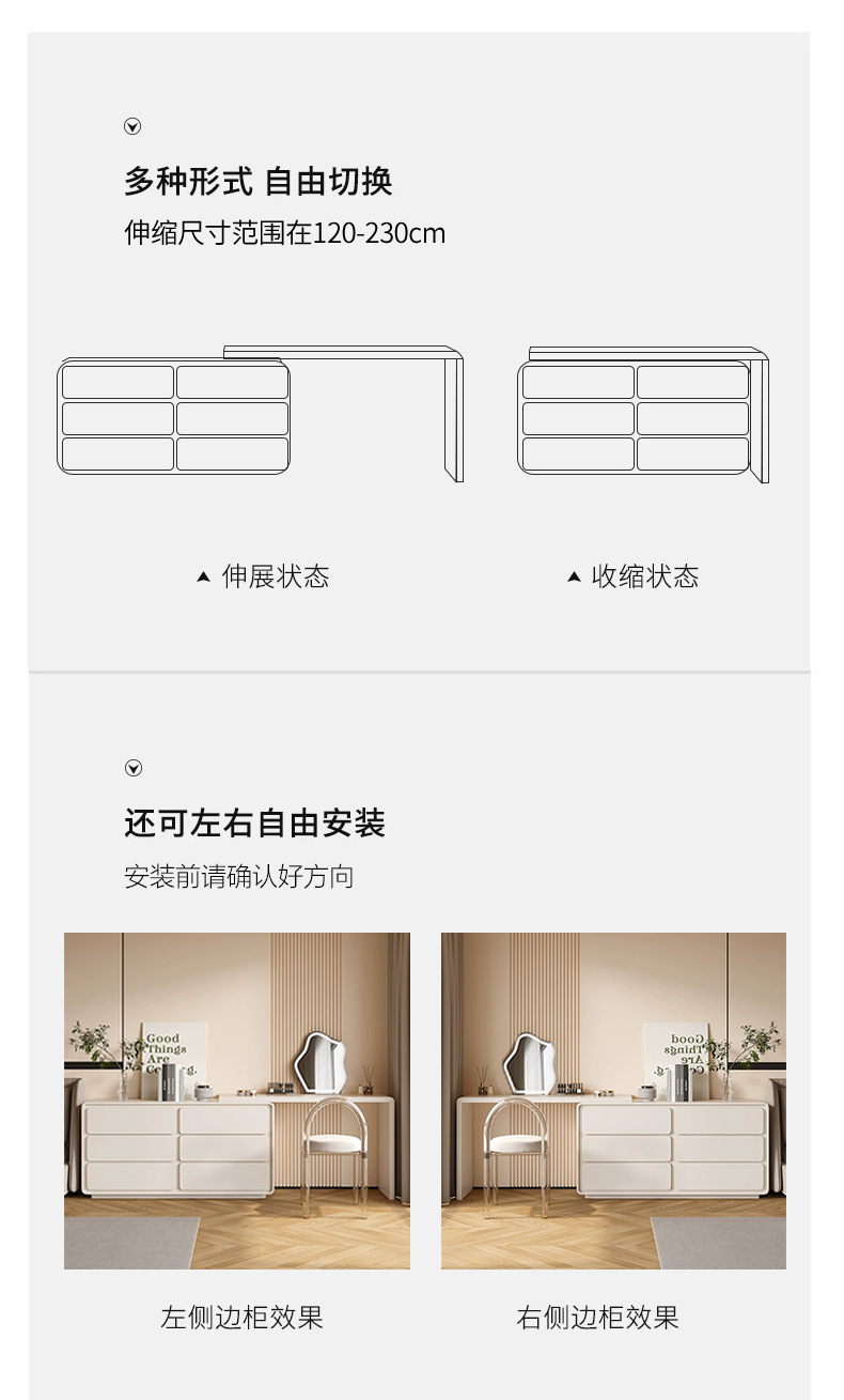 2023/9/1更新:梳妆台升级为默认预留踢脚线位置,且左右通用。