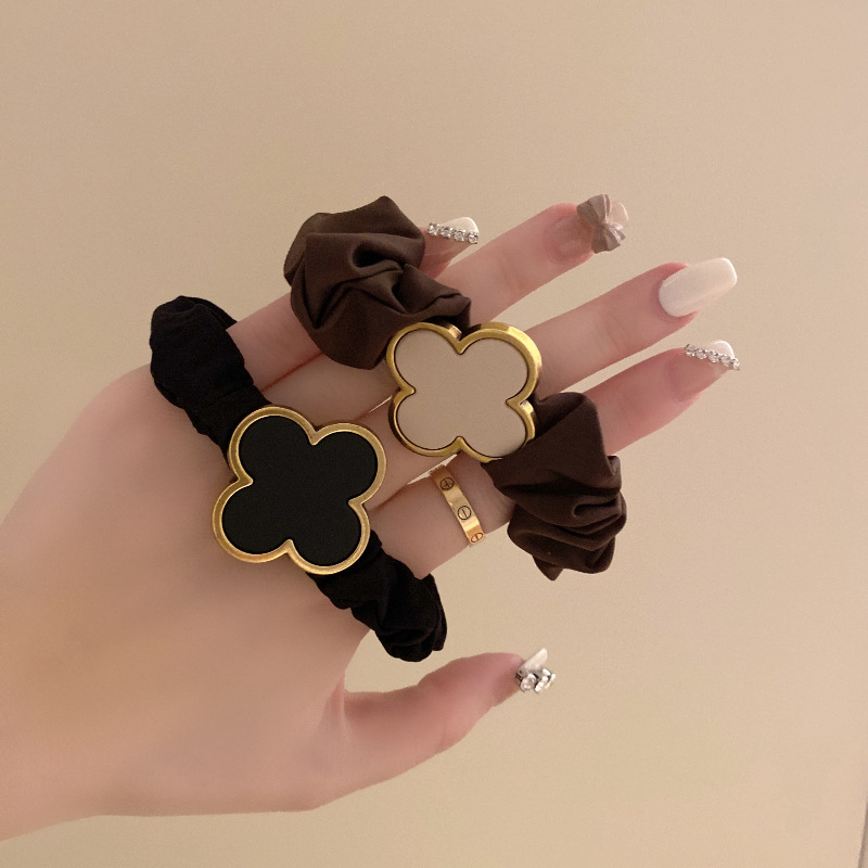 한국 복고풍 금속 네잎 꽃 머리끈, 심플한 포니테일 머리끈, 인터넷 연예인 머리끈, 고무줄, 도매 헤어 액세서리
