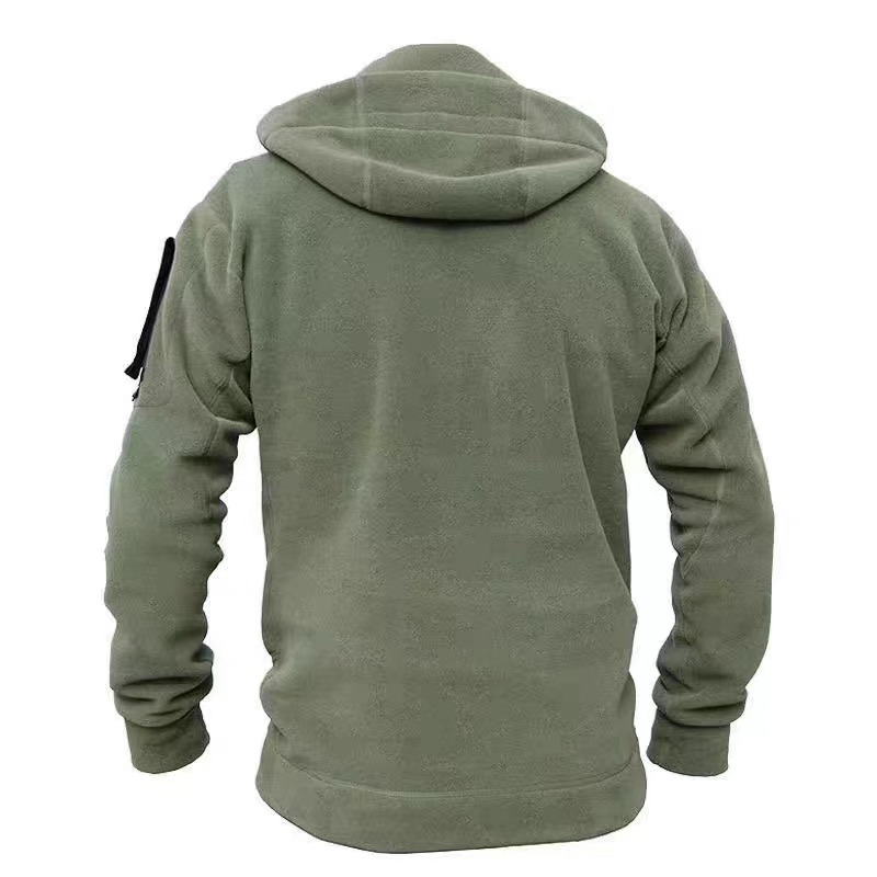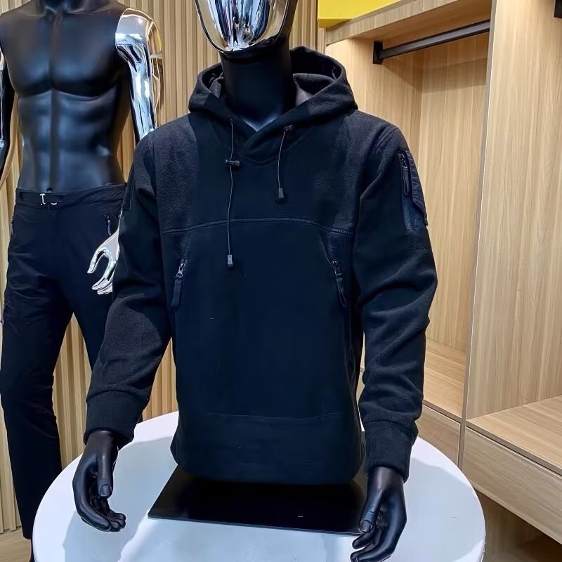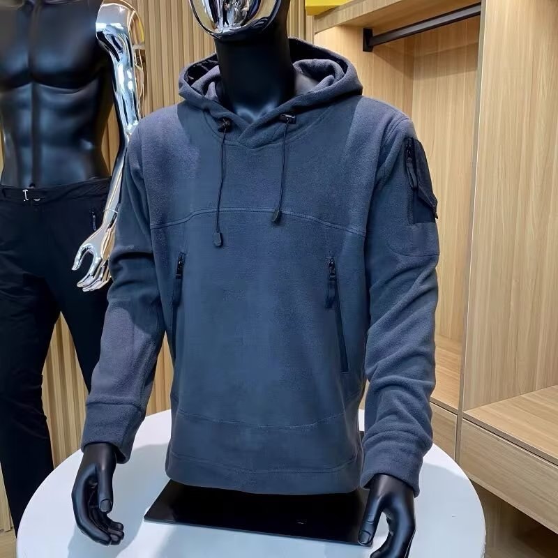 미국 기능성 지퍼 포켓 전술 양털 스웨터 남성용 모자 두꺼운 따뜻한 야외 가을과 겨울 청소년
