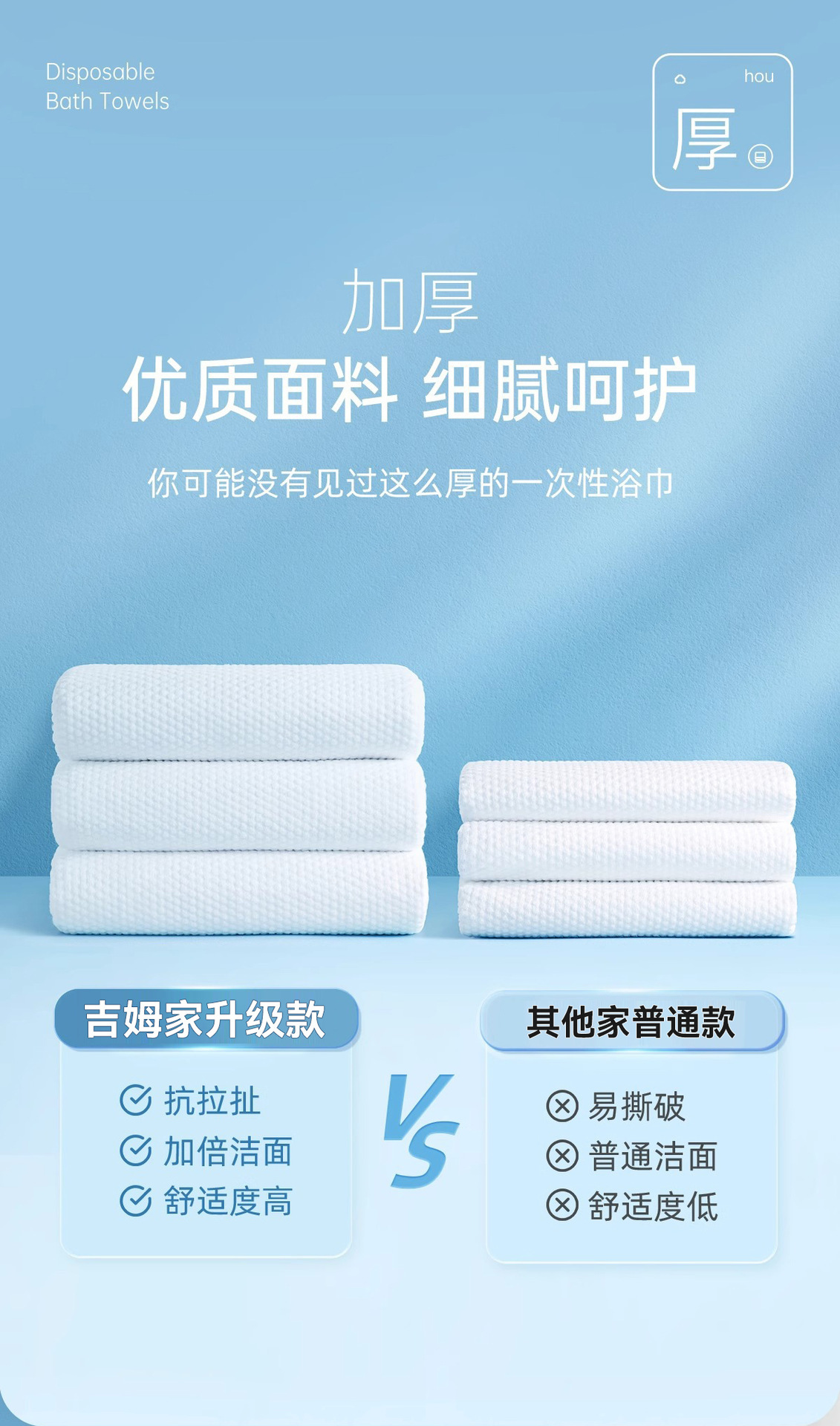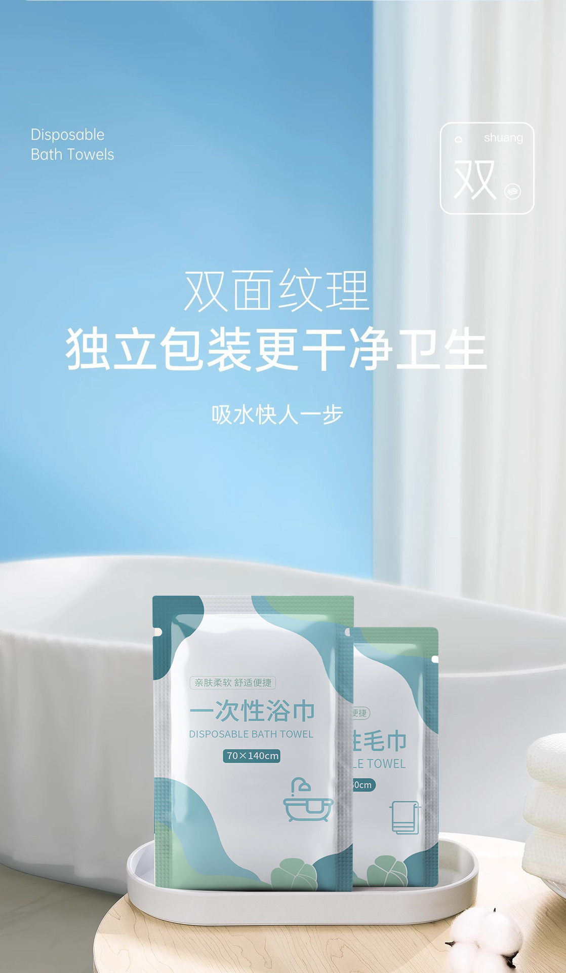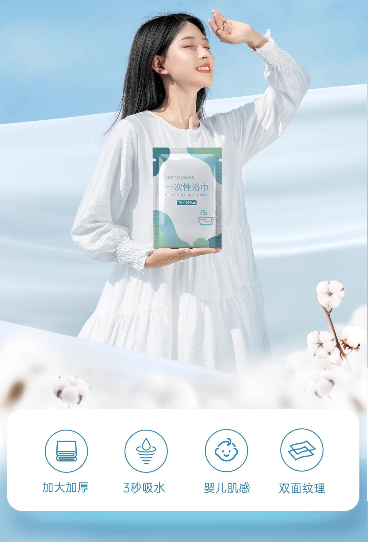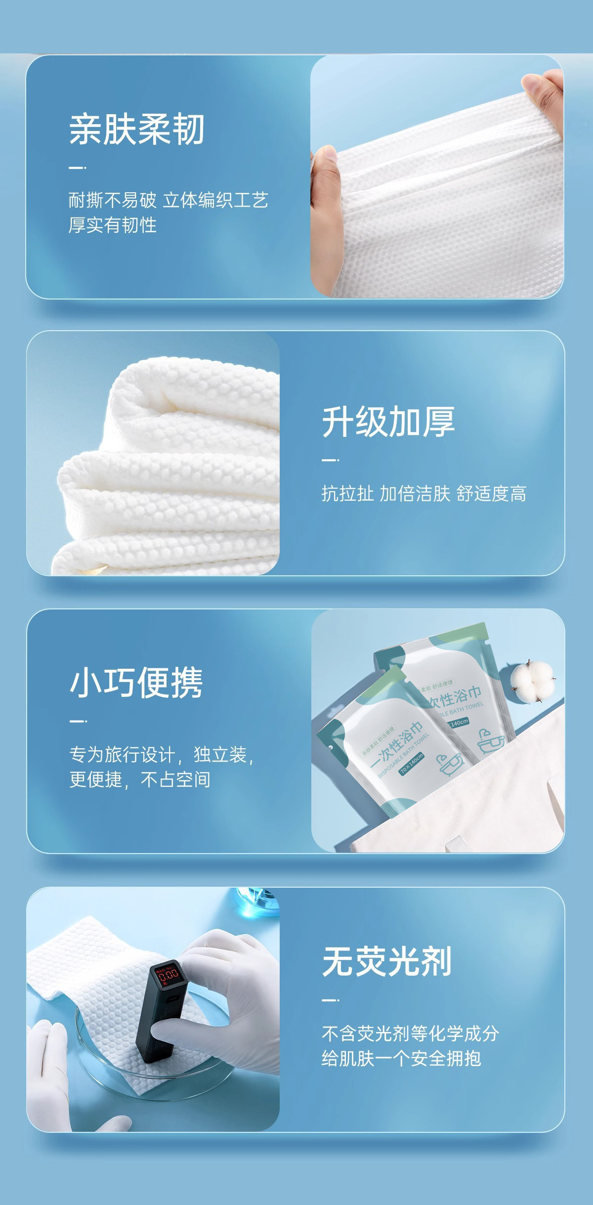 일회용 목욕 타월, 여행용 개별 포장 타월, 두껍고 확대된 순면, 호텔 특별 휴대용 여행 필수품