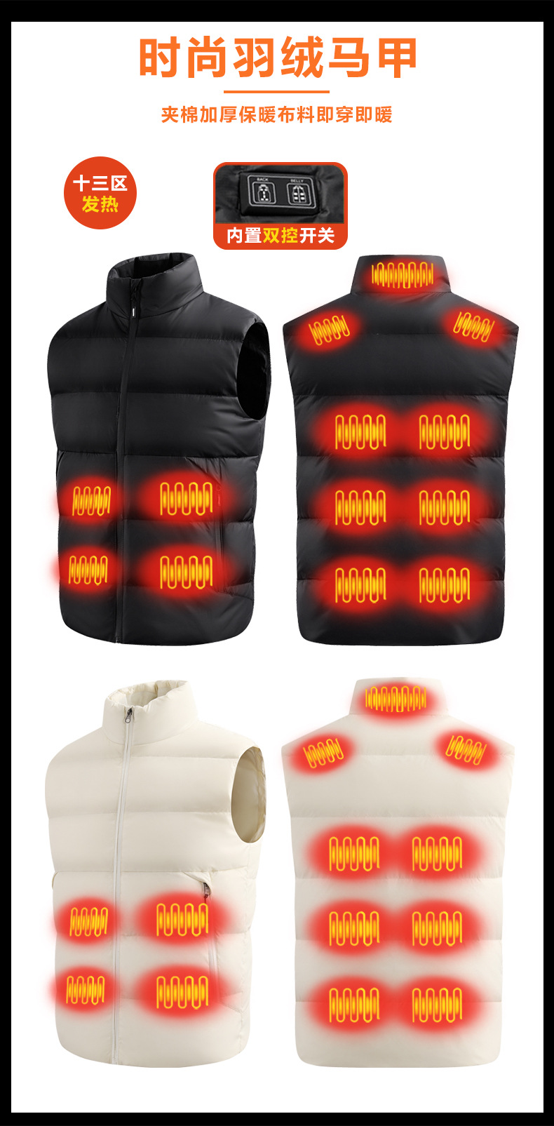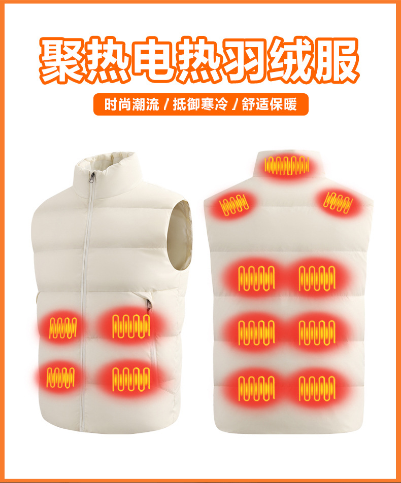 크로스 보더 플러스 사이즈 다운 난방 조끼 가을과 겨울 60 화이트 오리 다운 조끼 남성과 여성의 전기 난방 따뜻한 전기 조끼