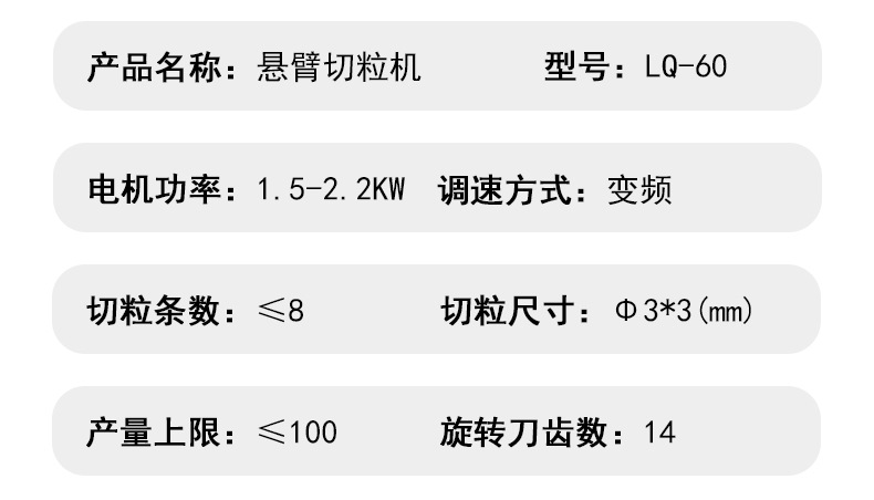 케룬 제조업체 공급 LQ-60 수직 플라스틱 펠레타이저 캔틸레버 펠레타이저 주파수 제어 펠레타이저