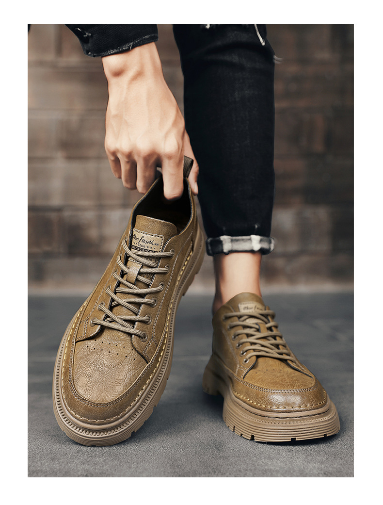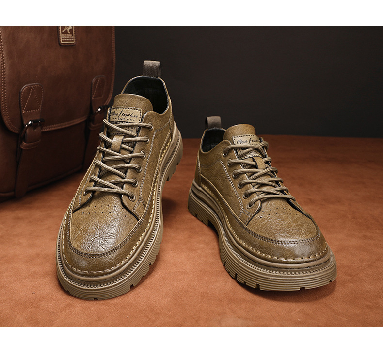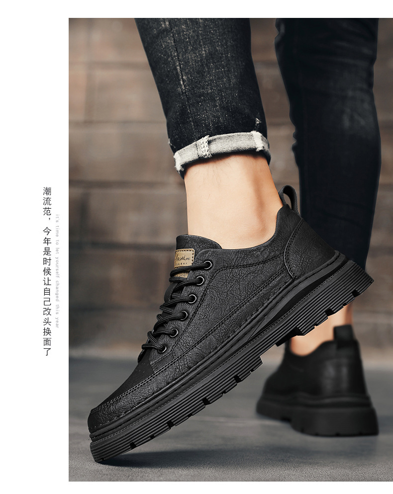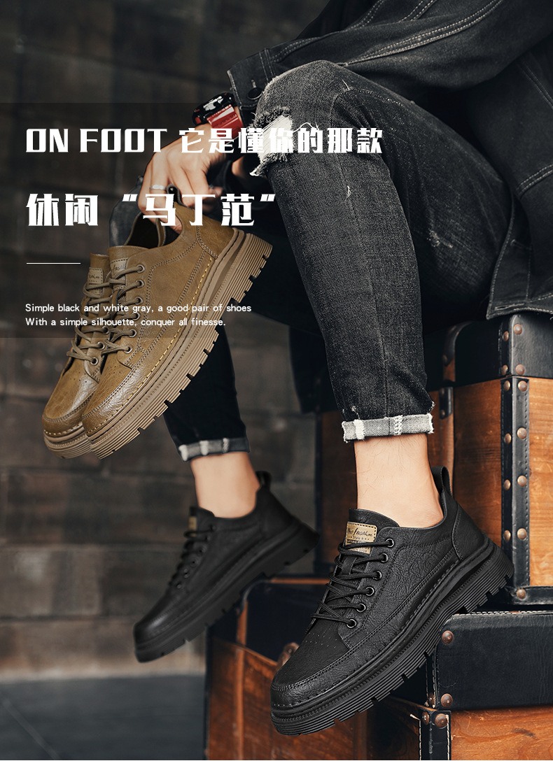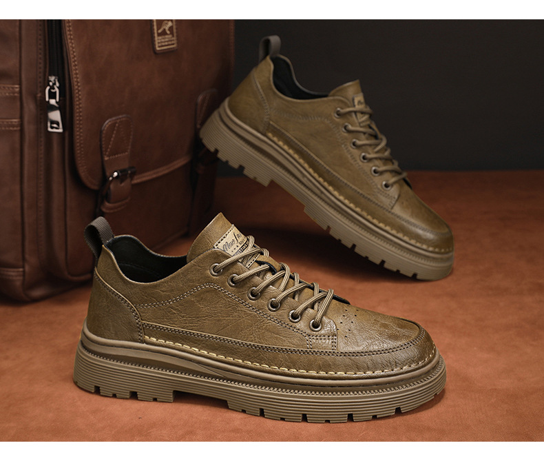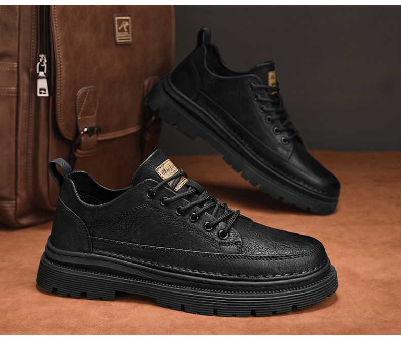 남성화 2026년 봄 신상 로우탑 캐주얼 스니커즈 남성 영국풍 비즈니스 가죽화 남성 패션 워크웨어 마틴부츠