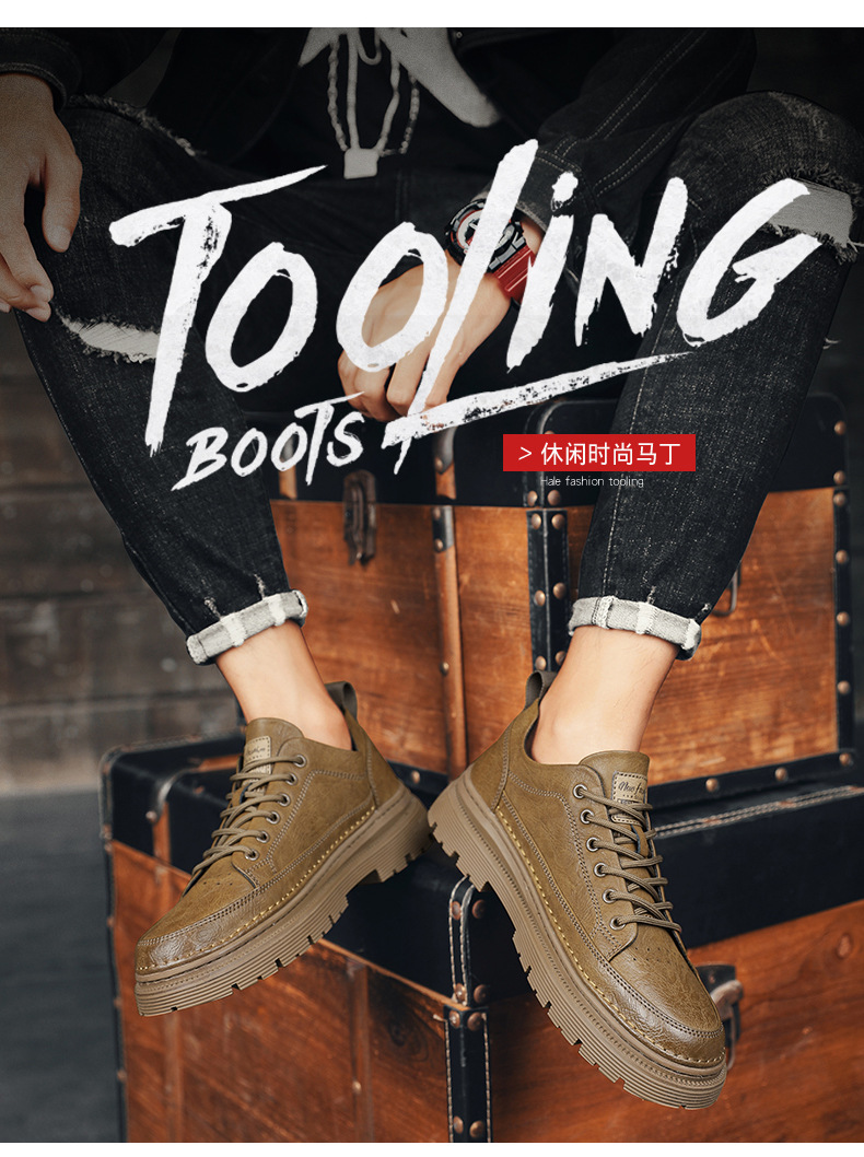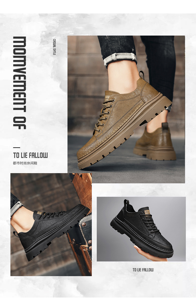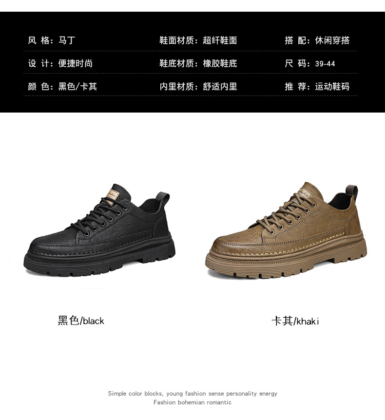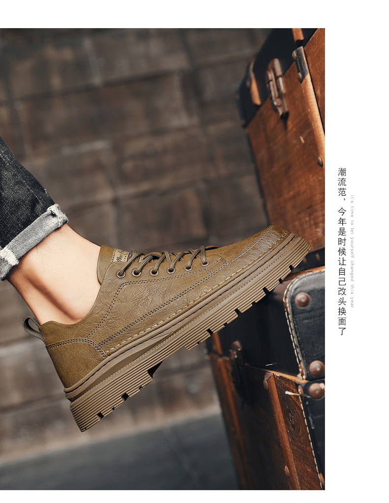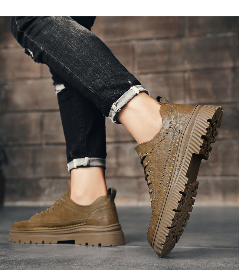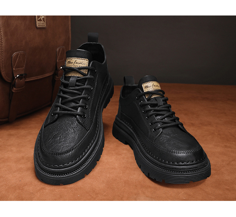 남성화 2026년 봄 신상 로우탑 캐주얼 스니커즈 남성 영국풍 비즈니스 가죽화 남성 패션 워크웨어 마틴부츠