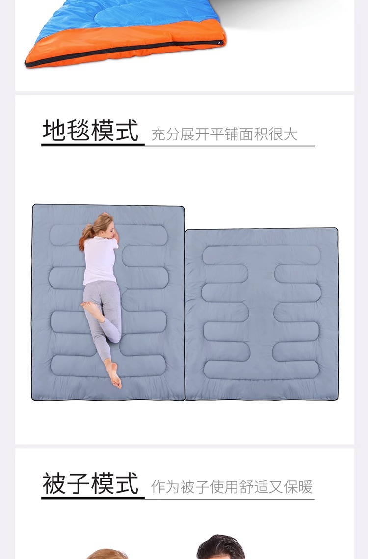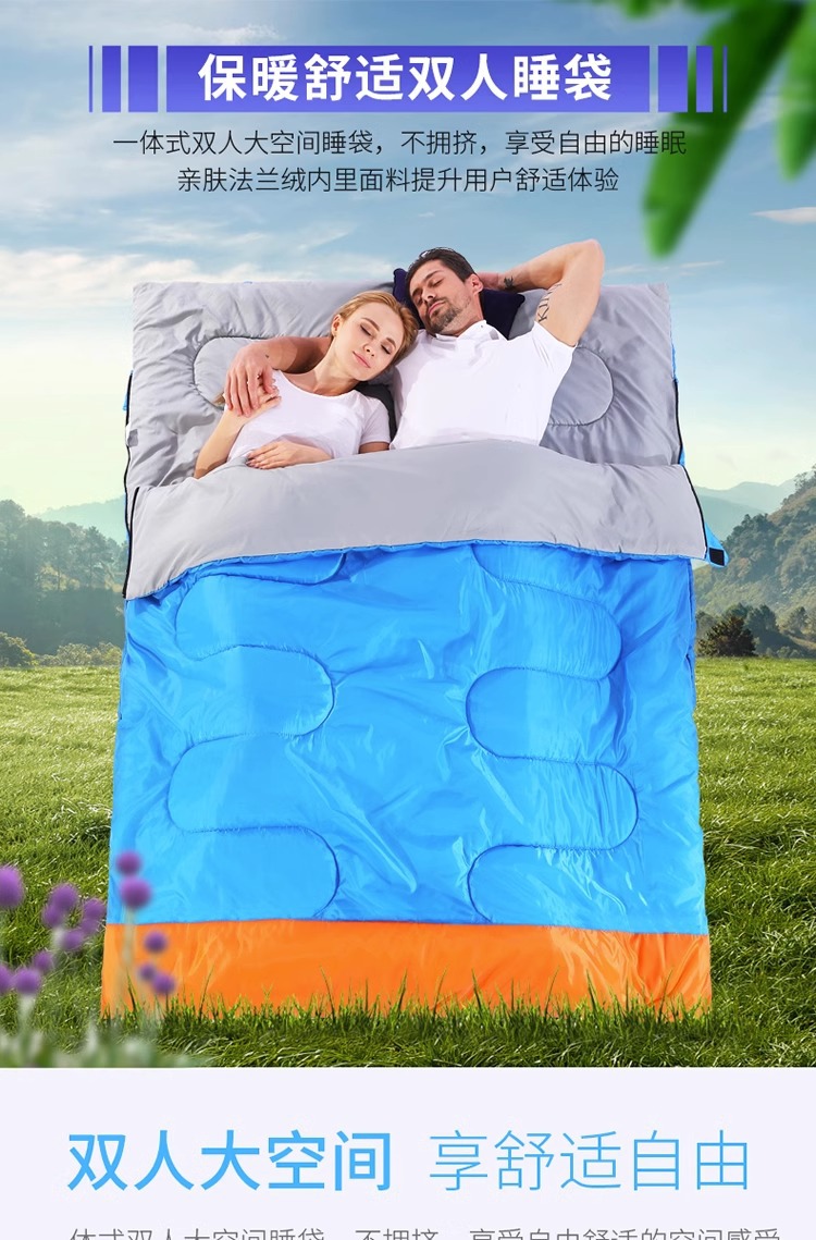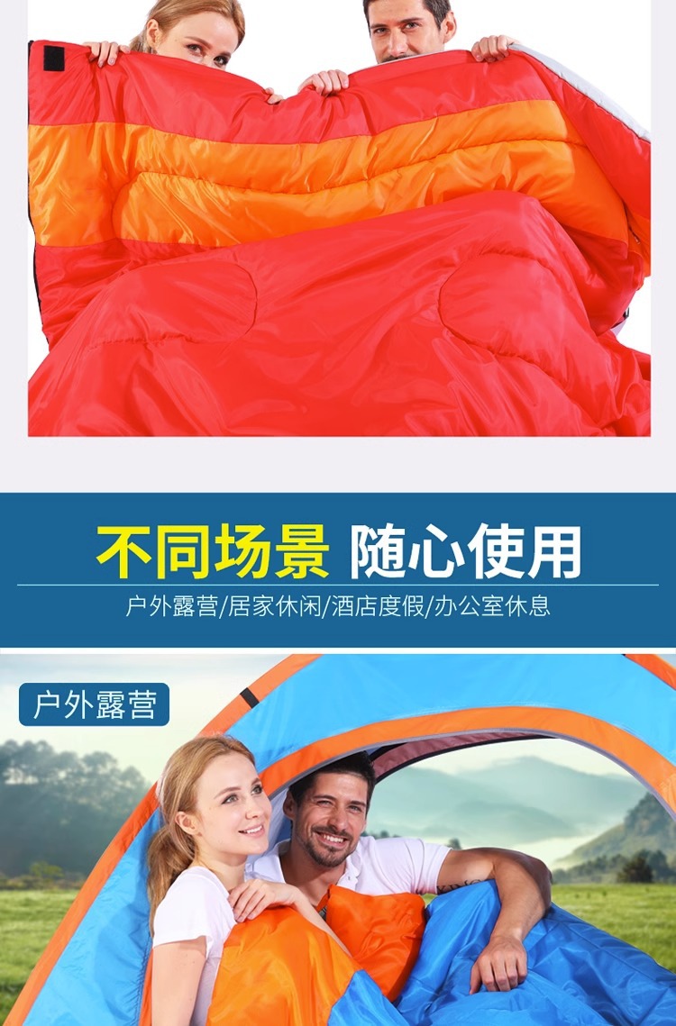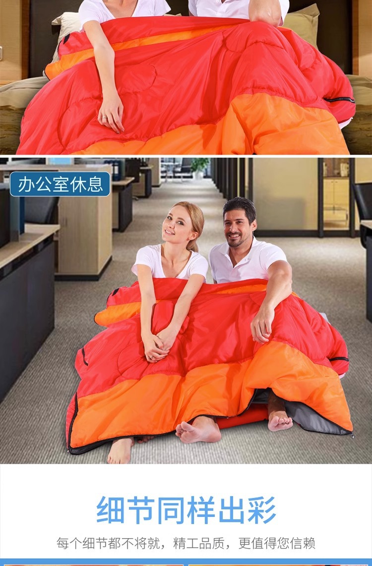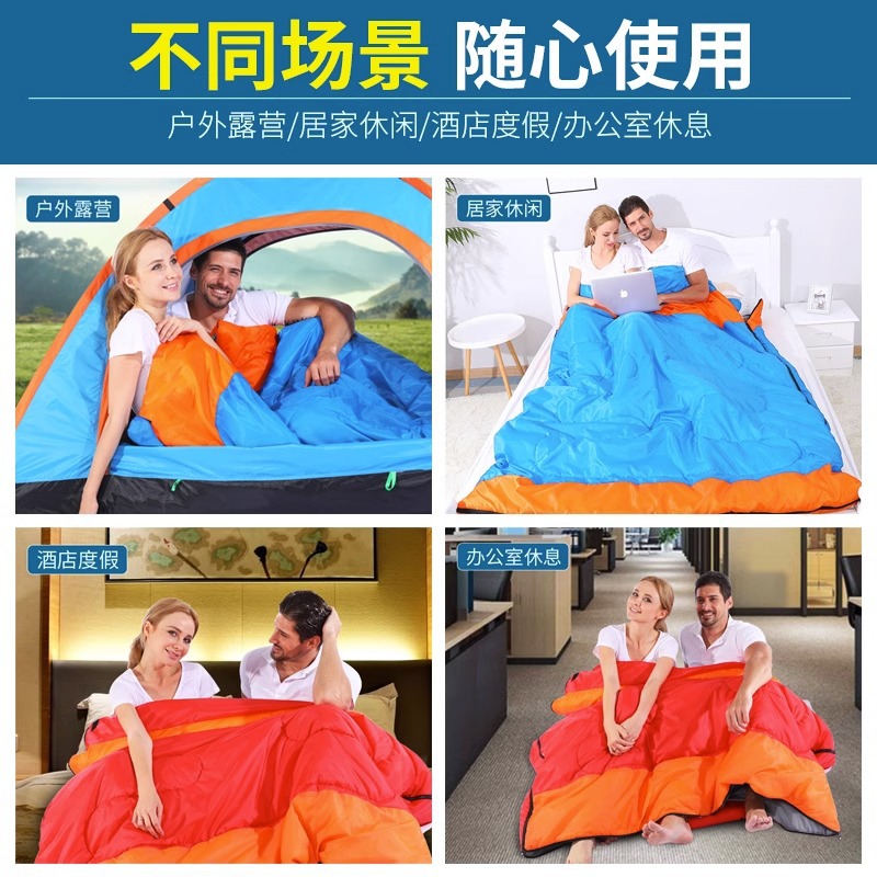 더블 침낭 커플 성인 캠핑 점심 휴식 방한 실내 및 실외 사계절 유니버설 겨울 두꺼운 가구