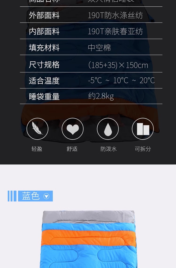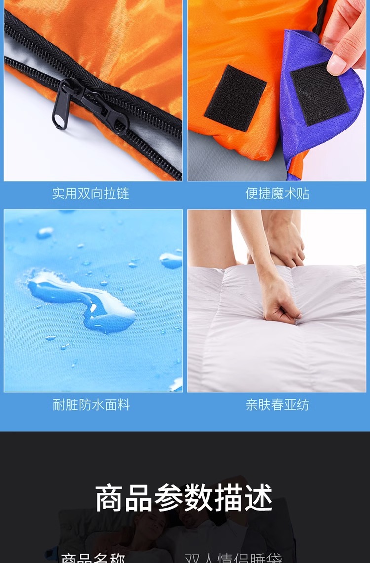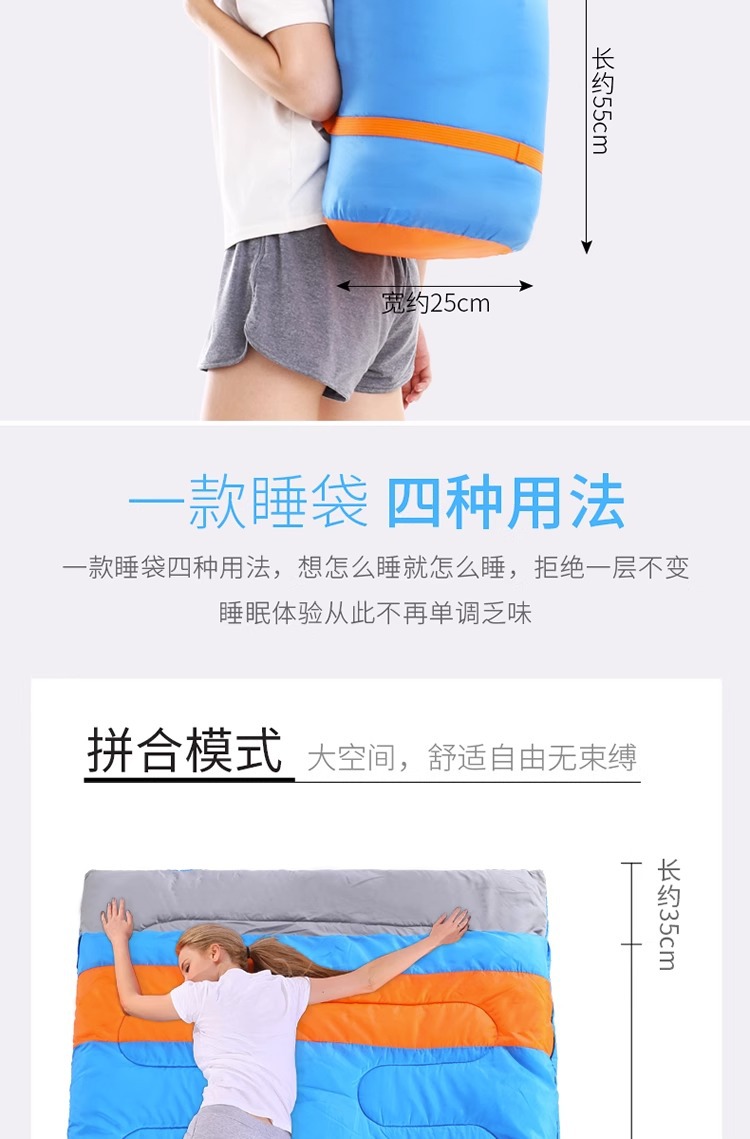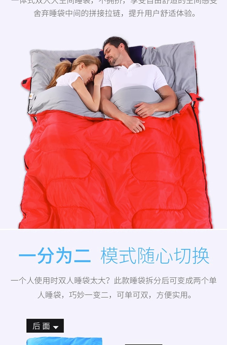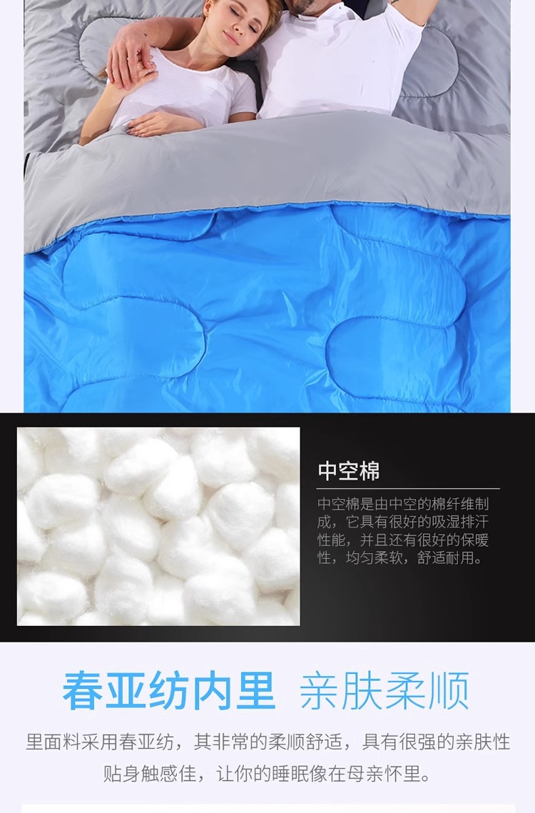 더블 침낭 커플 성인 캠핑 점심 휴식 방한 실내 및 실외 사계절 유니버설 겨울 두꺼운 가구