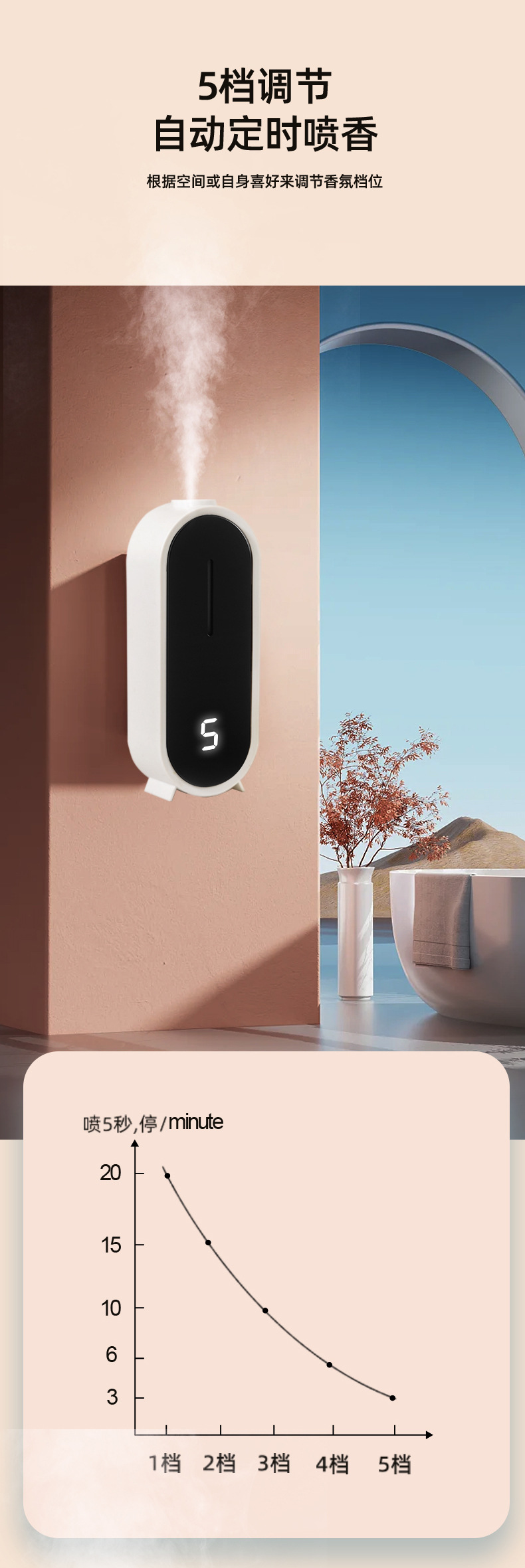 지능형 아로마 테라피 기계 가정용 주방 호텔 욕실 벽걸이 냄새 제거 에센셜 오일 향기 확장 자동 냄새 분무 기계