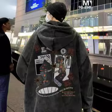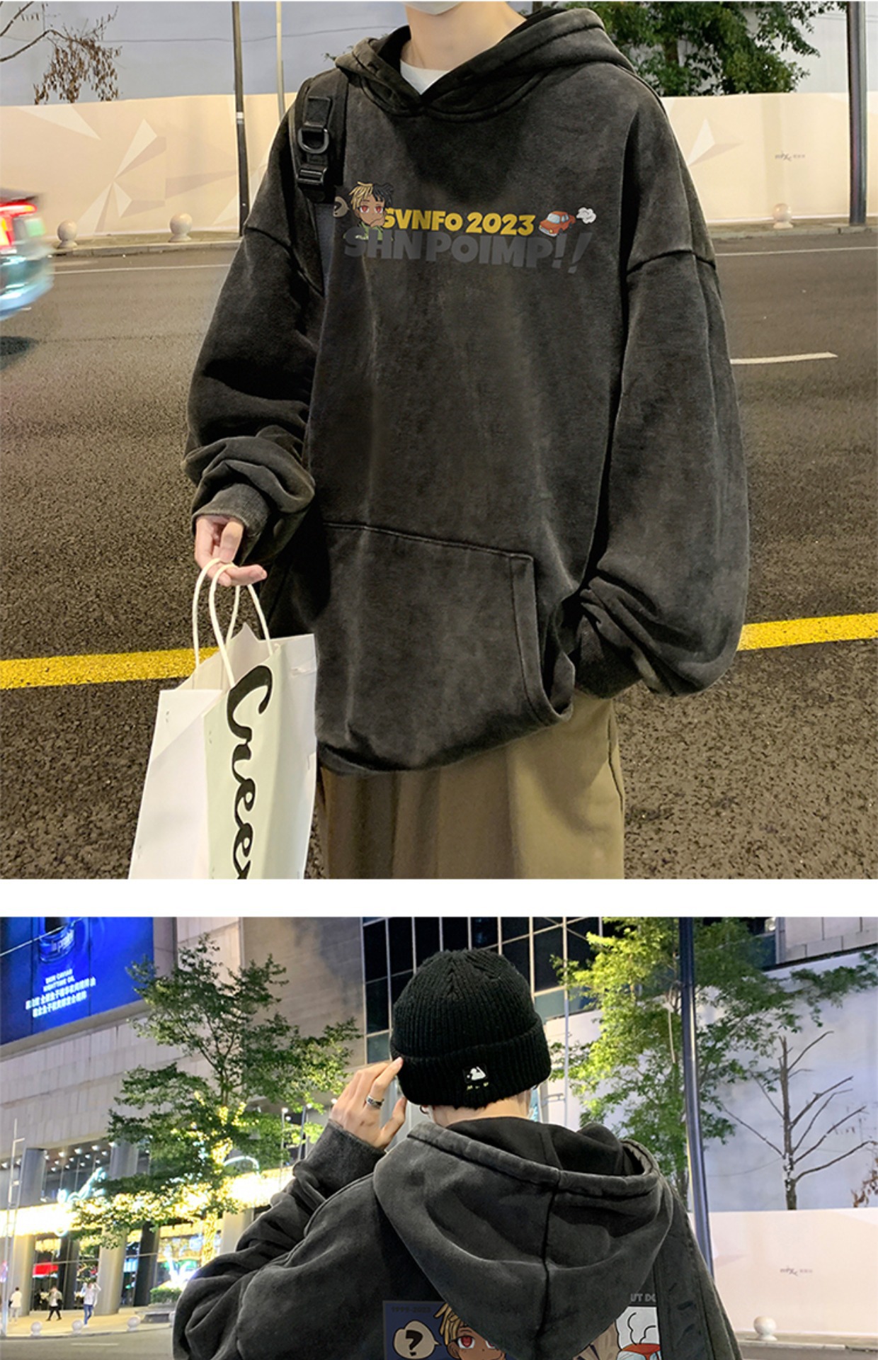 무거운 씻은 퓨어 코튼 올드 후드 스웨트 셔츠 남성 인스 타 그램 인기 브랜드 미국 스타일 레트로 남성과 여성을위한 유럽과 미국 코트