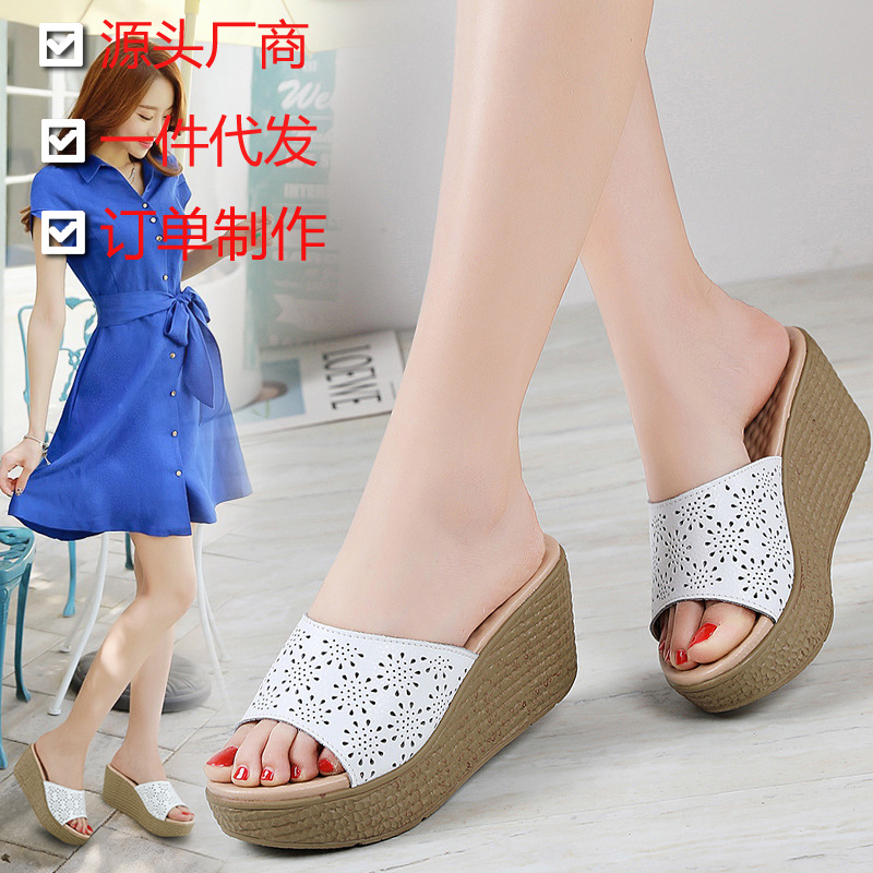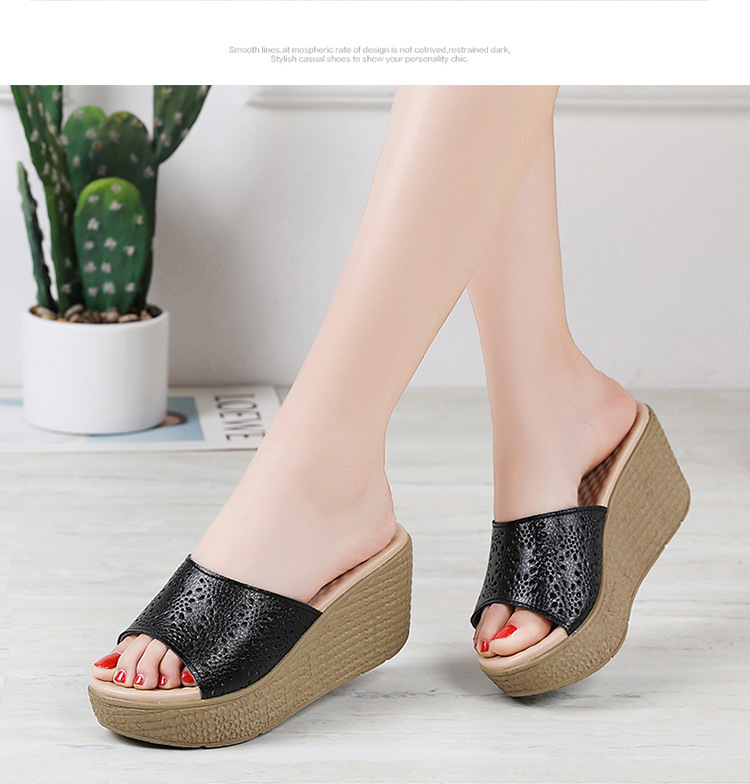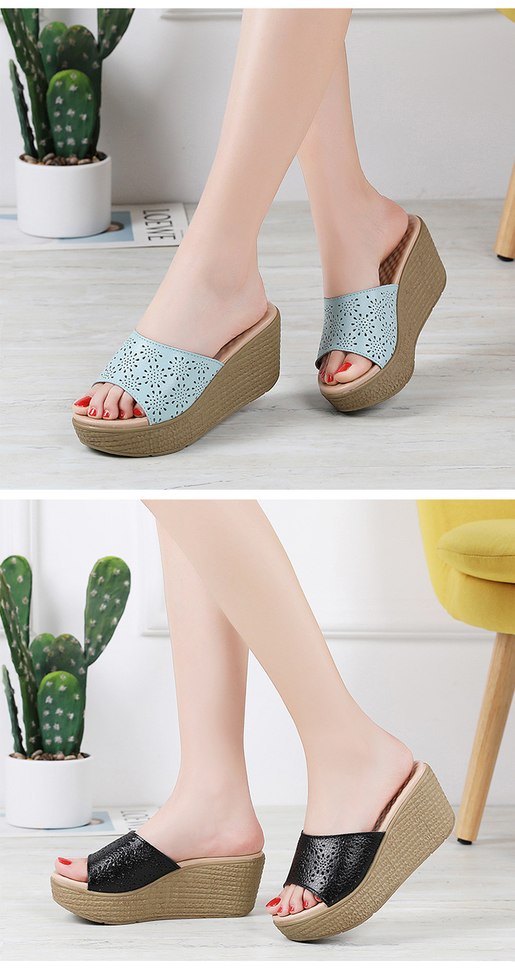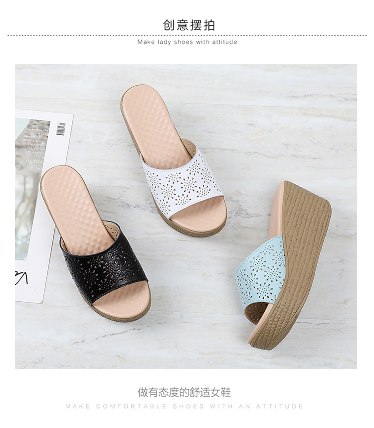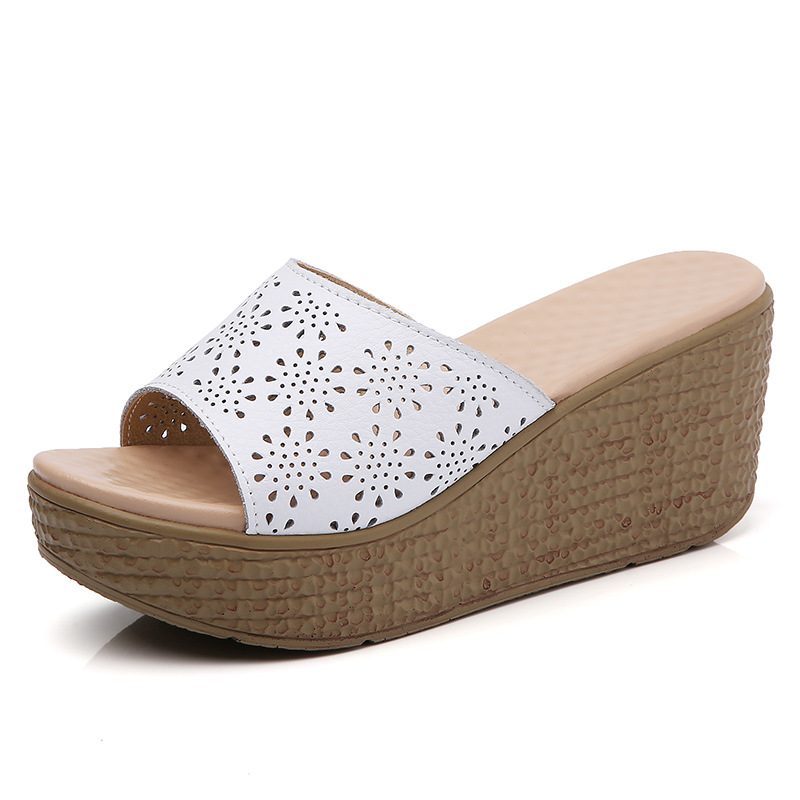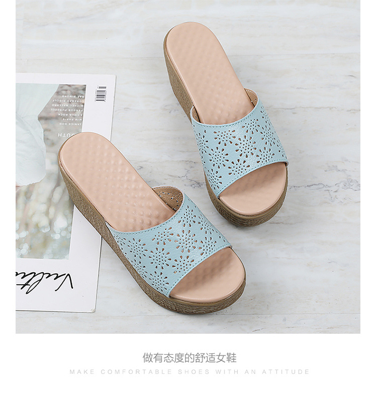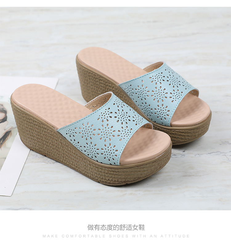 어머니 슬리퍼 슬리퍼 여름용 슬리퍼 새로운 미끄럼 방지 부드러운 바닥 웨지 힐 두꺼운 바닥 캐주얼 중년 여성 샌들