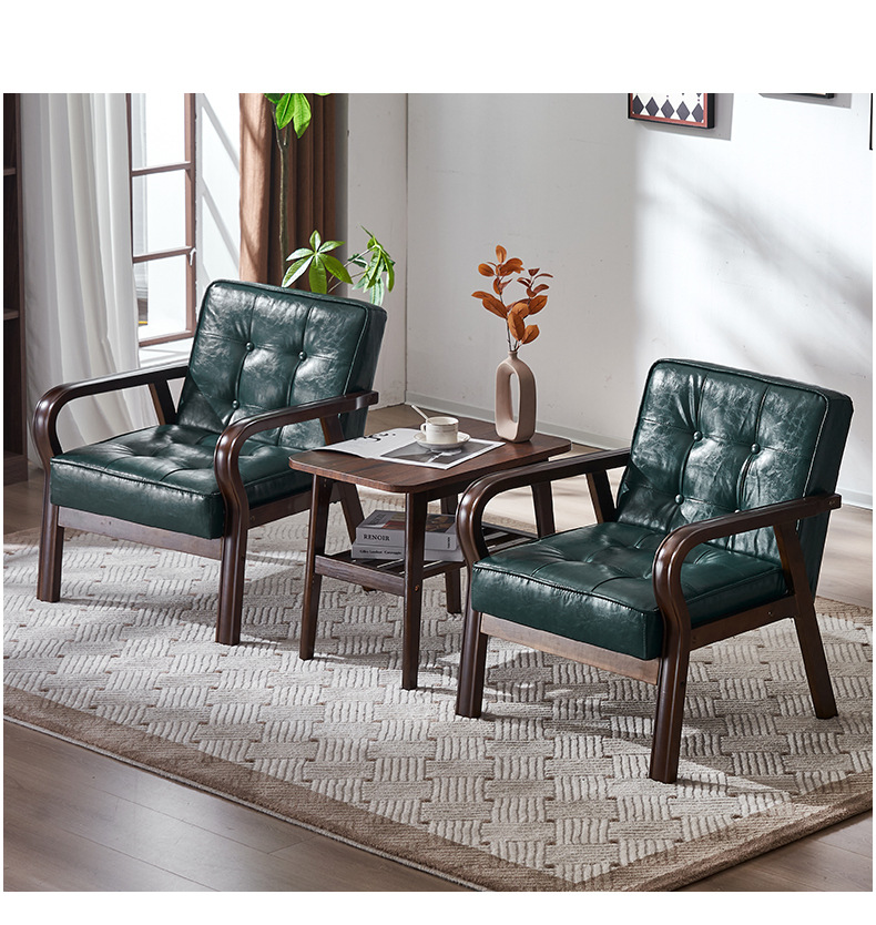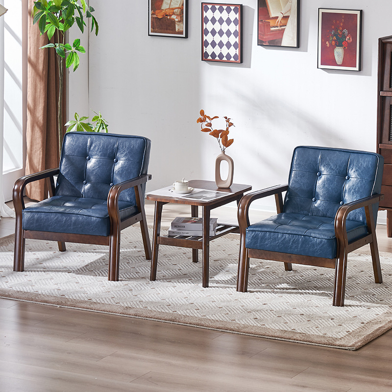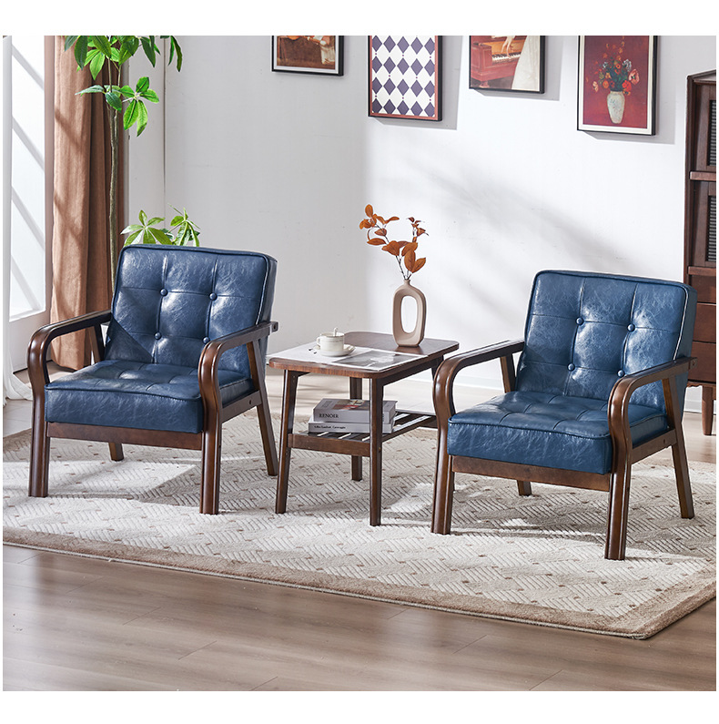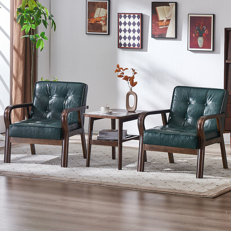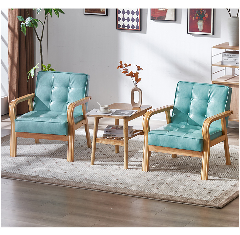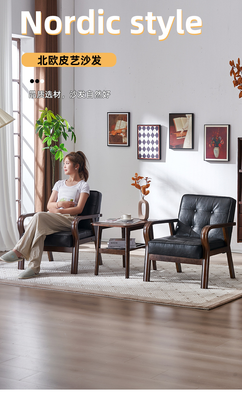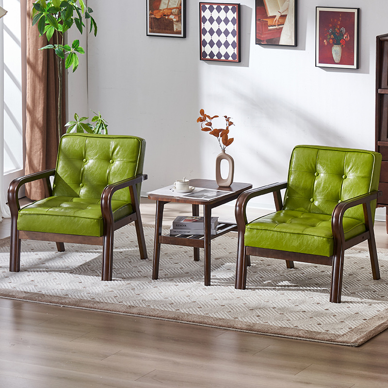가죽 예술 조합 작은 아파트 카페 레저 단단한 나무 의자 싱글 더블 3 인 회의실 북유럽 간단한 소파 의자