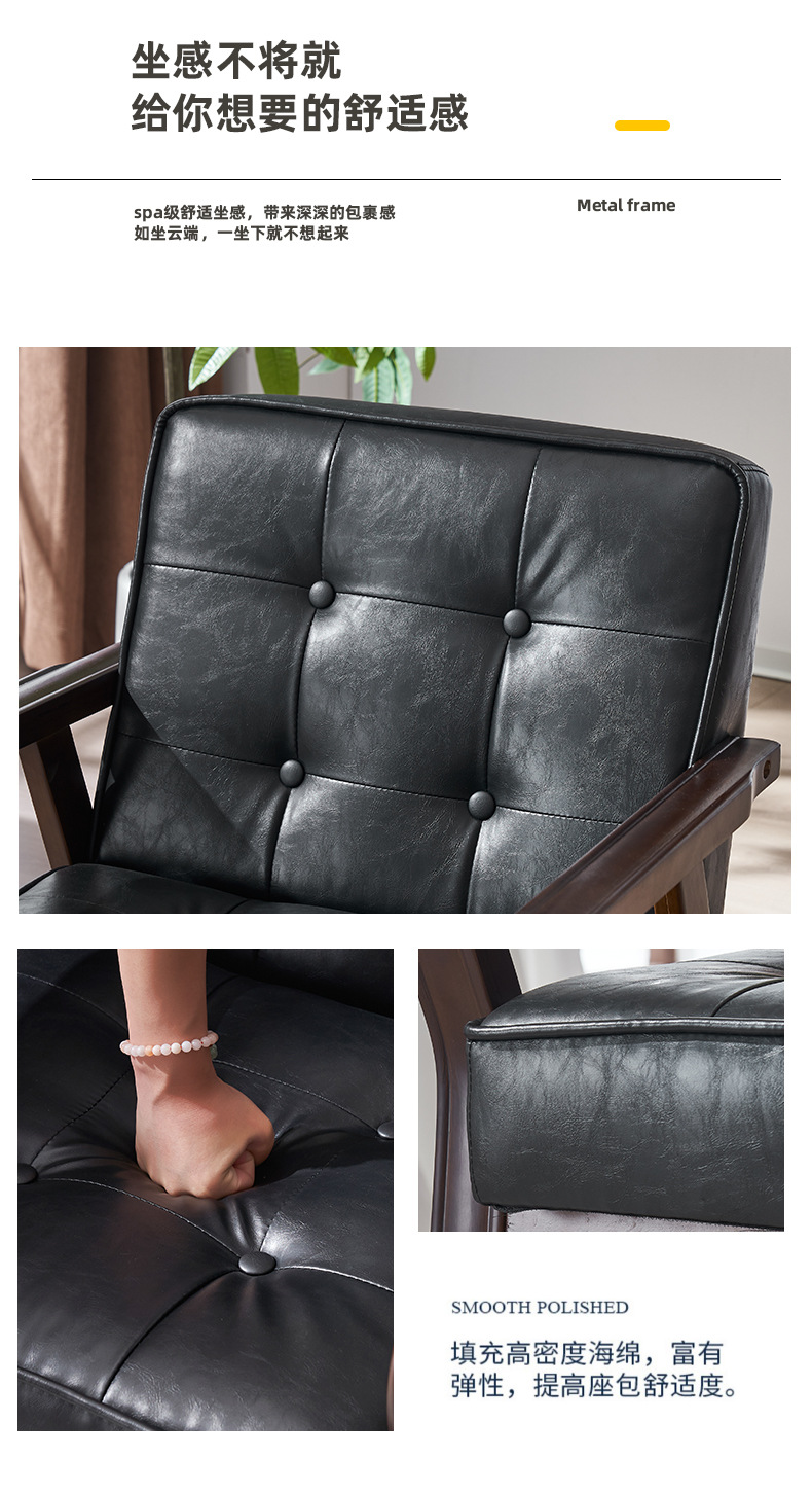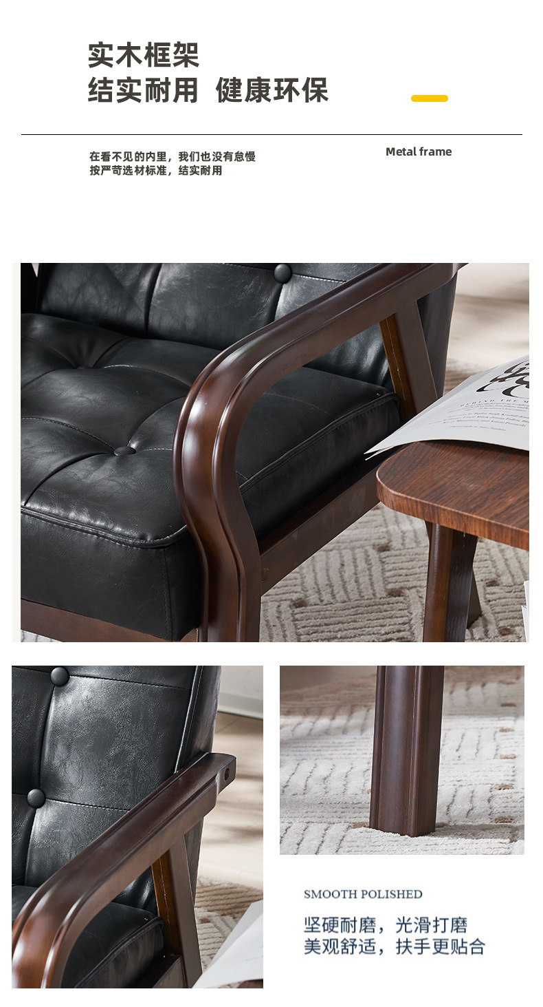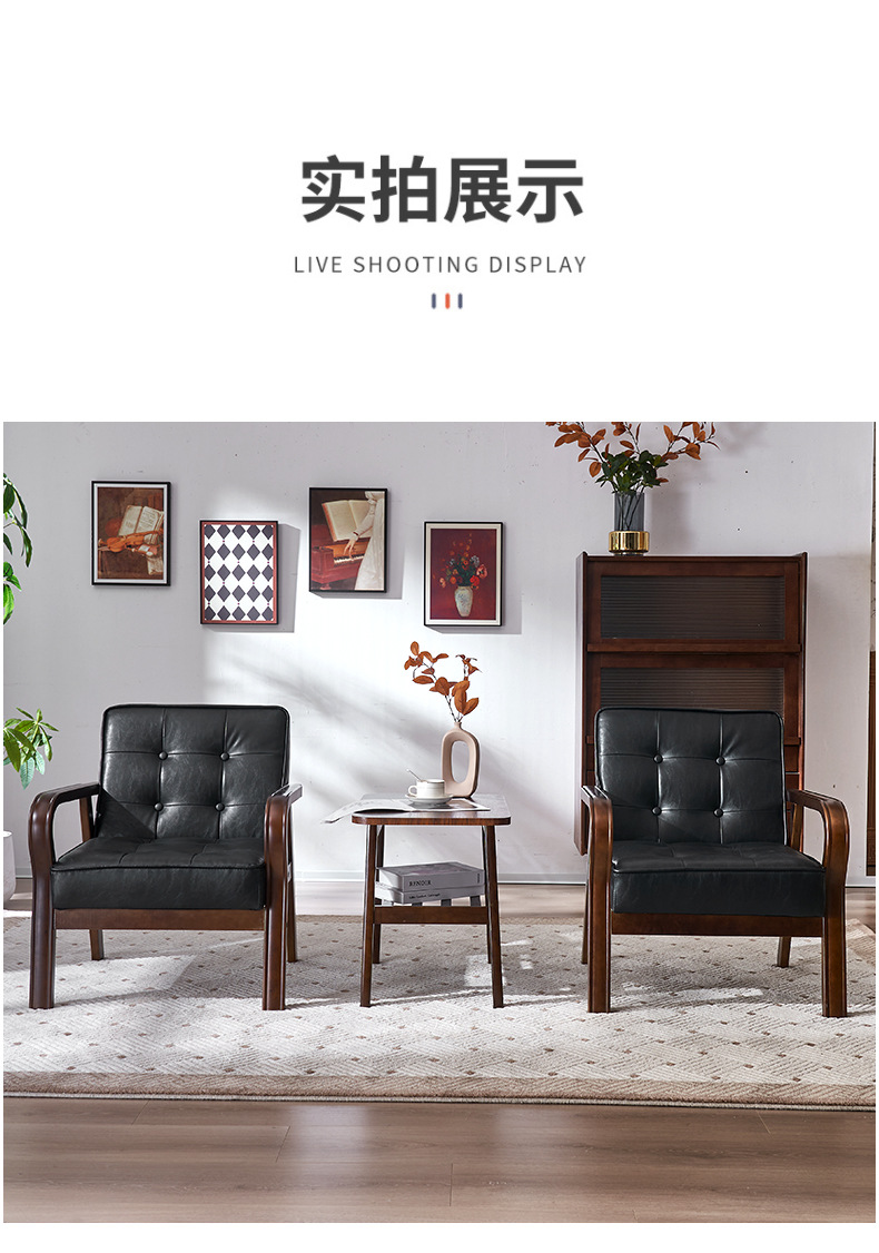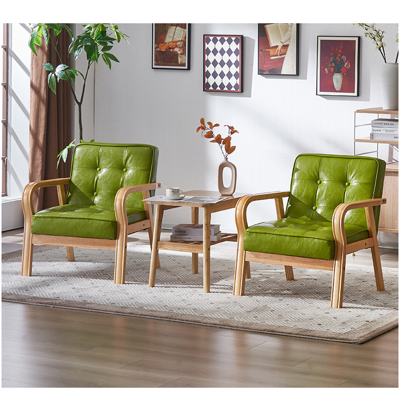 가죽 예술 조합 작은 아파트 카페 레저 단단한 나무 의자 싱글 더블 3 인 회의실 북유럽 간단한 소파 의자