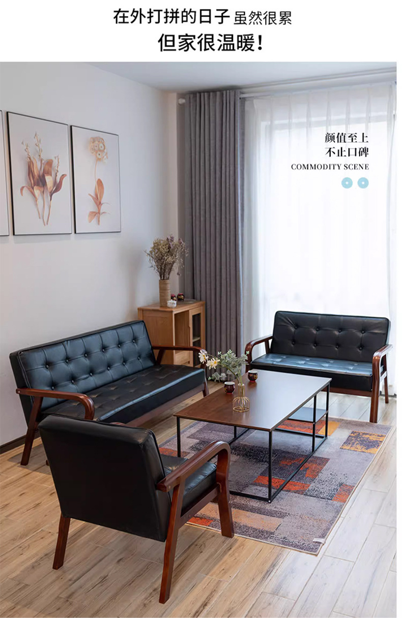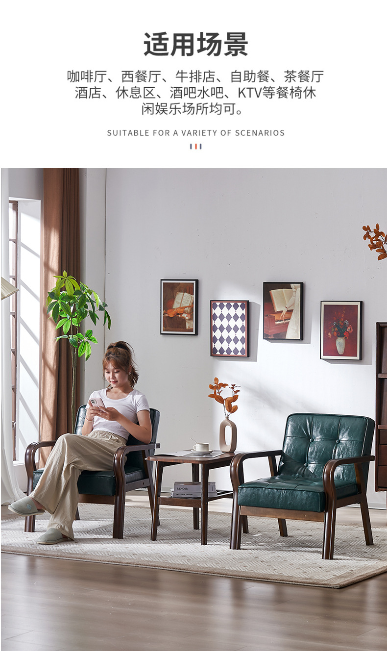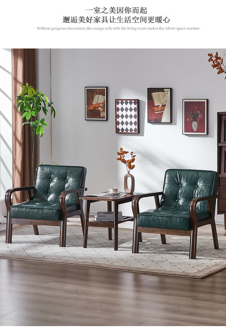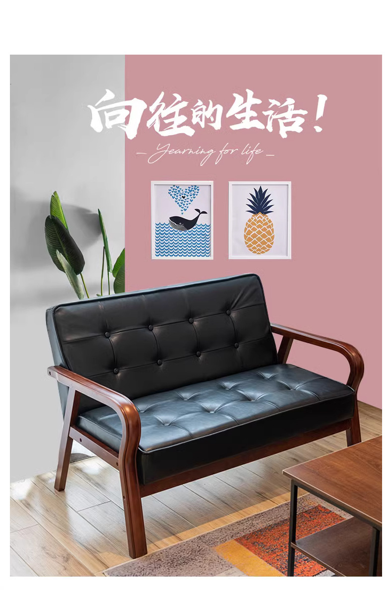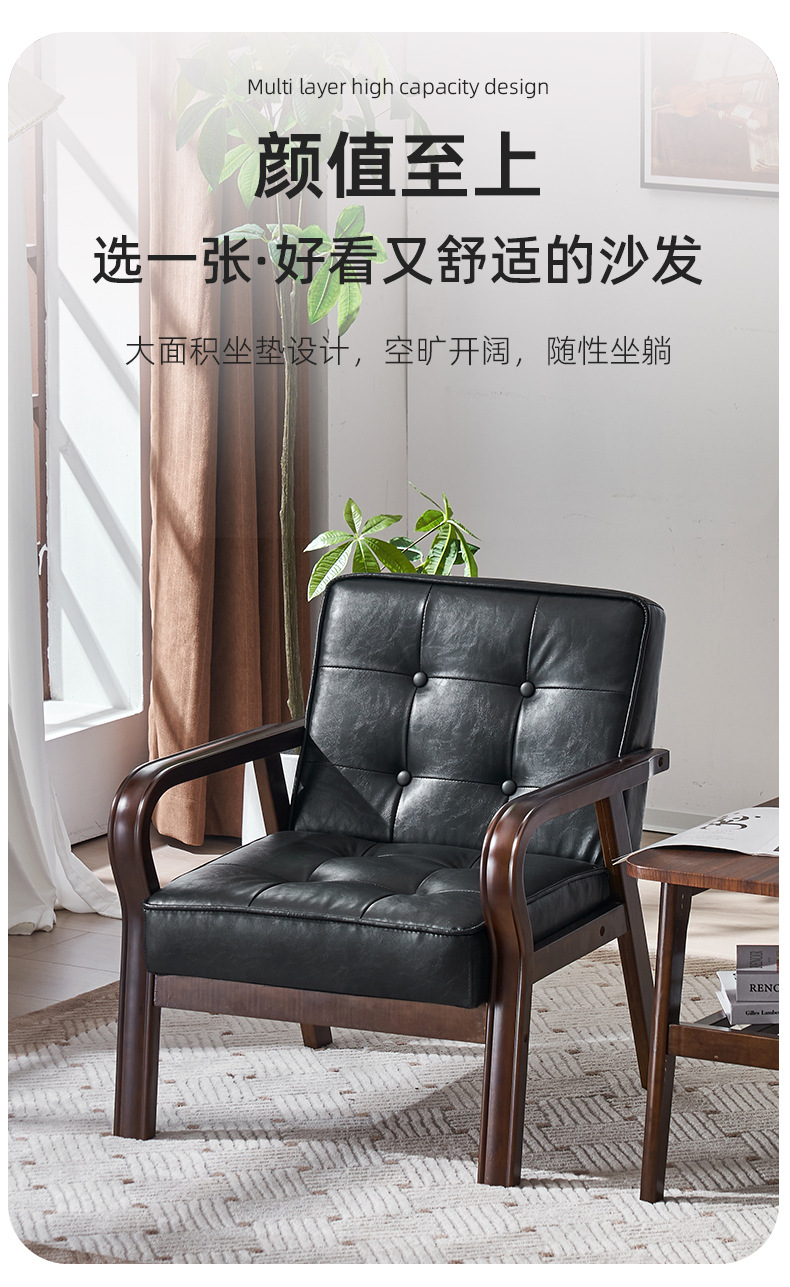 가죽 예술 조합 작은 아파트 카페 레저 단단한 나무 의자 싱글 더블 3 인 회의실 북유럽 간단한 소파 의자