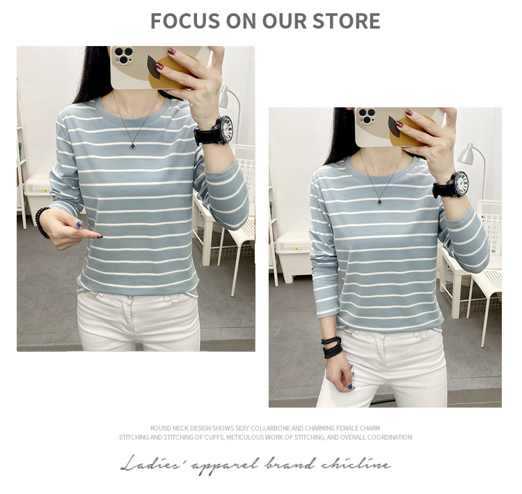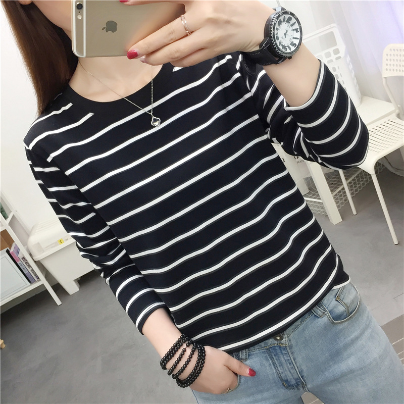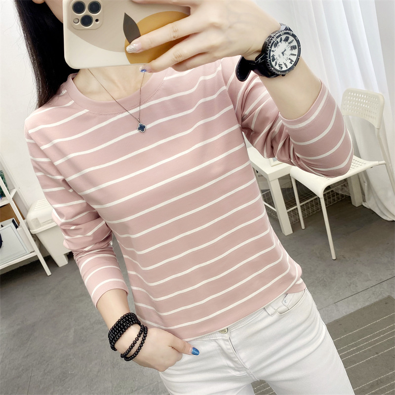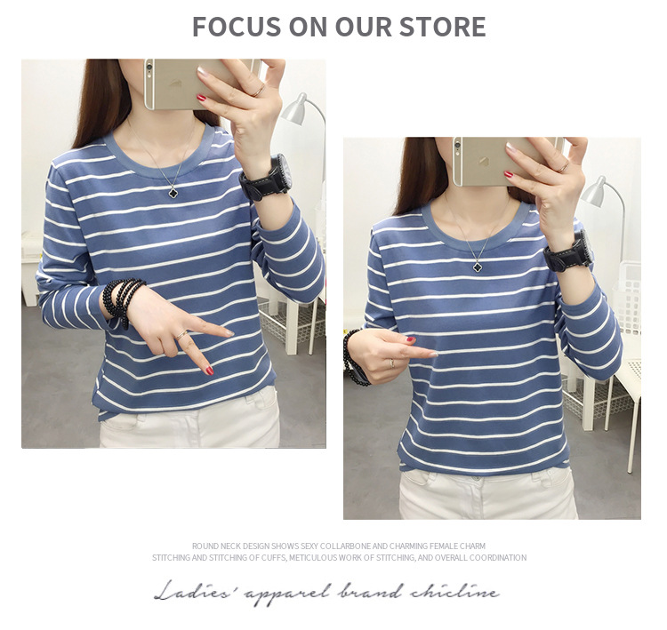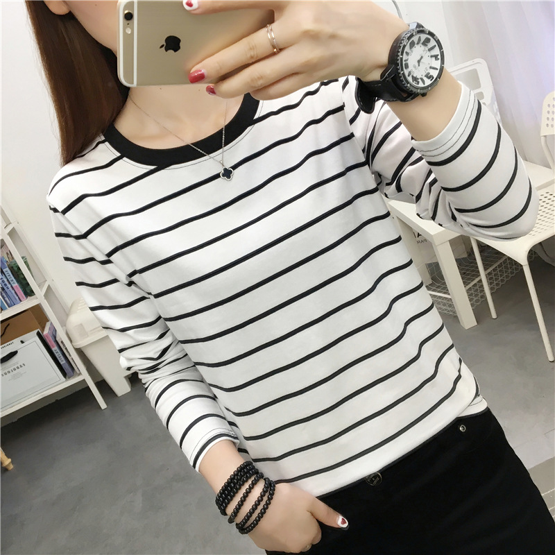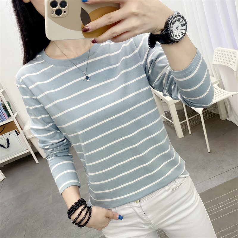 통통녀 엑스트라 라지 사이즈 느슨한 슬리밍 면 긴팔 티셔츠 여성의 가을 배꼽 덮음 베이스 셔츠 웨스턴 스타일 탑
