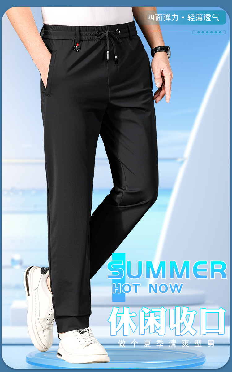 여름용 얇은 아이스 실크 스포츠 팬츠 남성용 조거 팬츠 봄용 남성 캐주얼 팬츠 루즈핏 시원한 속건 팬츠 82