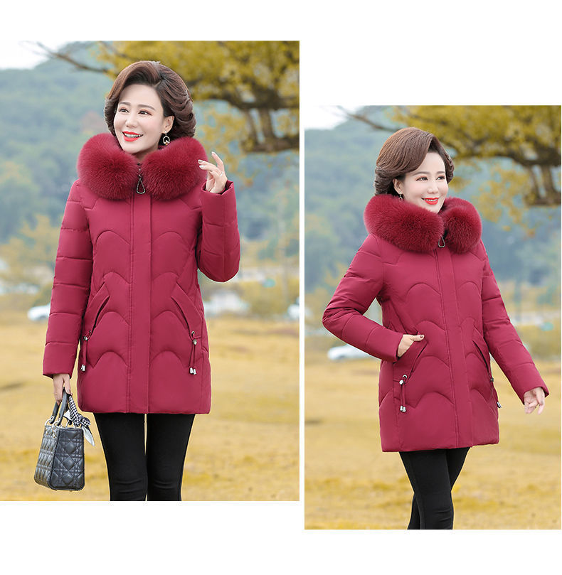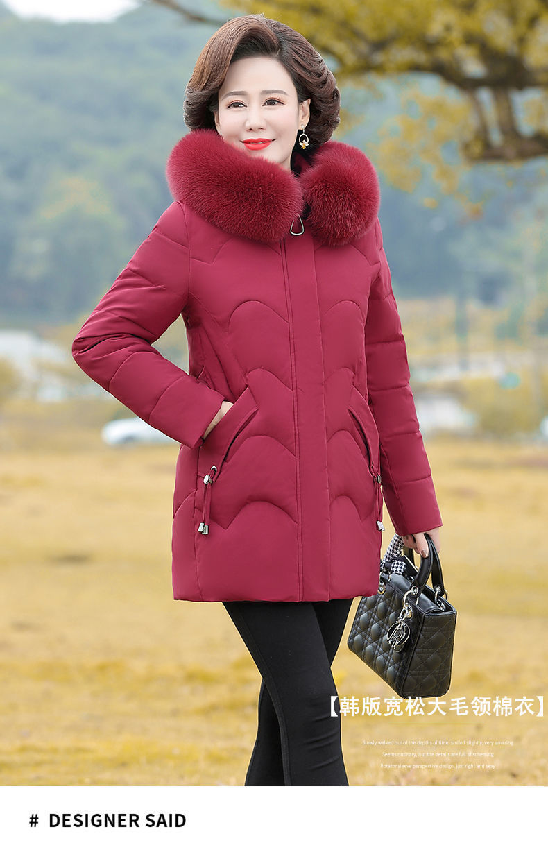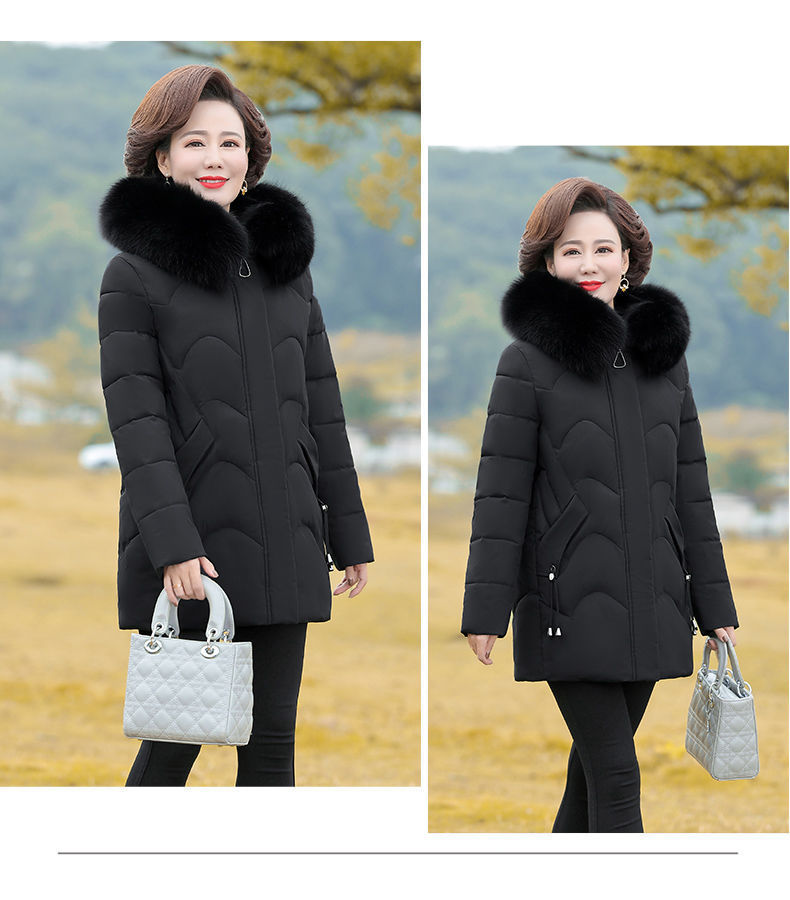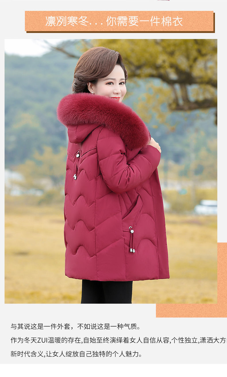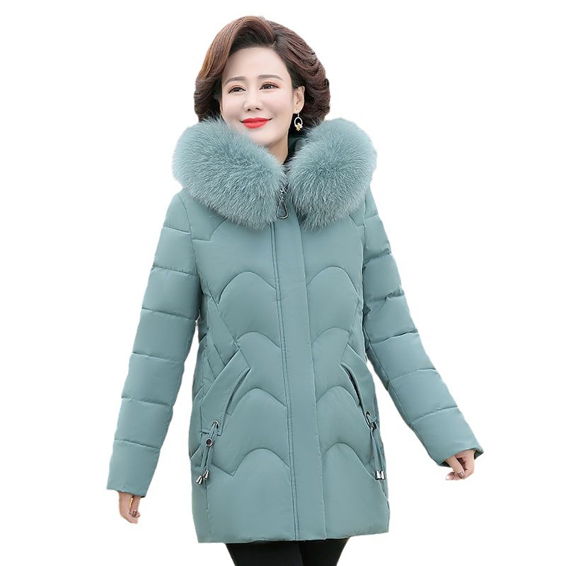 엄마 다운 코튼 코트 중간 길이 코튼 코트 2025 새로운 대형 중년 및 노인 여성 겨울 코튼 코트