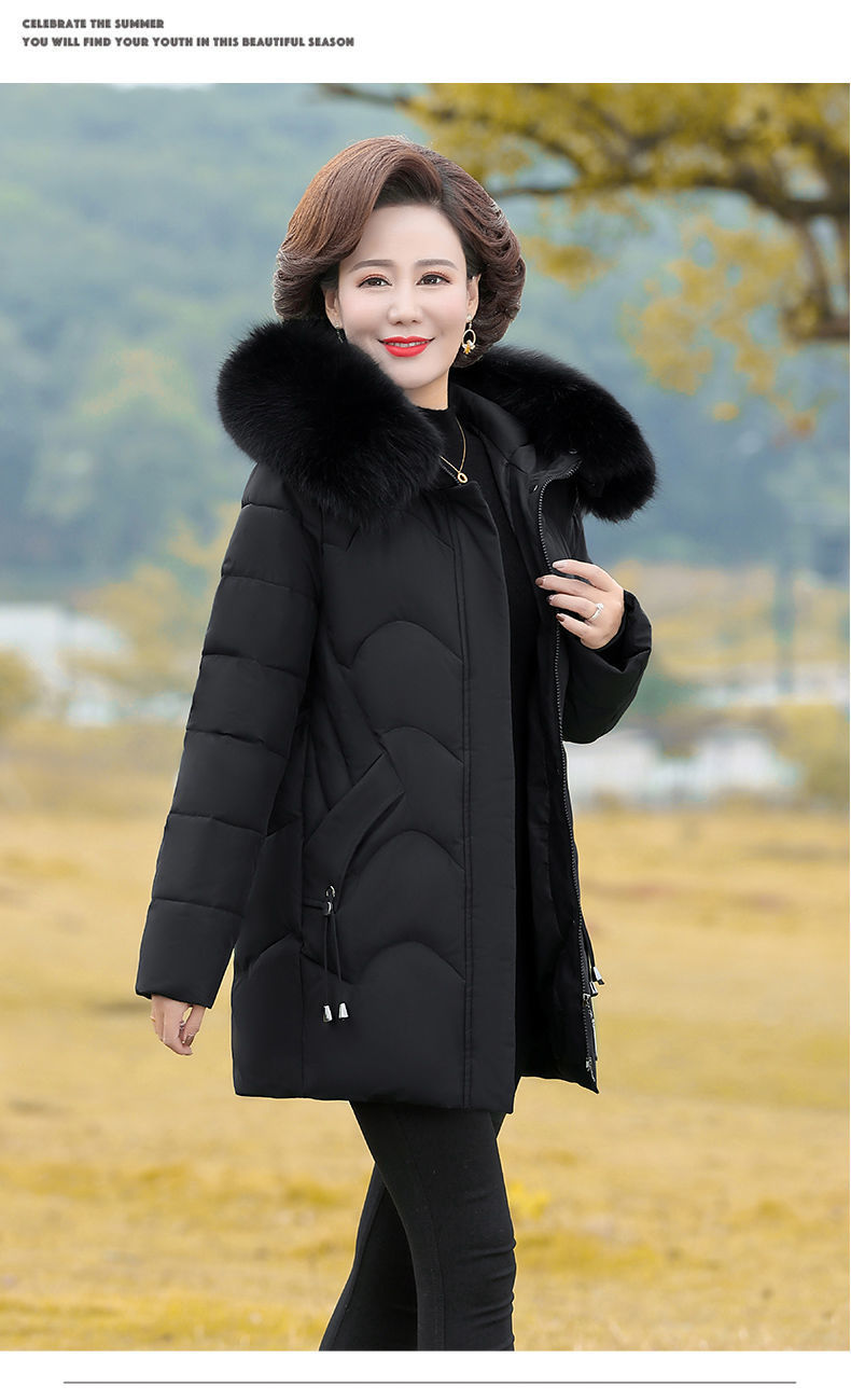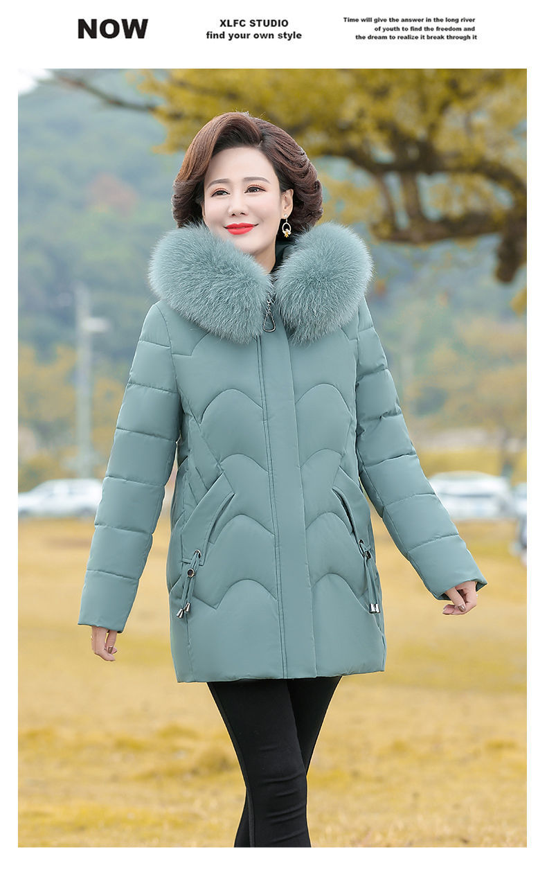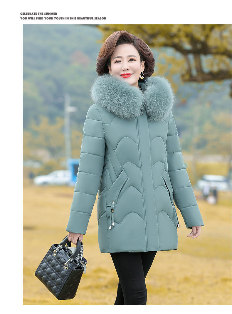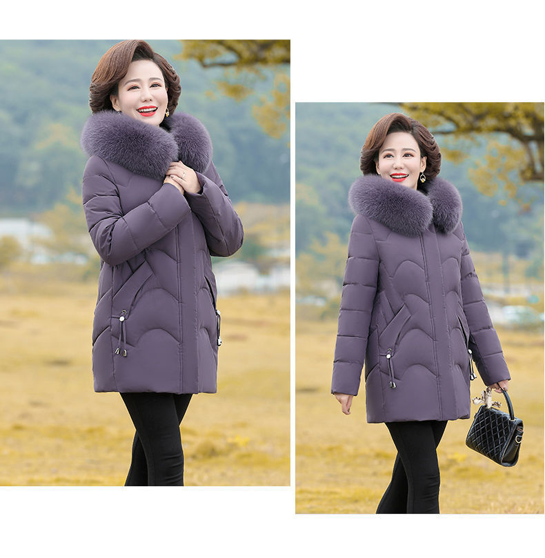 엄마 다운 코튼 코트 중간 길이 코튼 코트 2025 새로운 대형 중년 및 노인 여성 겨울 코튼 코트