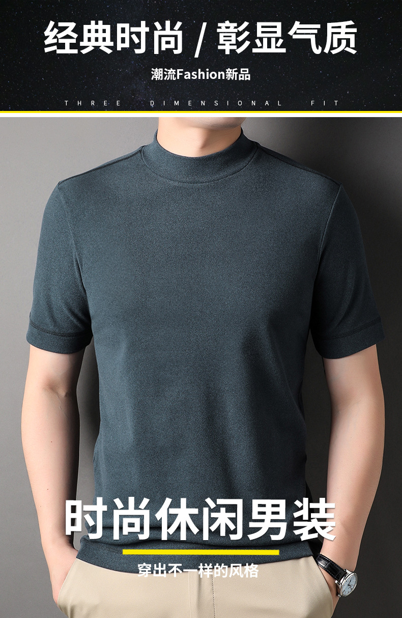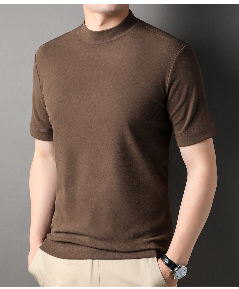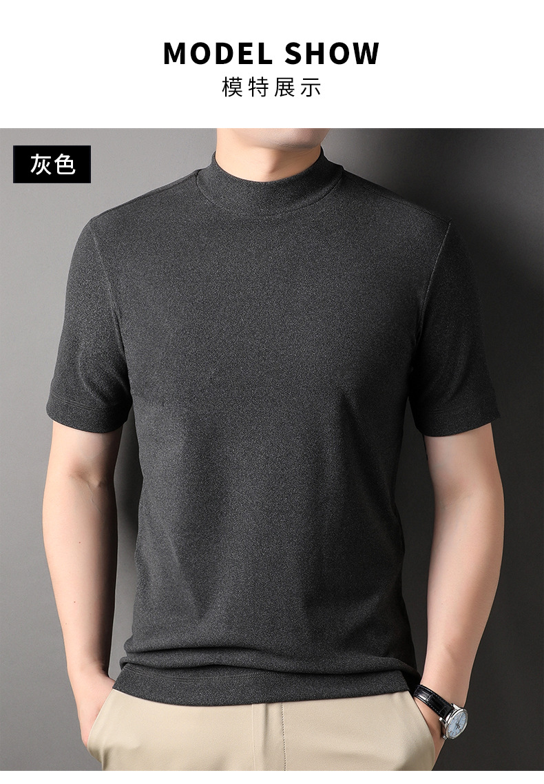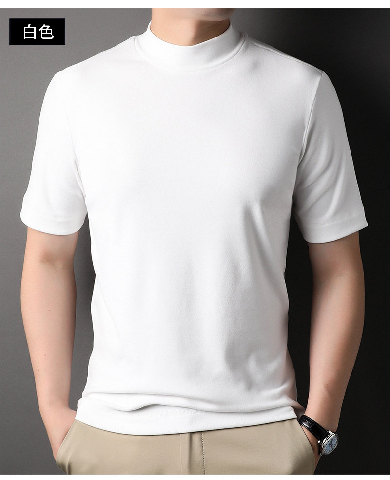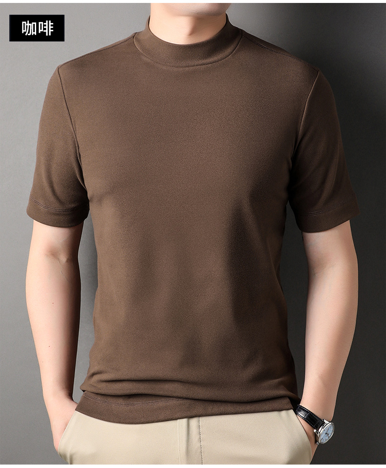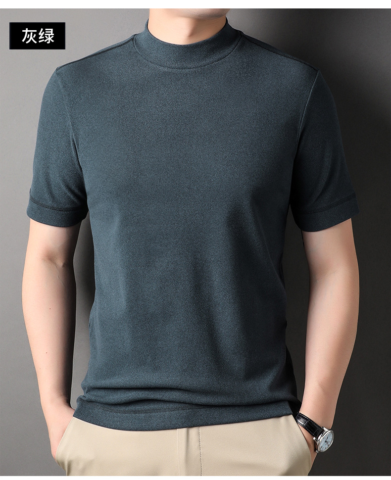 하프 하이 칼라 벨벳 반팔 티셔츠 남성용 트렌디 2023 봄과 가을 새로운 반팔 중년 캐주얼 솔리드 컬러 남성용 베이스 셔츠