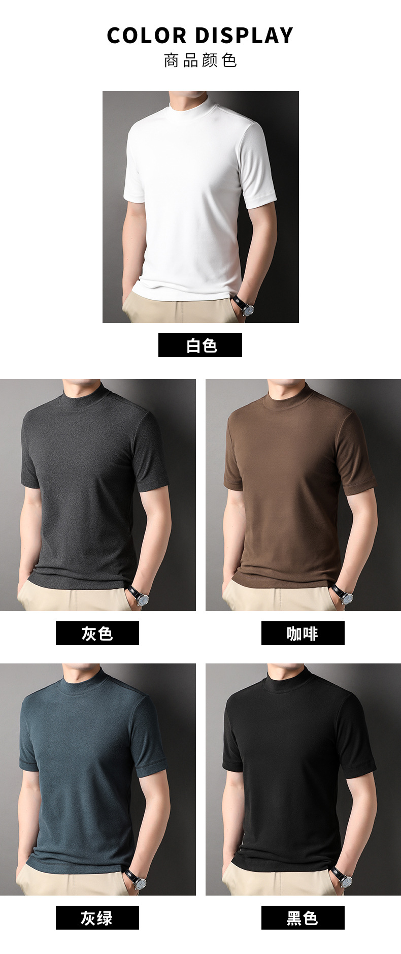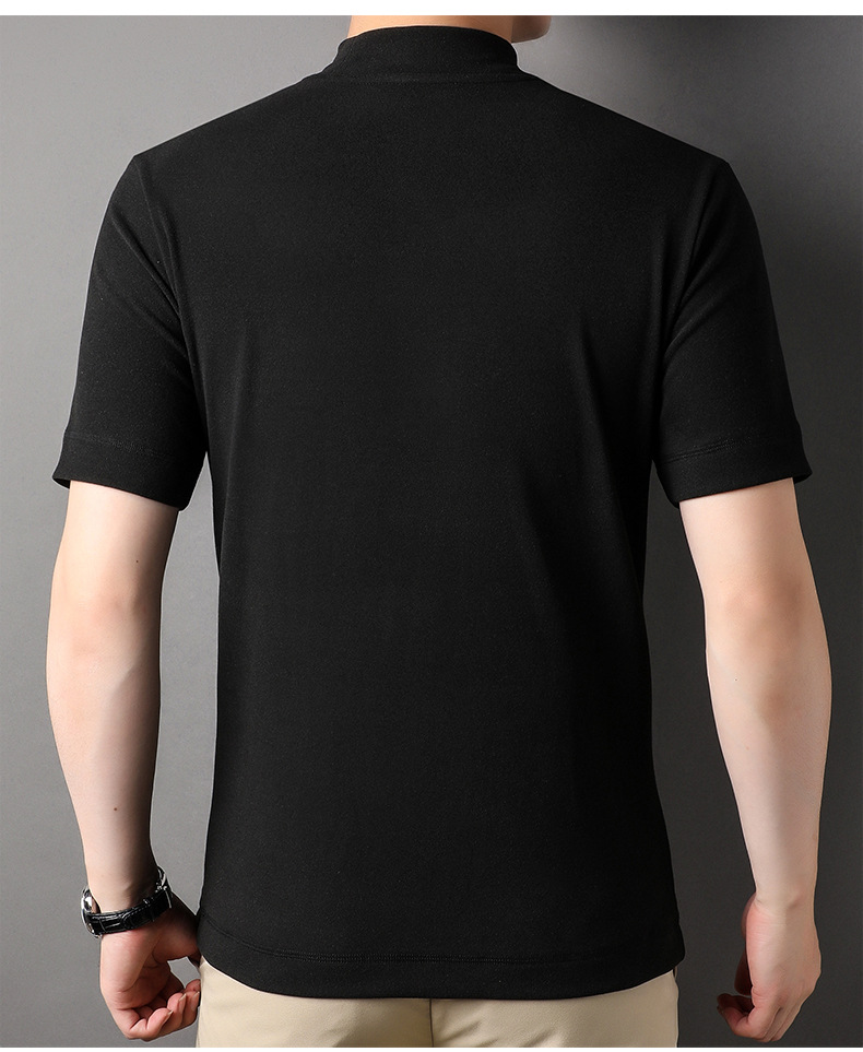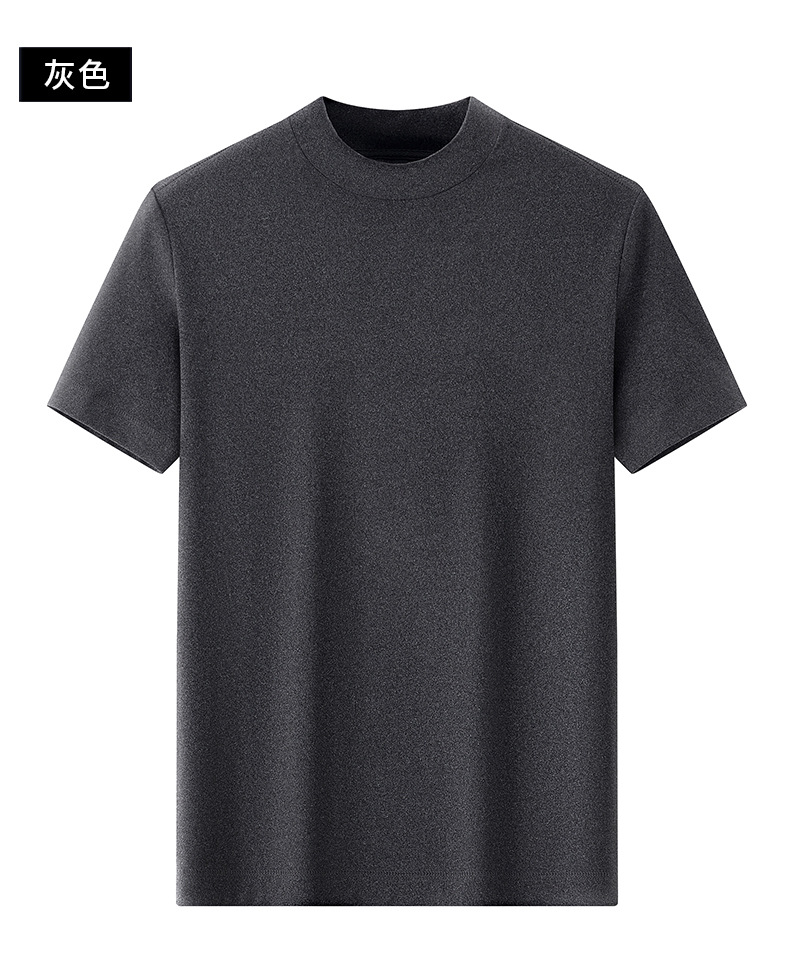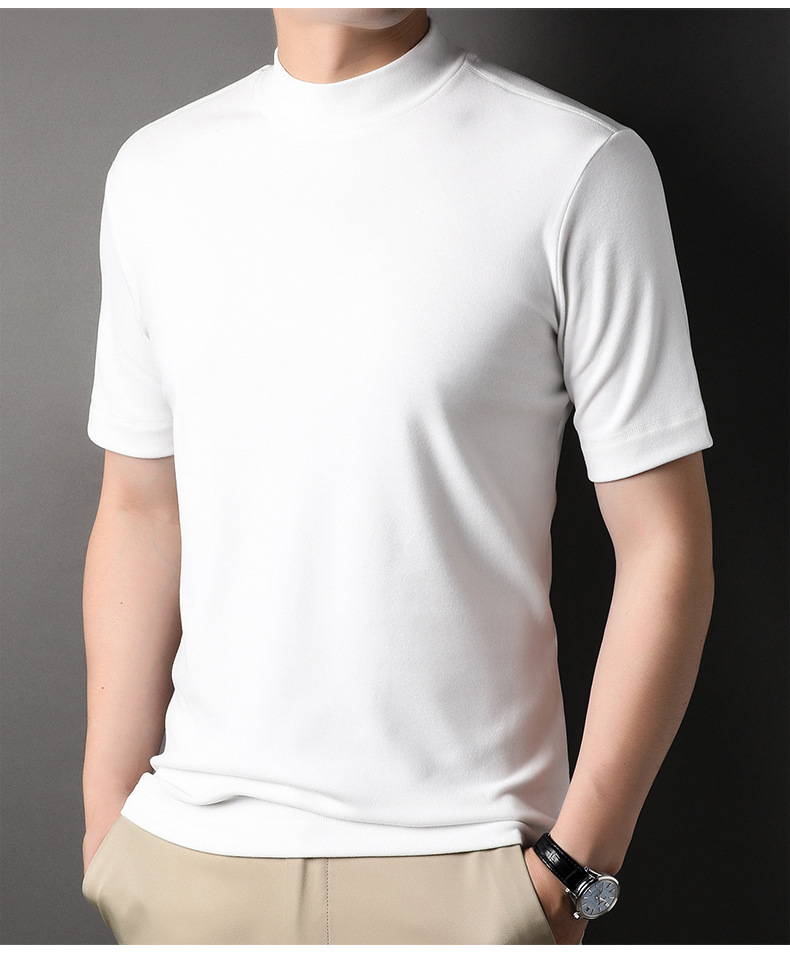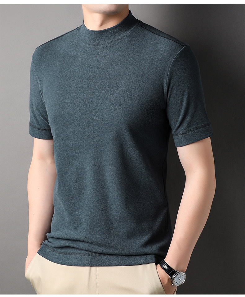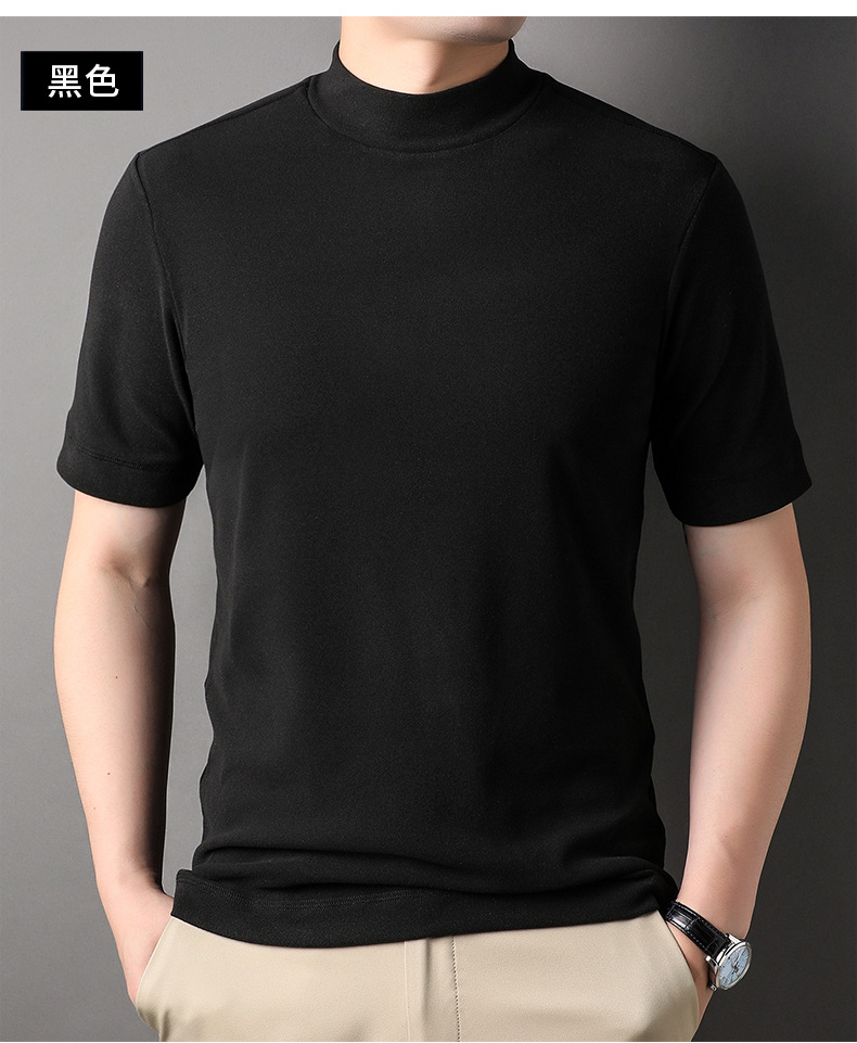 하프 하이 칼라 벨벳 반팔 티셔츠 남성용 트렌디 2023 봄과 가을 새로운 반팔 중년 캐주얼 솔리드 컬러 남성용 베이스 셔츠