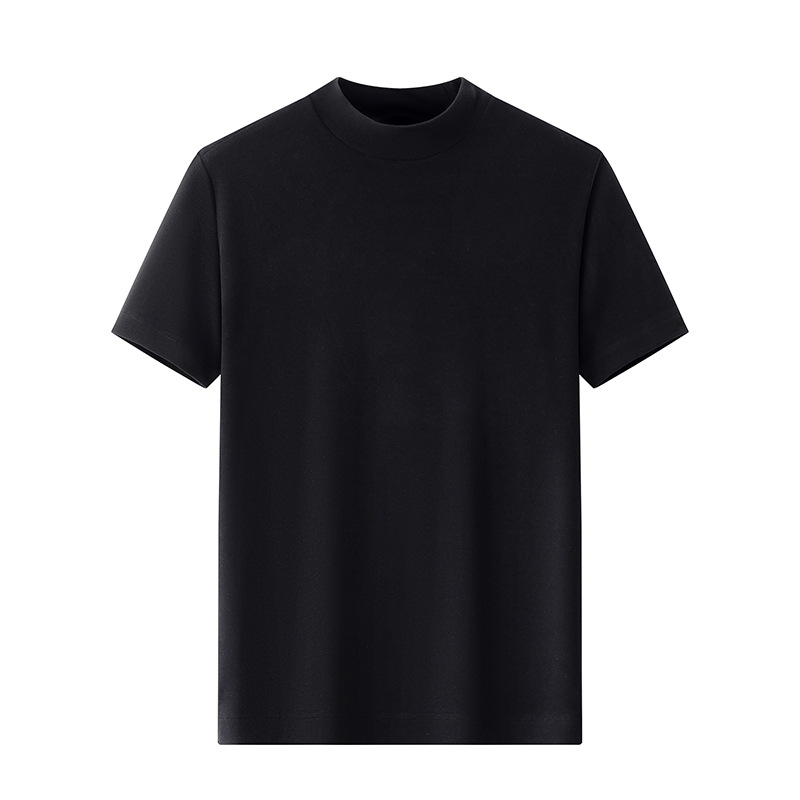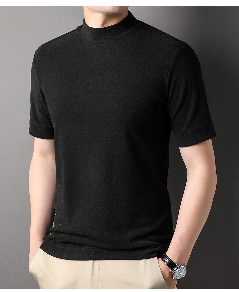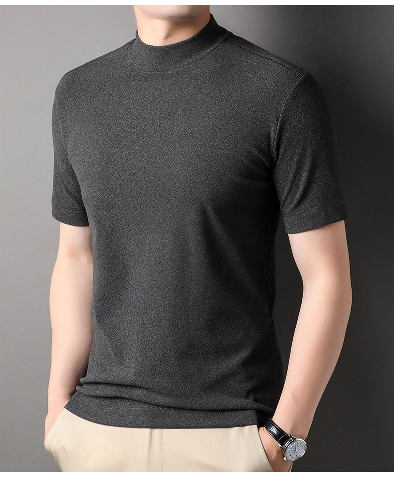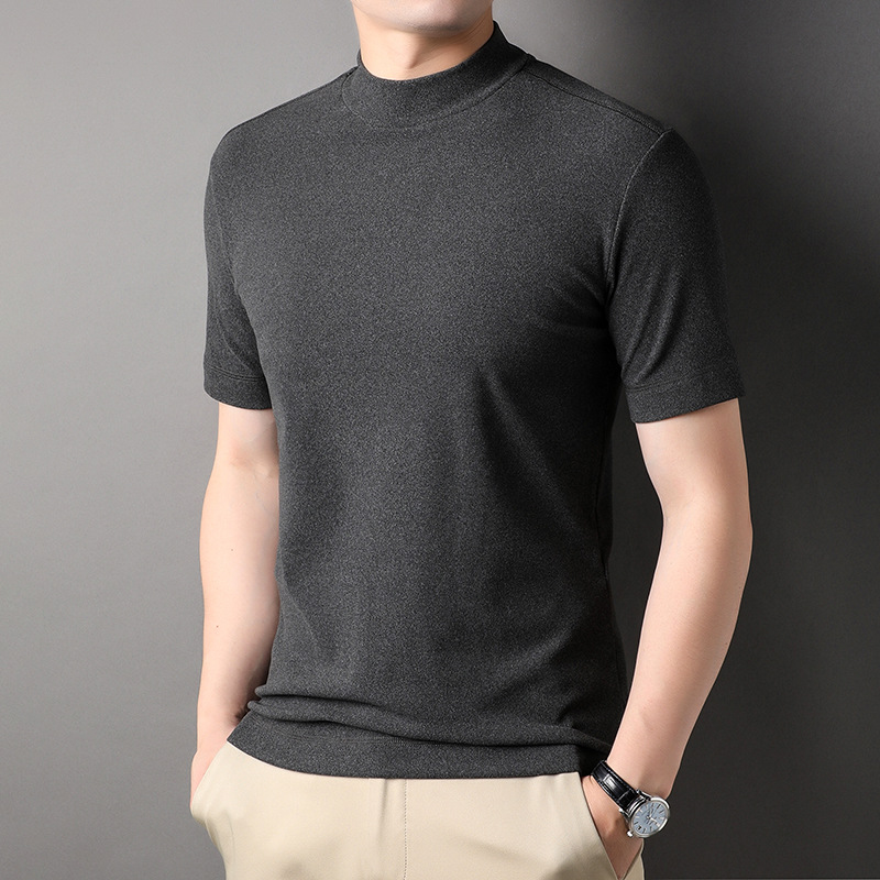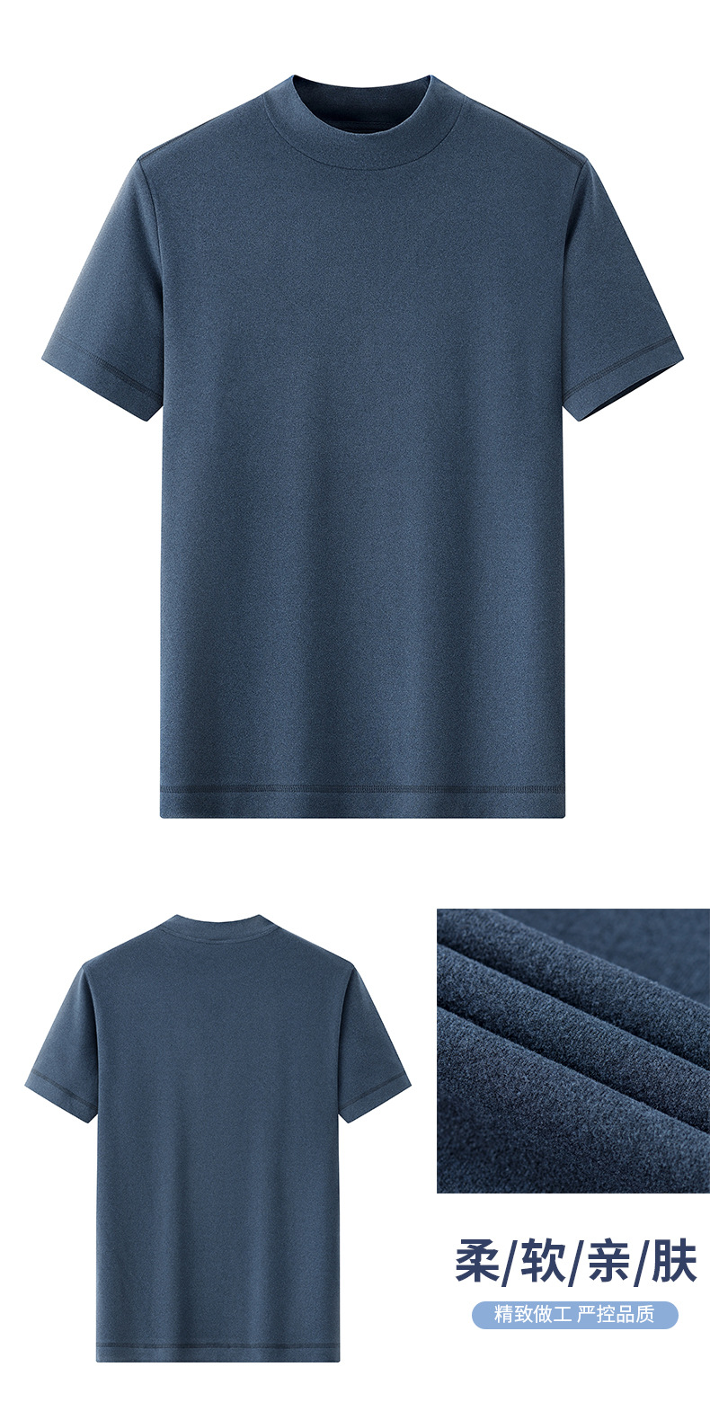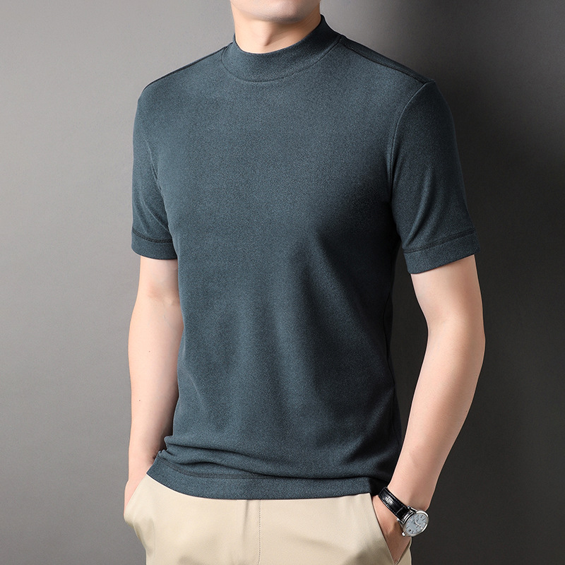 하프 하이 칼라 벨벳 반팔 티셔츠 남성용 트렌디 2023 봄과 가을 새로운 반팔 중년 캐주얼 솔리드 컬러 남성용 베이스 셔츠