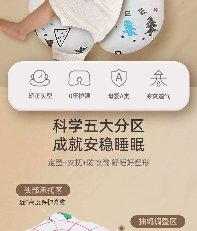 어린이 베개 모양의 베개 머리 유형 신생아 진정 및 놀라운 수면 보안 아티팩트 수정