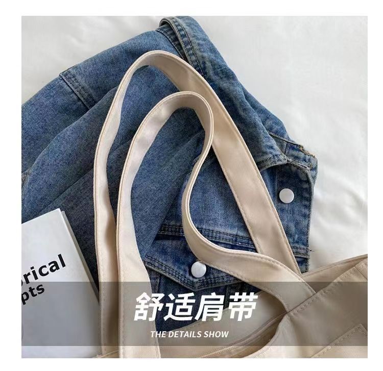 일본과 한국 통근용 대용량 휴대용 캔버스 가방 여성용 2022 싱글 숄더 내구성 캔버스 가방 도시적 심플 스타일