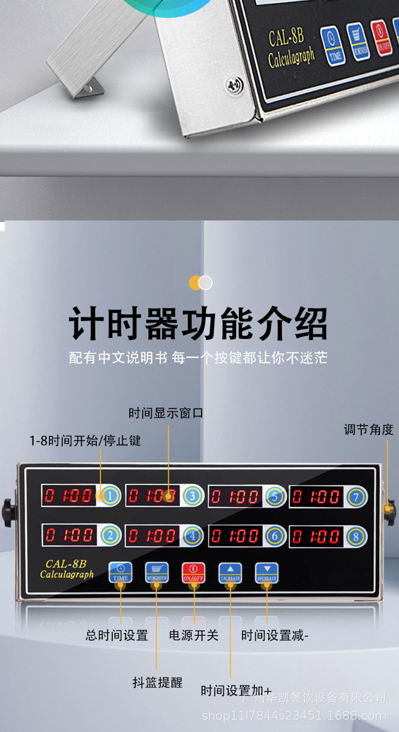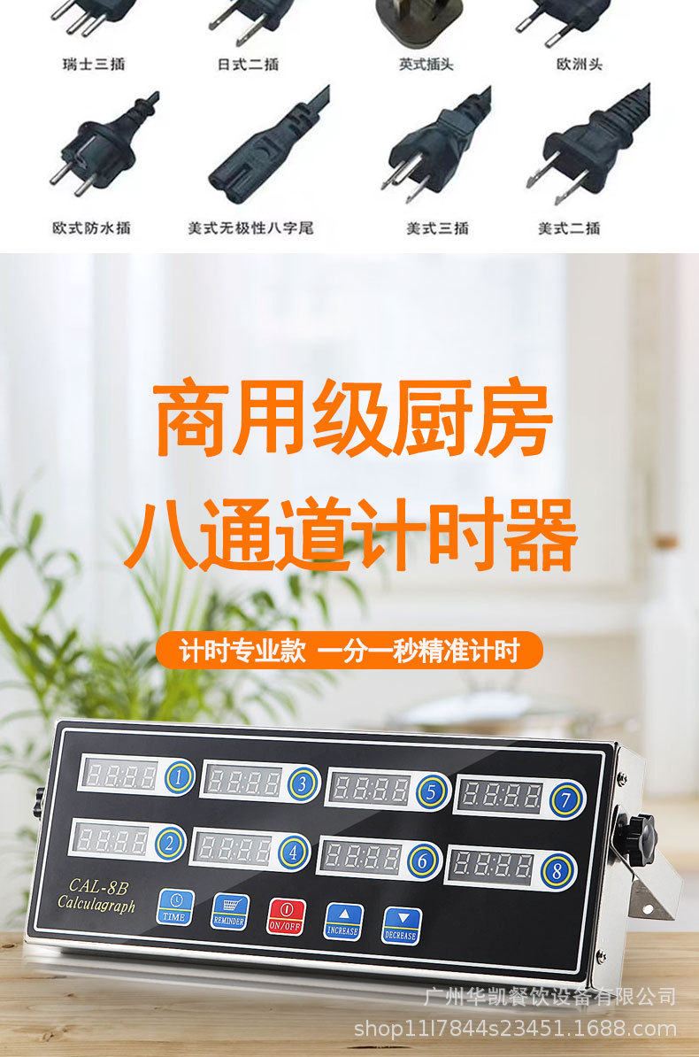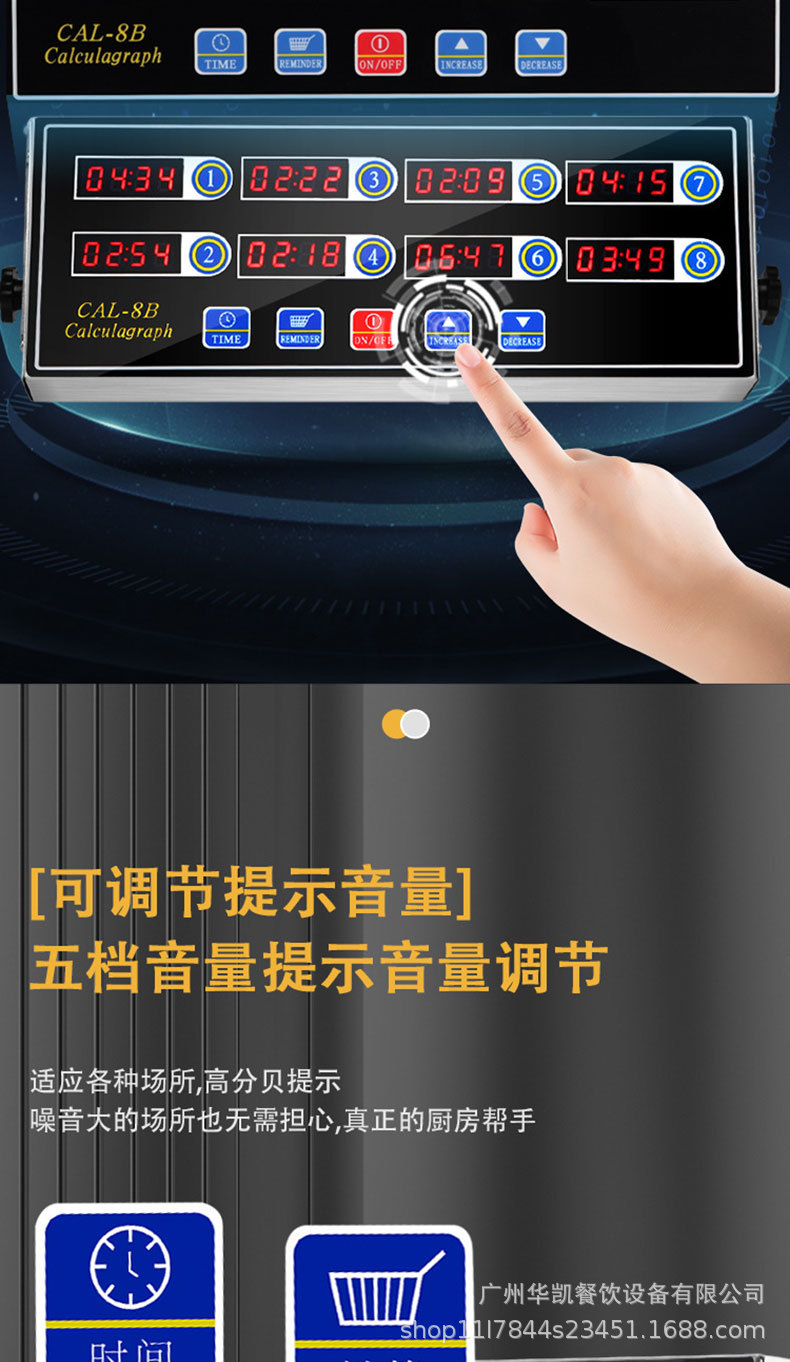 주방 상업용 스테인레스 스틸 디지털 디스플레이 버튼 지능형 블루 8 채널 자동 카운트 다운 타이머 알림 타이머