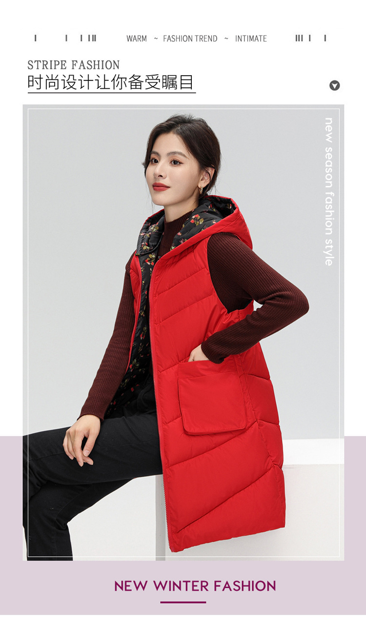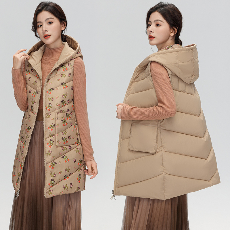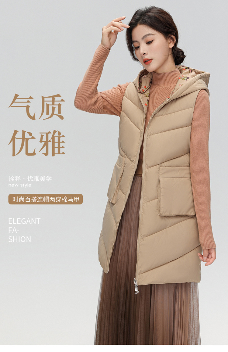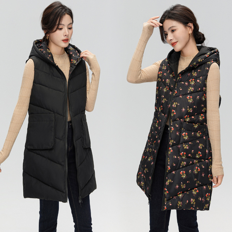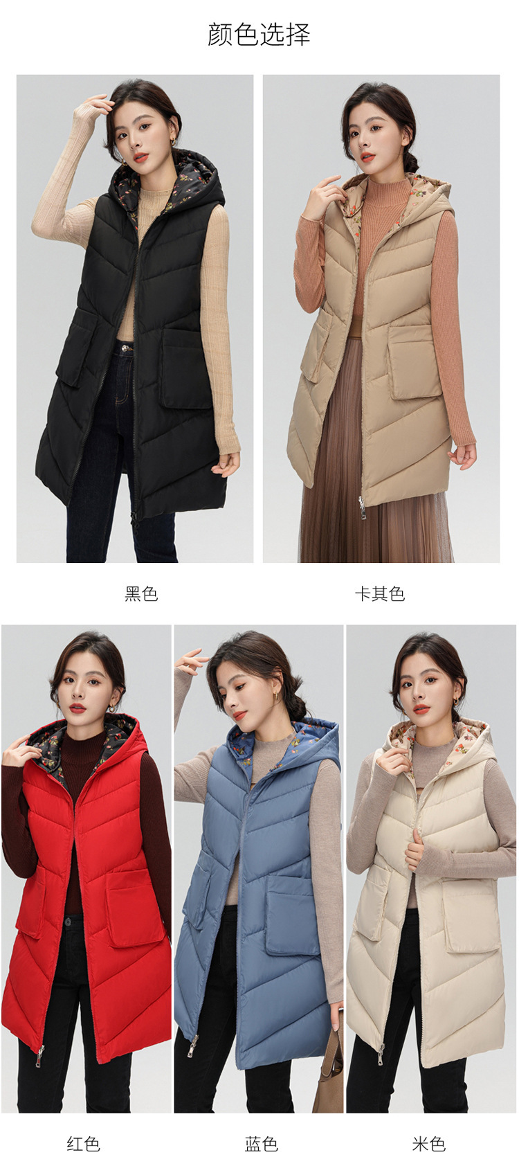 2023 겨울 신상 양복 조끼 여성용 한국식 중간 길이 양면 조끼 올매치 슬림핏 후드 다운 면 패딩 의류