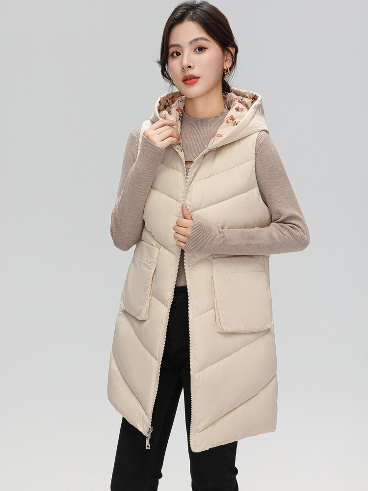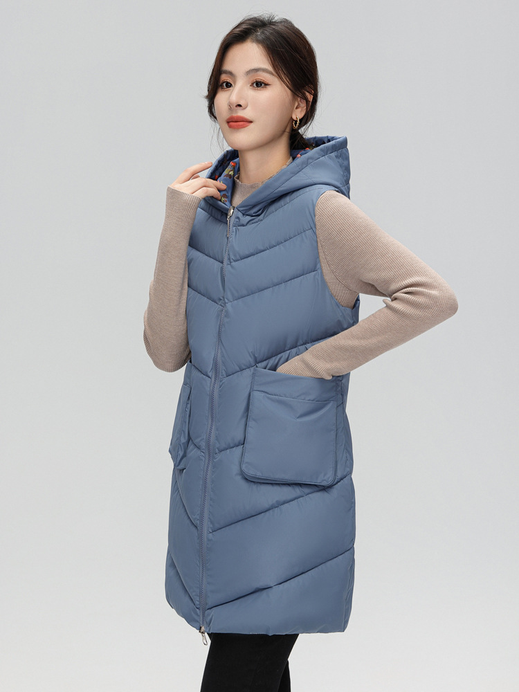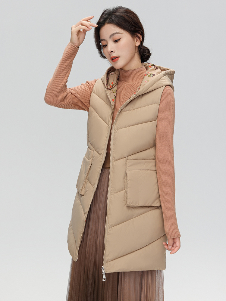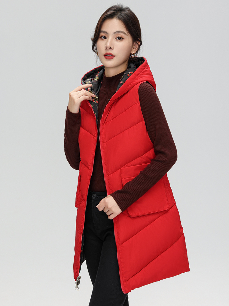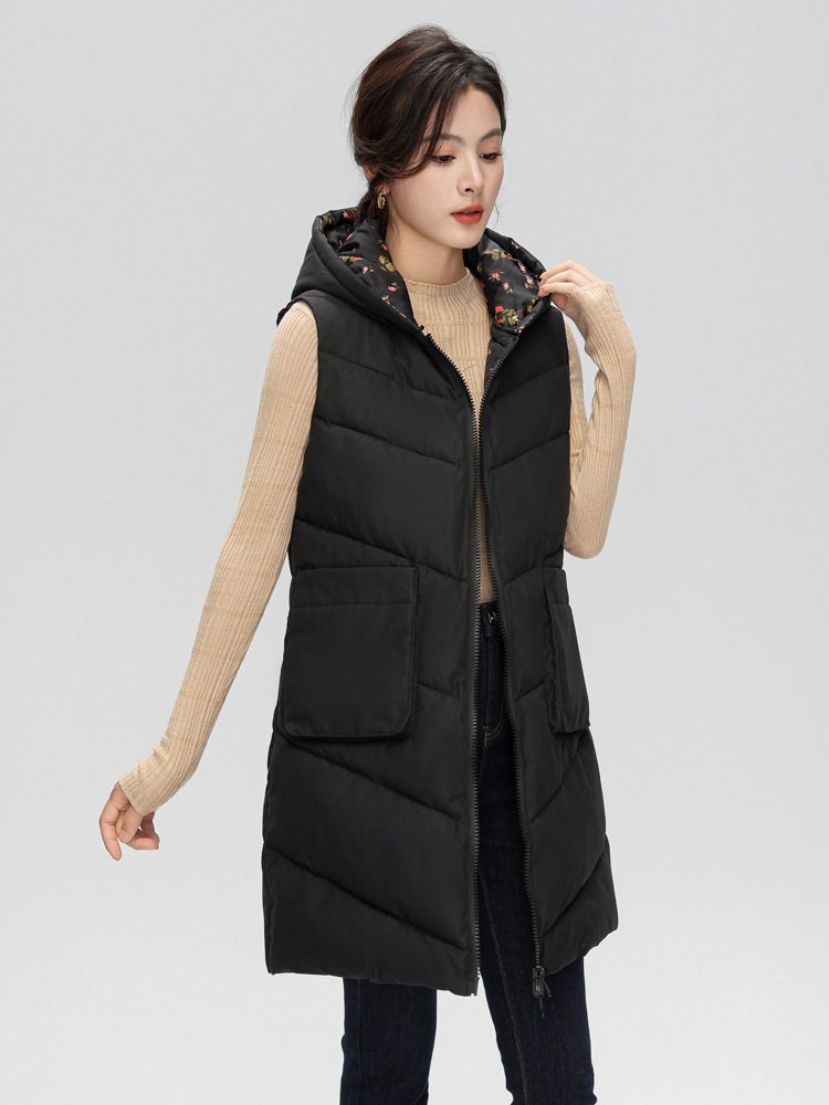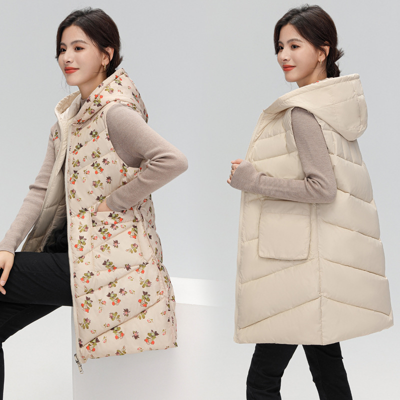 2023 겨울 신상 양복 조끼 여성용 한국식 중간 길이 양면 조끼 올매치 슬림핏 후드 다운 면 패딩 의류
