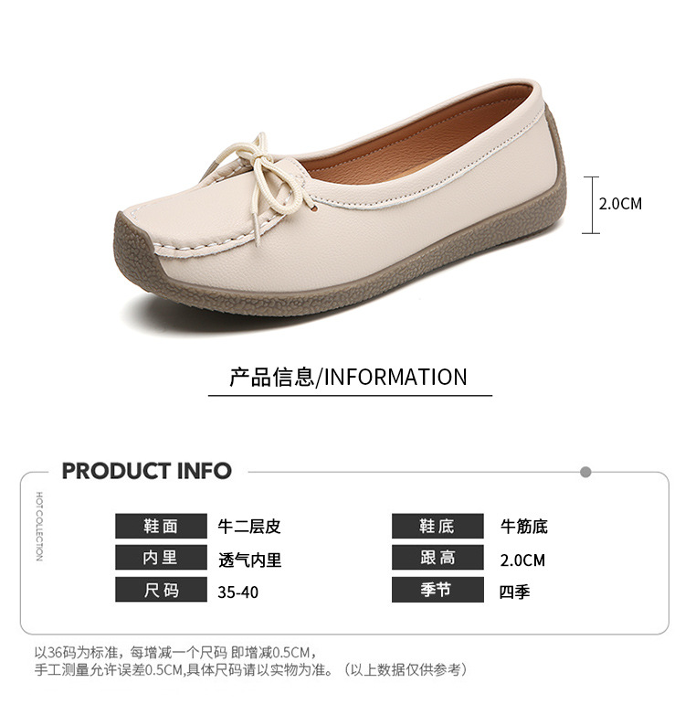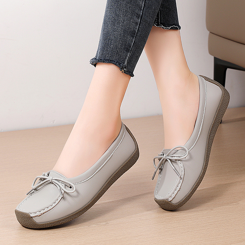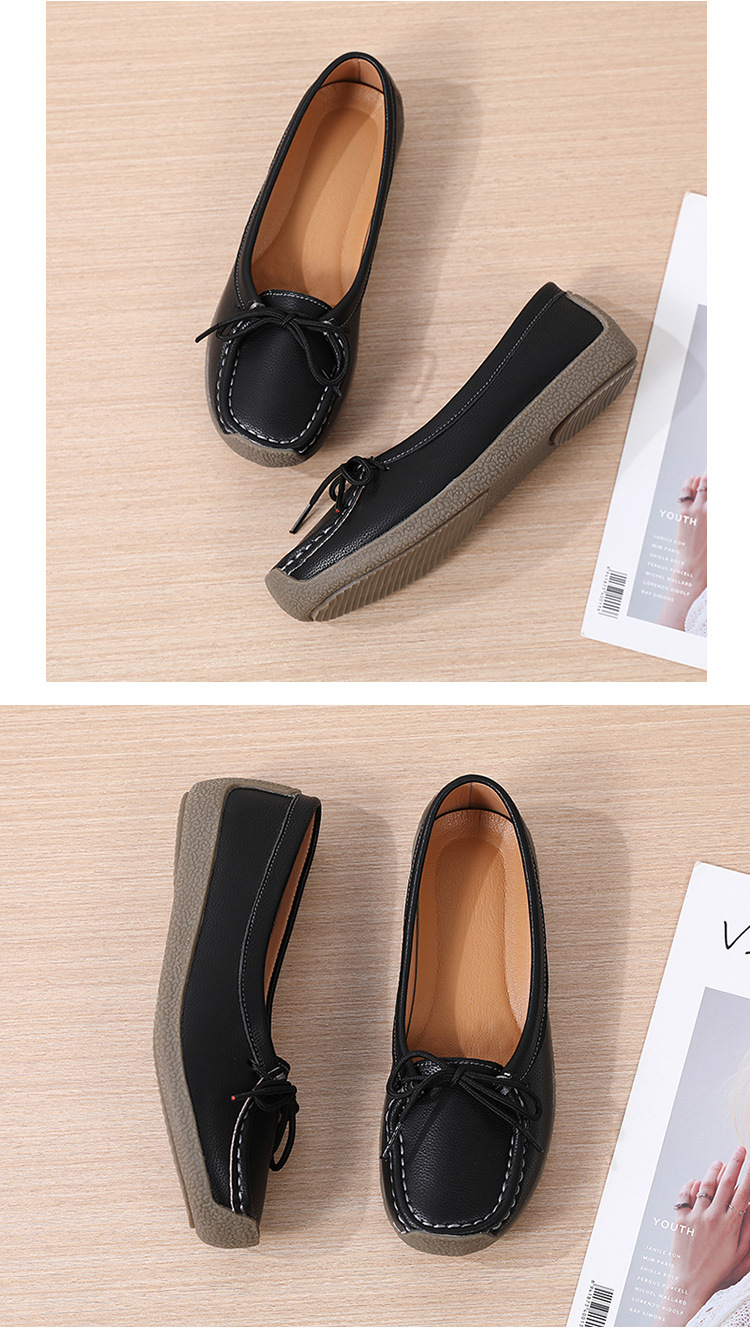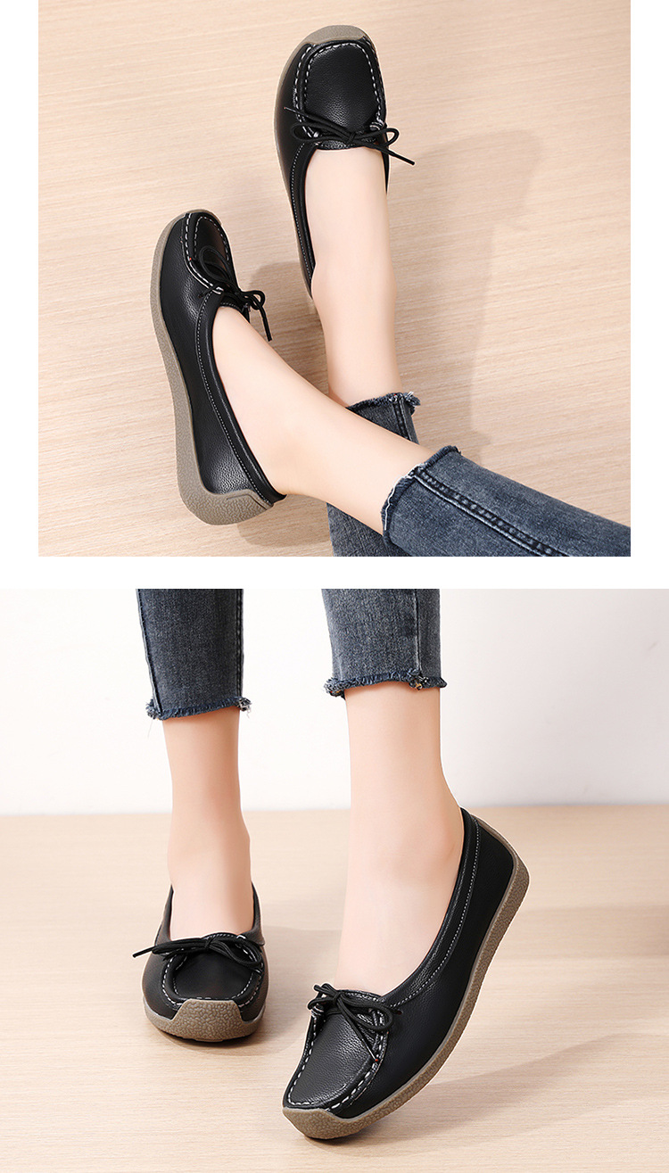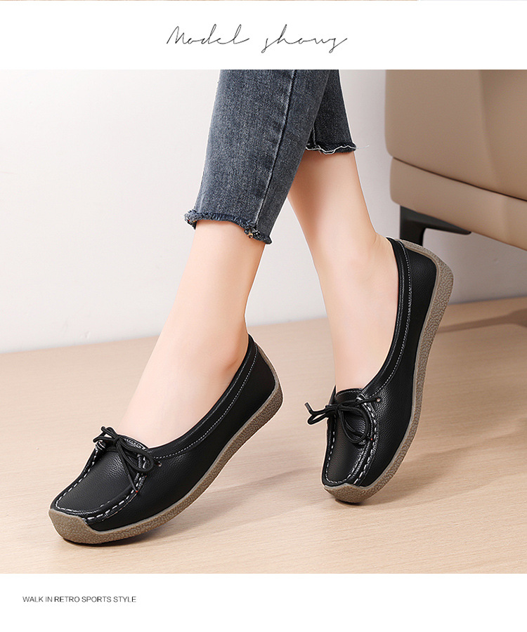 봄 가을 얕은 굽 소가죽 구두 한국 스타일 대형 여성 캐주얼 플랫 슈즈 슬립온 미끄럼 방지 엄마 신발