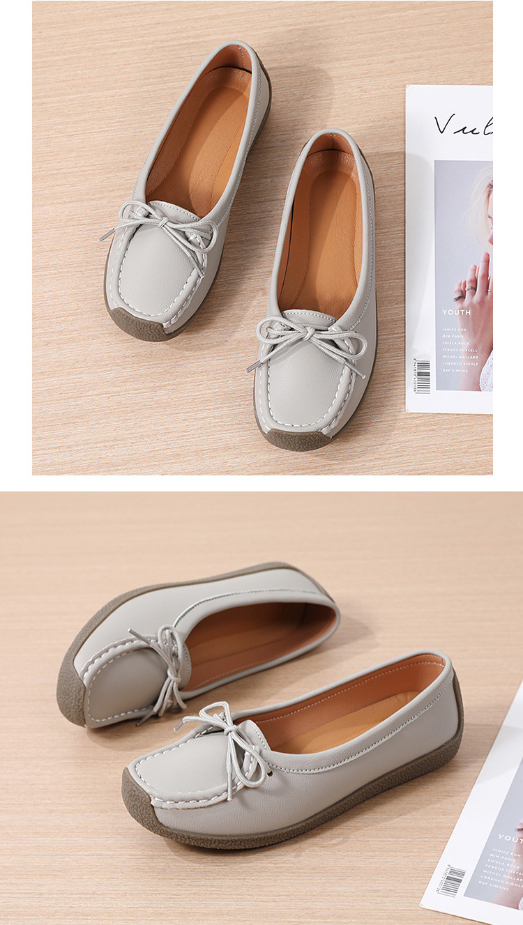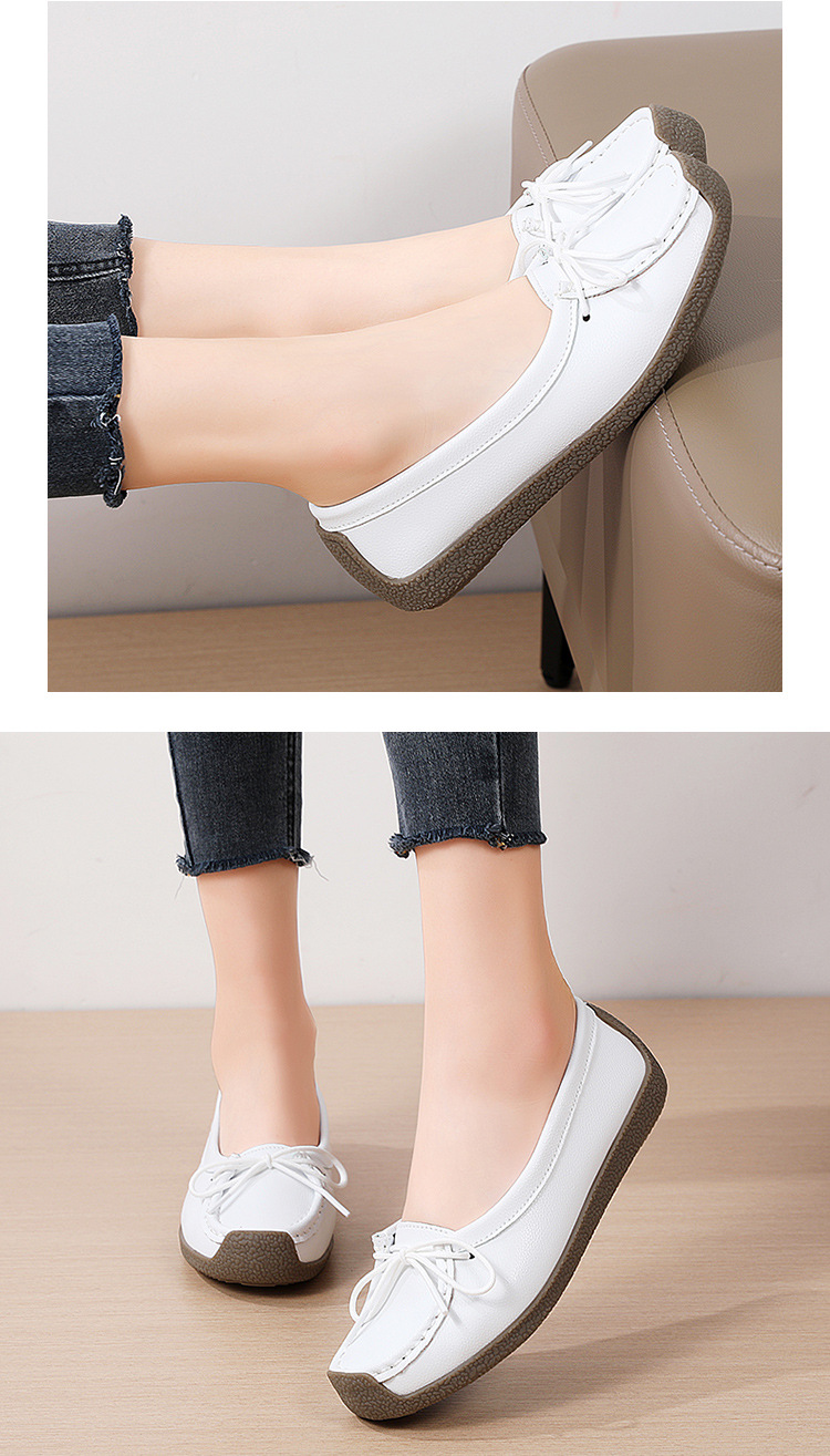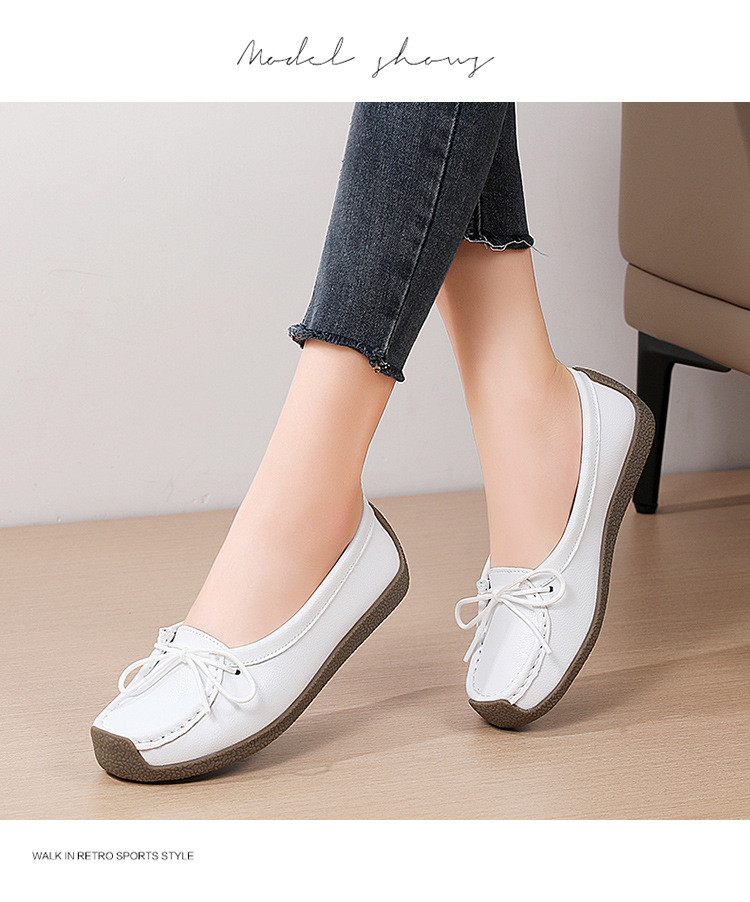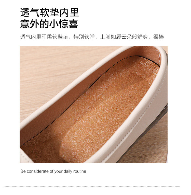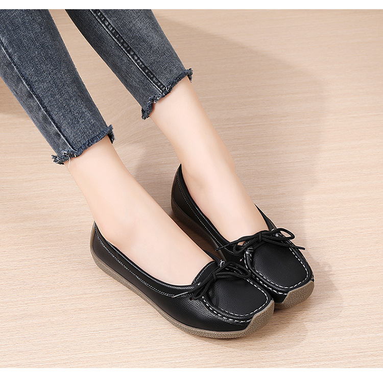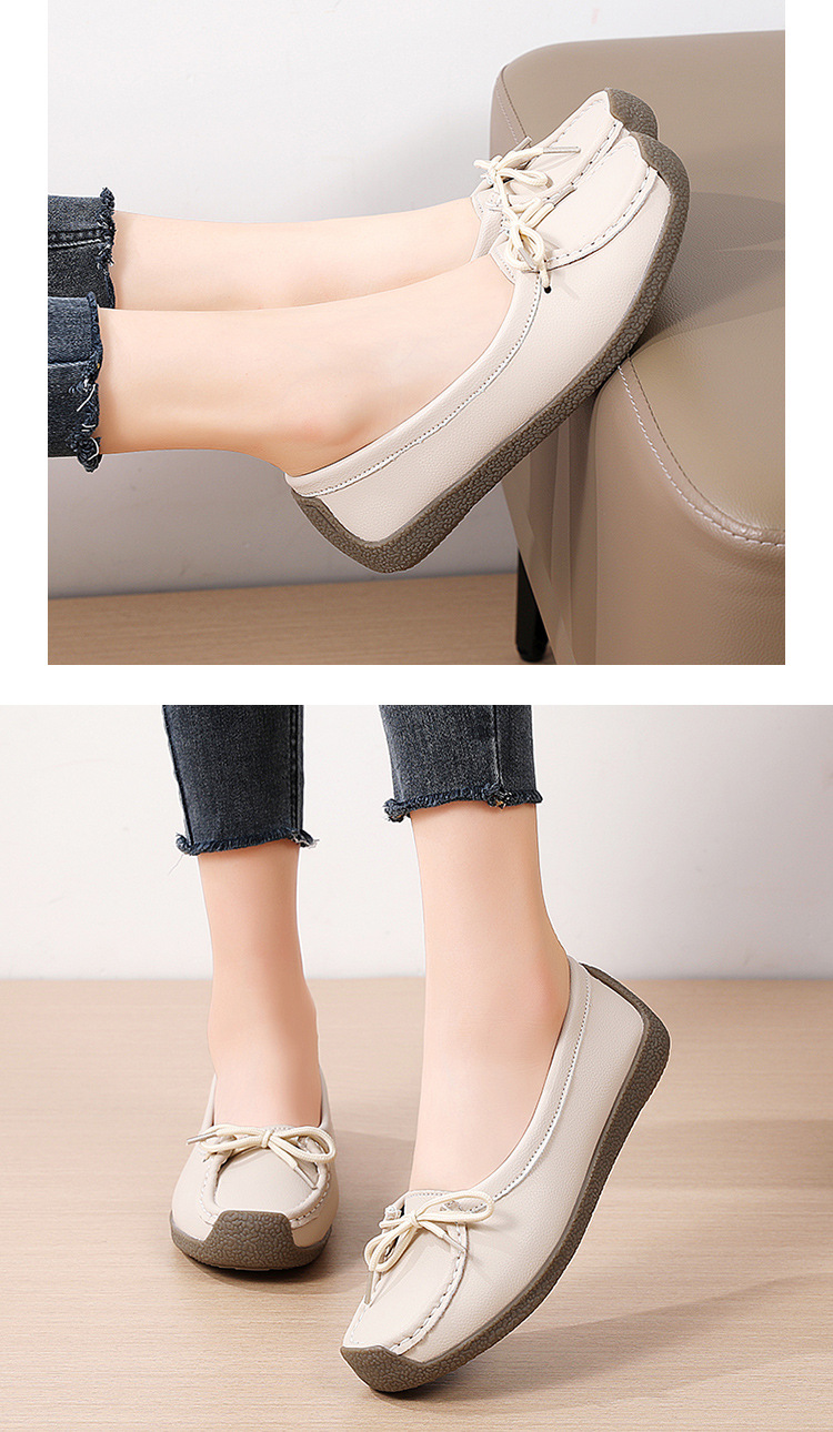 봄 가을 얕은 굽 소가죽 구두 한국 스타일 대형 여성 캐주얼 플랫 슈즈 슬립온 미끄럼 방지 엄마 신발