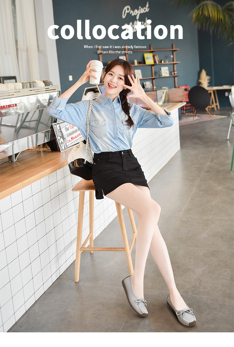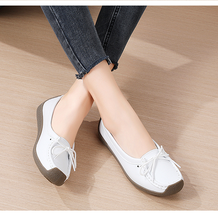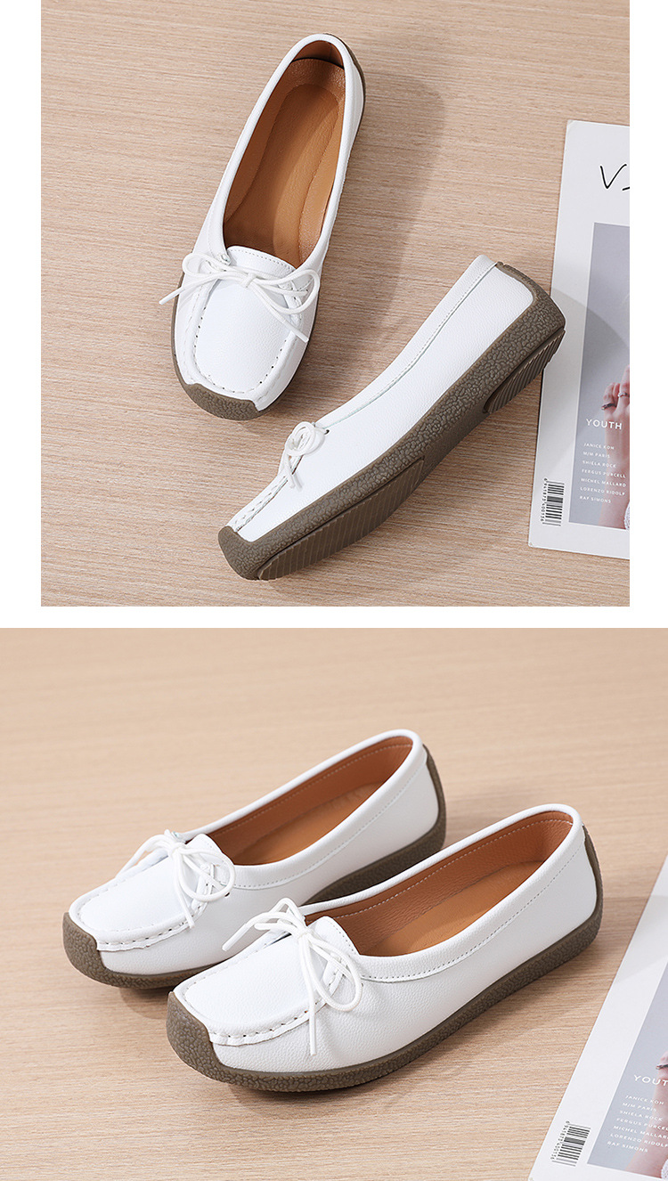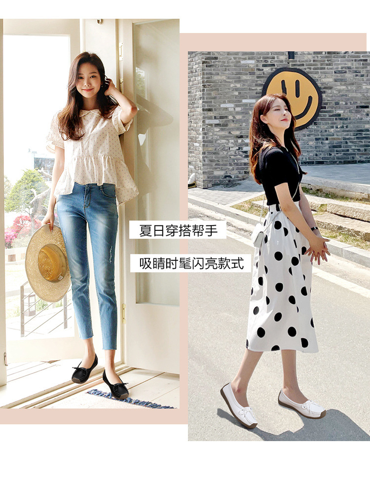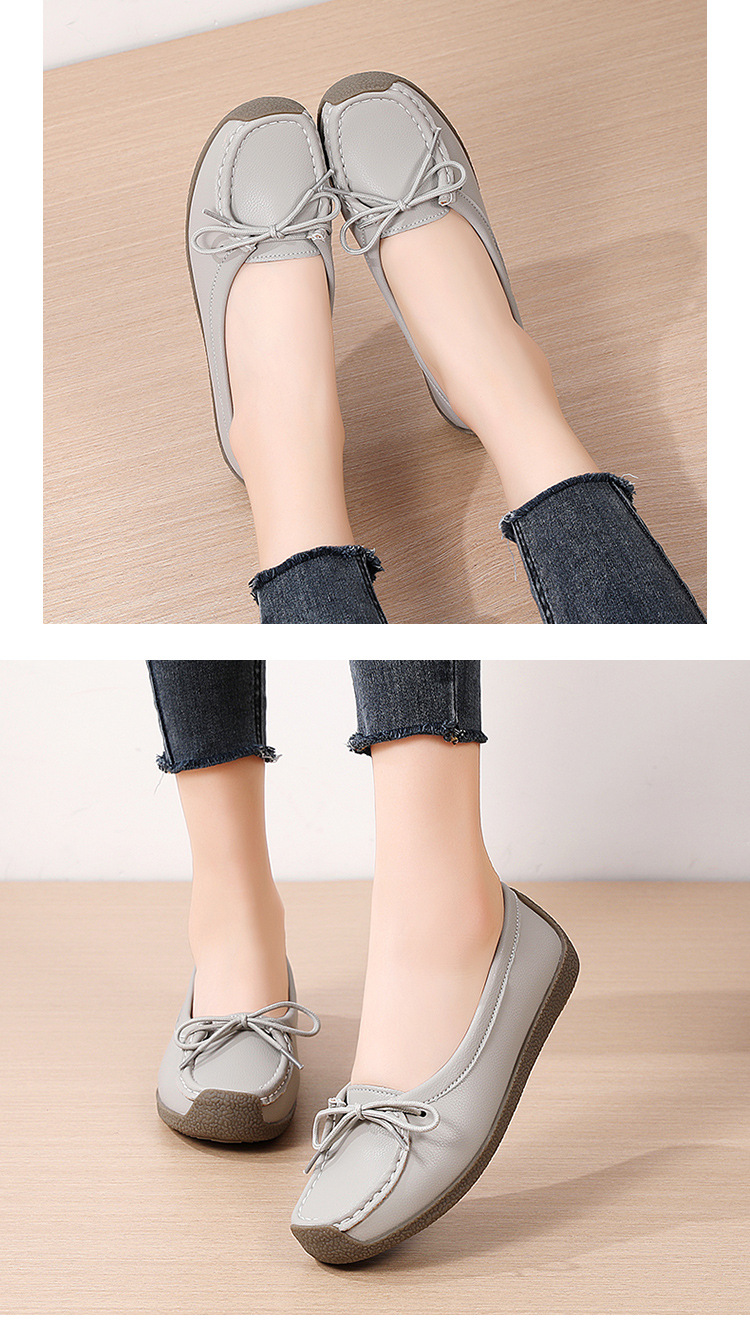 봄 가을 얕은 굽 소가죽 구두 한국 스타일 대형 여성 캐주얼 플랫 슈즈 슬립온 미끄럼 방지 엄마 신발